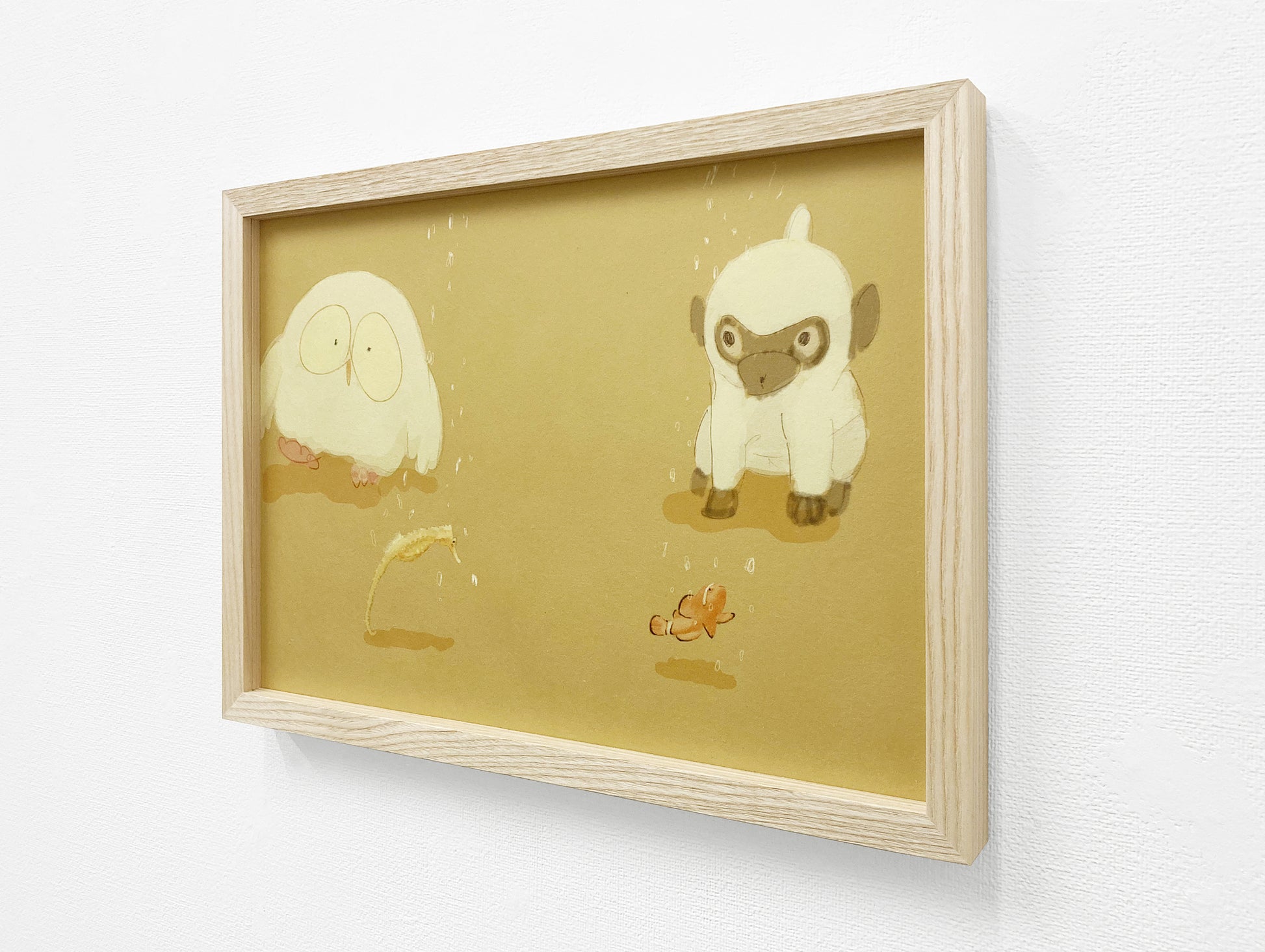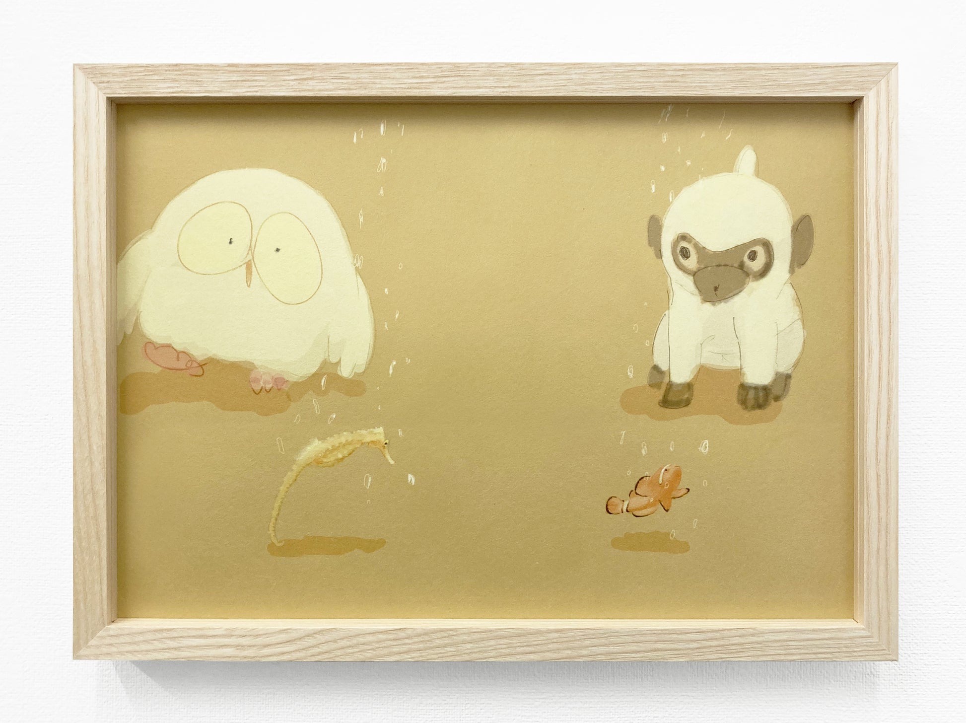 Painter Sakiko Kurita has ventured into digital painting for the first time using a tablet. By harnessing the unique characteristics of digital art, she achieved a relaxed, rough touch and vivid, masterful drawings that were output as prints on textured paper. Six works have been completed.