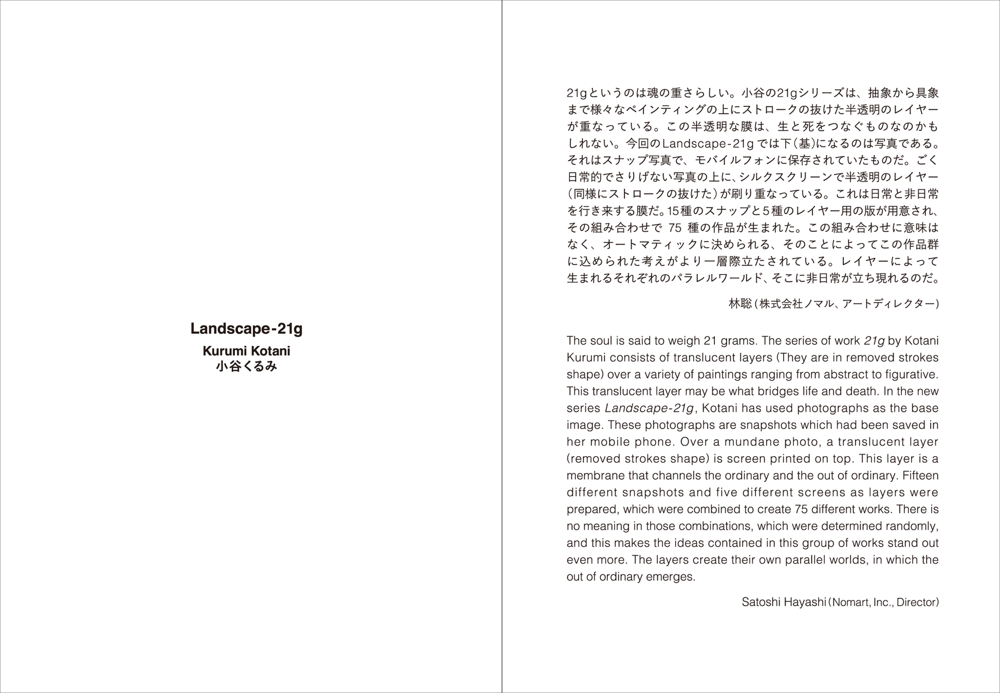 A project book featuring all 75 unique edition prints from Kurumi Kotani’s new print series "Landscape-21g", created in September 2022.