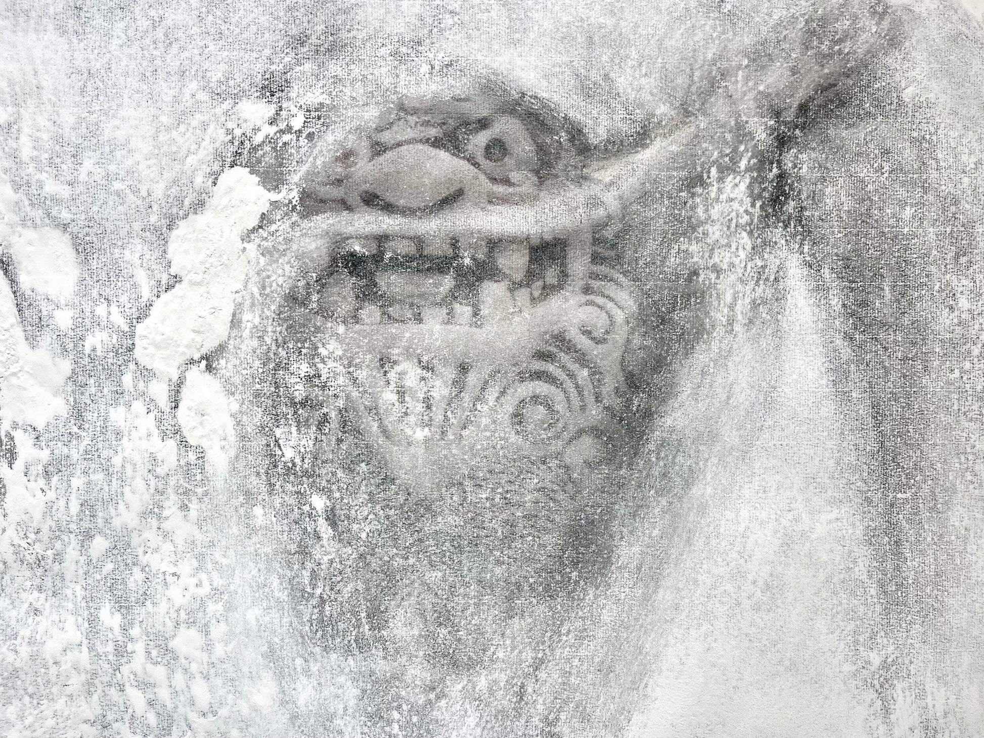 and translated it into charcoal drawings, further expanding it into sculptures.