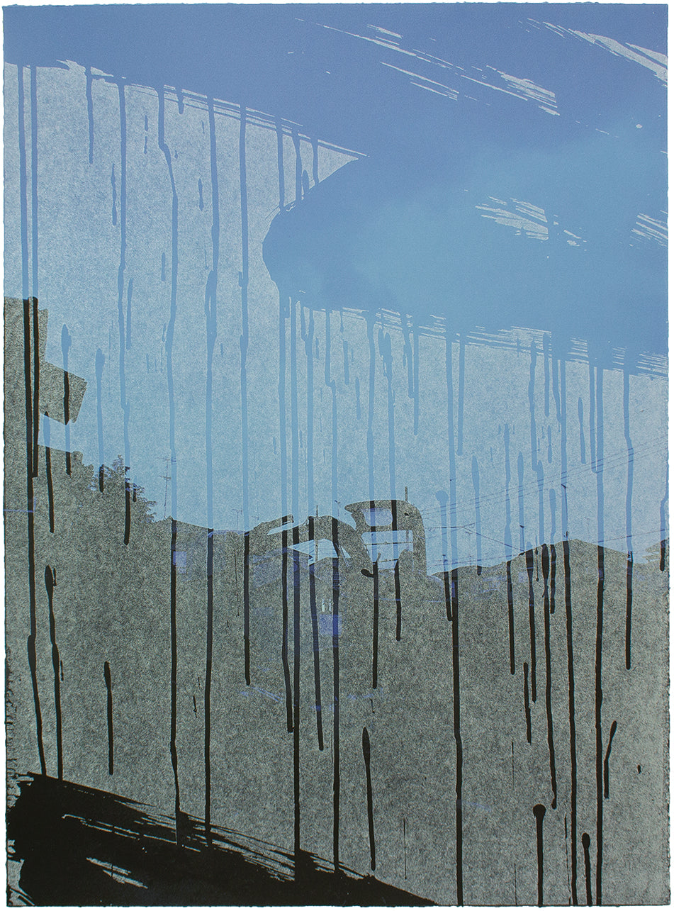 The weight of our soul is said to be 21g. In Kotani's 21g series, a variety of paintings ranging from abstract to figurative are covered with translucent layers with removed strokes. The semi-transparent layers may be the connection between life and death. In this series Landscape-21g, photographs become the base. The photographs are snapshots stored in the artist’s mobile phones. The silkscreen prints the translucent layers (equally without strokes) over the casual everyday photographs. They are films that cross between certain and uncertain. Fifteen different snapshots and five different print plates were prepared, which were combined to create 75 different works. There is no meaning in those combinations, which were determined randomly, and this makes the ideas contained in this group of works stand out even more. The layers create their own parallel worlds, where the uncertain emerges.