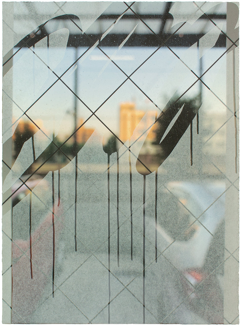 The weight of our soul is said to be 21g. In Kotani's 21g series, a variety of paintings ranging from abstract to figurative are covered with translucent layers with removed strokes. The semi-transparent layers may be the connection between life and death. In this series Landscape-21g, photographs become the base. The photographs are snapshots stored in the artist’s mobile phones. The silkscreen prints the translucent layers (equally without strokes) over the casual everyday photographs. They are films that cross between certain and uncertain. Fifteen different snapshots and five different print plates were prepared, which were combined to create 75 different works. There is no meaning in those combinations, which were determined randomly, and this makes the ideas contained in this group of works stand out even more. The layers create their own parallel worlds, where the uncertain emerges.