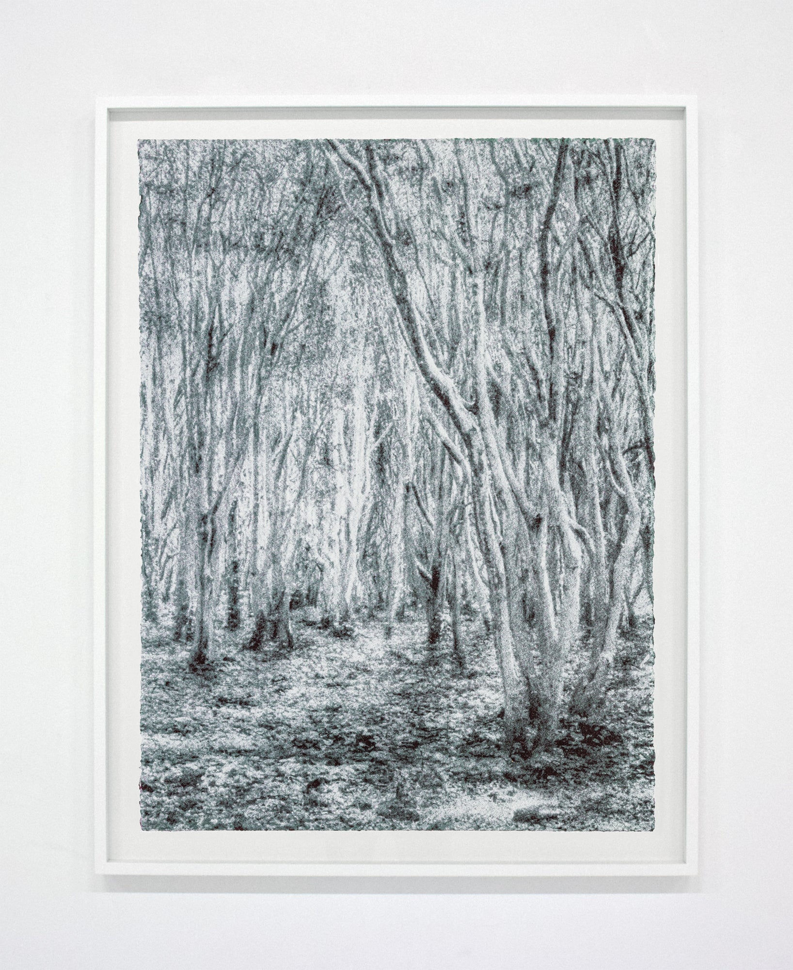 The image created by the layers of ink grains is unpredictable, betraying our perception of the computer simulation in advance. It took two years of repeated trials between Iba and the print studio Nomart Editions to complete the work. A total of seven editions were made, using the workshop's techniques, including the use of partially foamed ink to create a more grainy effect in areas close to the surface.