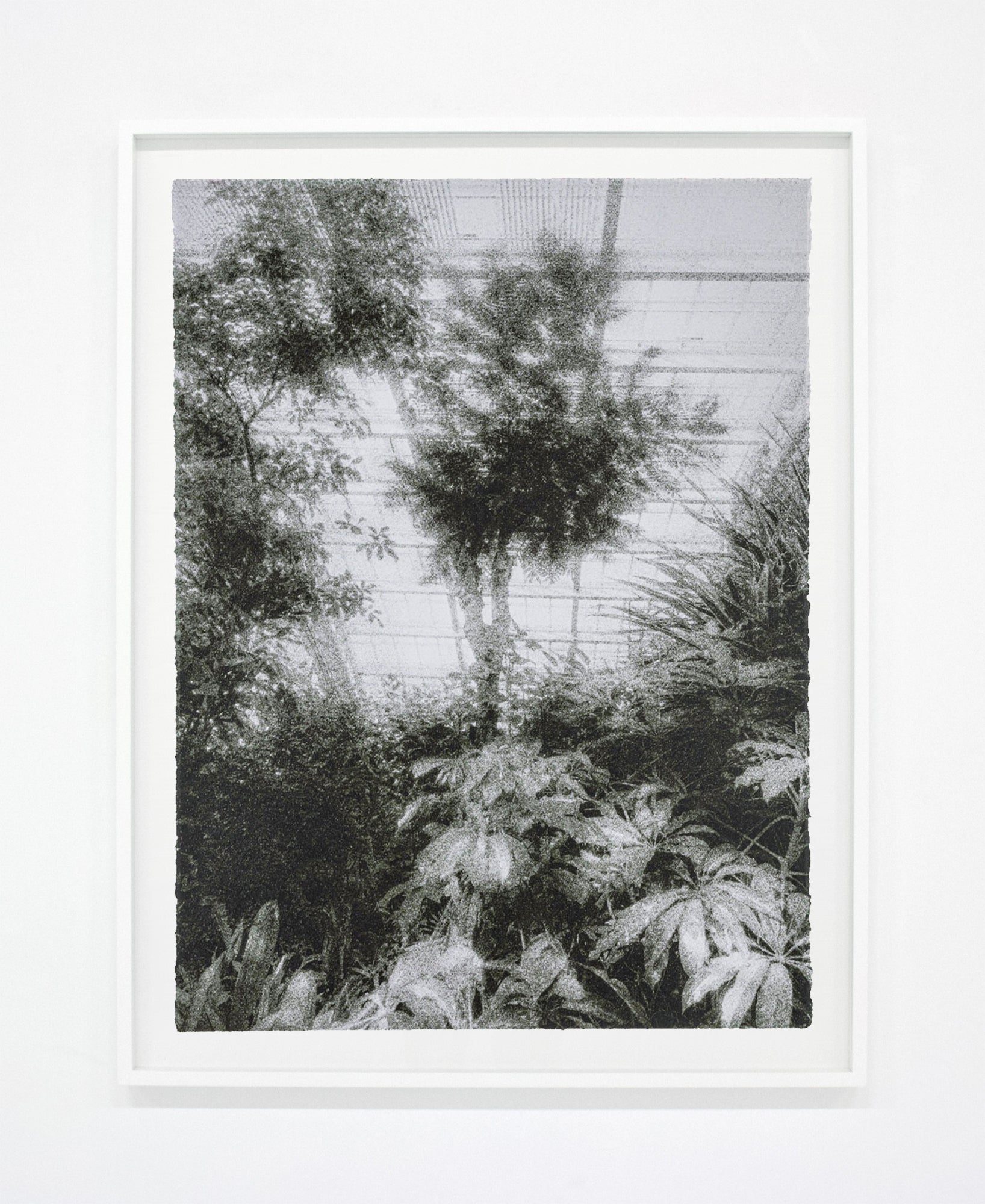 The image created by the layers of ink grains is unpredictable, betraying our perception of the computer simulation in advance. It took two years of repeated trials between Iba and the print studio Nomart Editions to complete the work. A total of seven editions were made, using the workshop's techniques, including the use of partially foamed ink to create a more grainy effect in areas close to the surface.