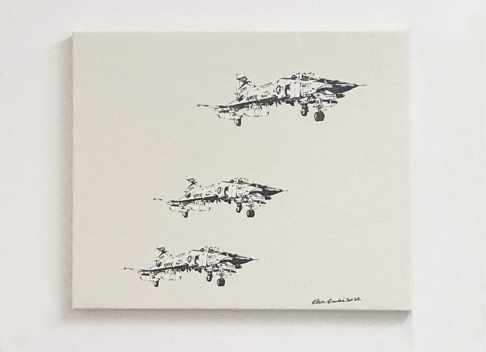This work is one of a series of works created using hot stamping techniques based on Enoki's new ideas, restored using Nomart Edition's current workshop techniques from silkscreen plates of original drawings of the fighter planes he used in the 1970s.