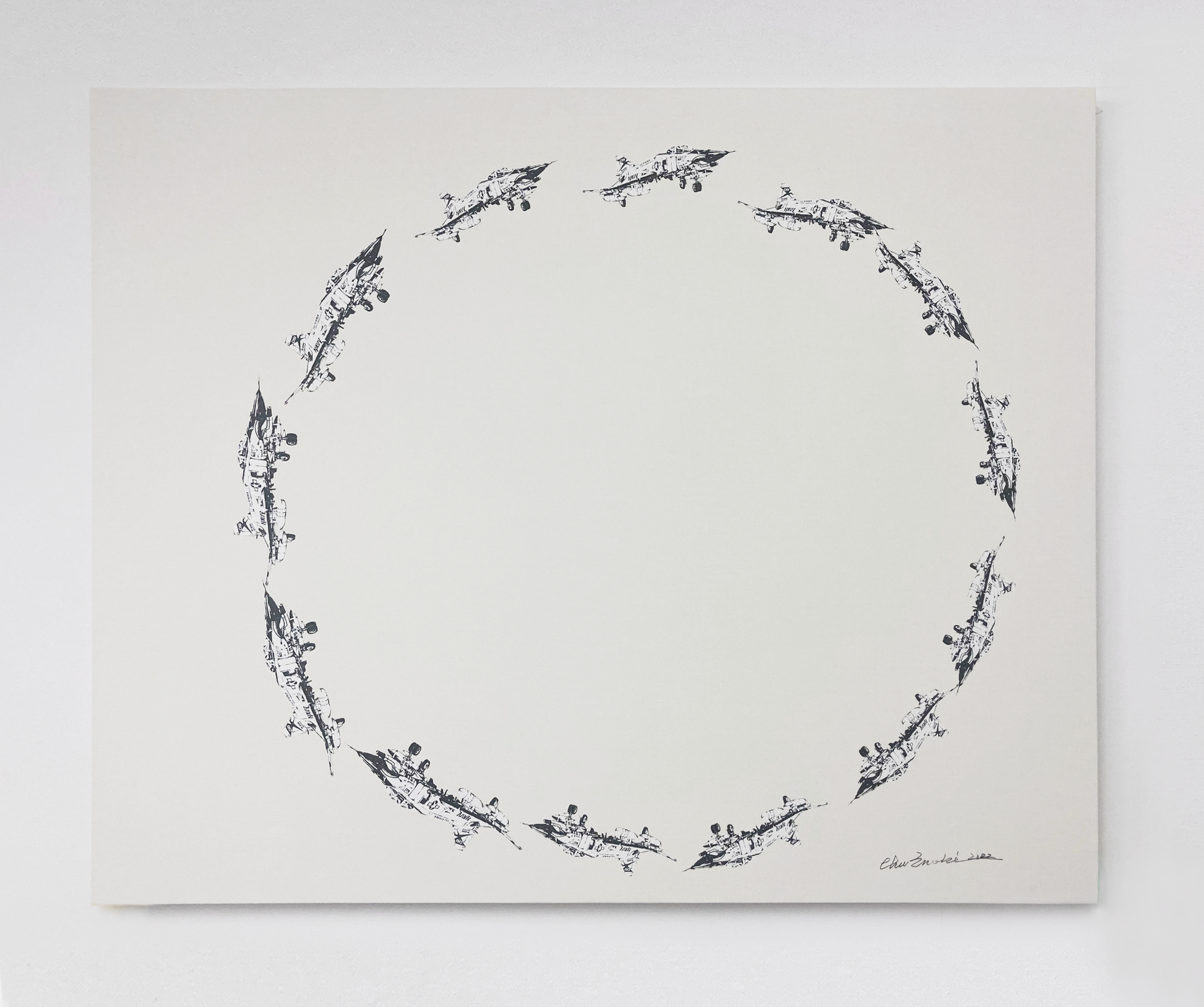 This work is one of a series of works created using hot stamping techniques based on Enoki's new ideas, restored using Nomart Edition's current workshop techniques from silkscreen plates of original drawings of the fighter planes he used in the 1970s.