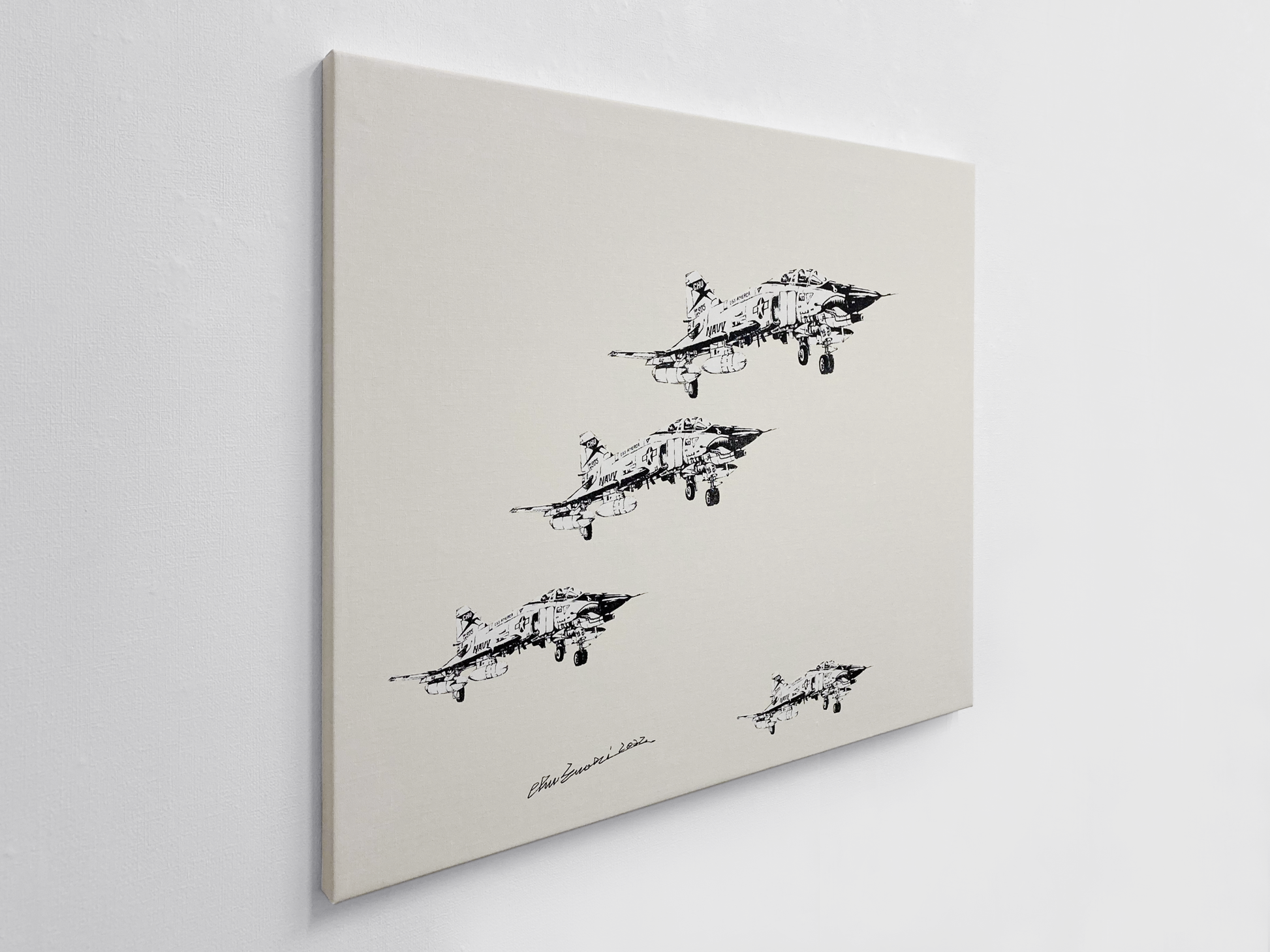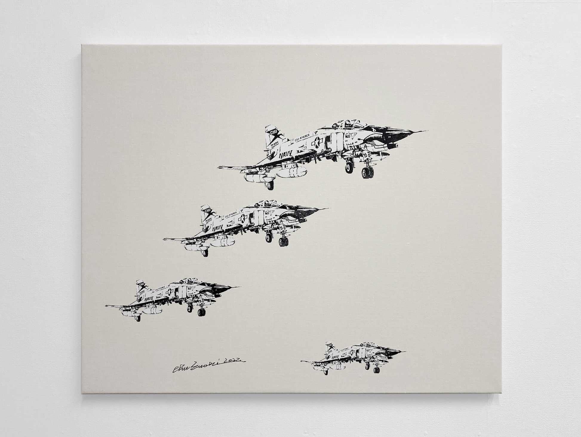 This work is one of a series of works created using hot stamping techniques based on Enoki's new ideas, restored using Nomart Edition's current workshop techniques from silkscreen plates of original drawings of the fighter planes he used in the 1970s.