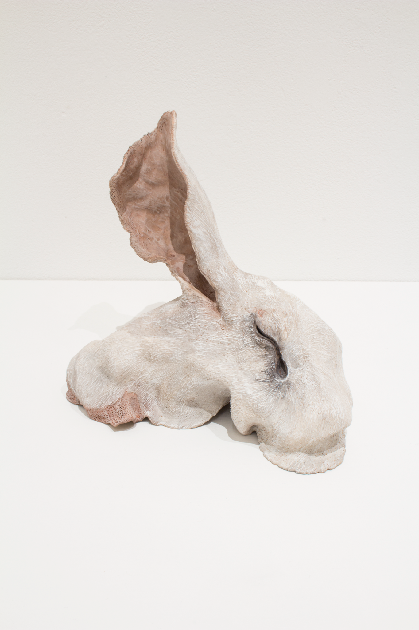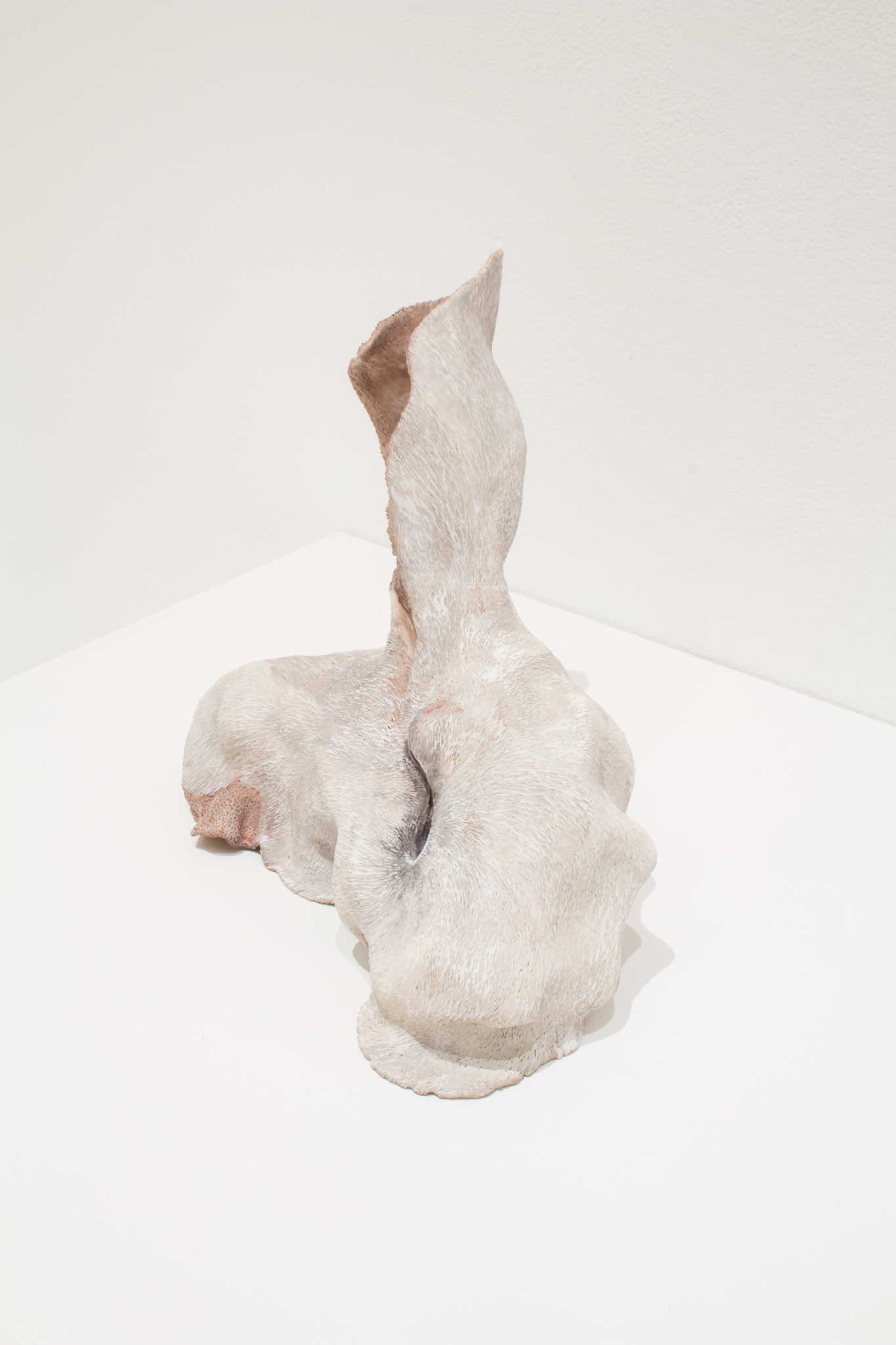 The sculptures of Higashikage, whose fundamental theme is "life and death," blur the boundary between conflicting elements, yet emit a resolute presence, standing quietly in the space with a coexistence of reality and imagination. It is also the coexistence of life and death.
