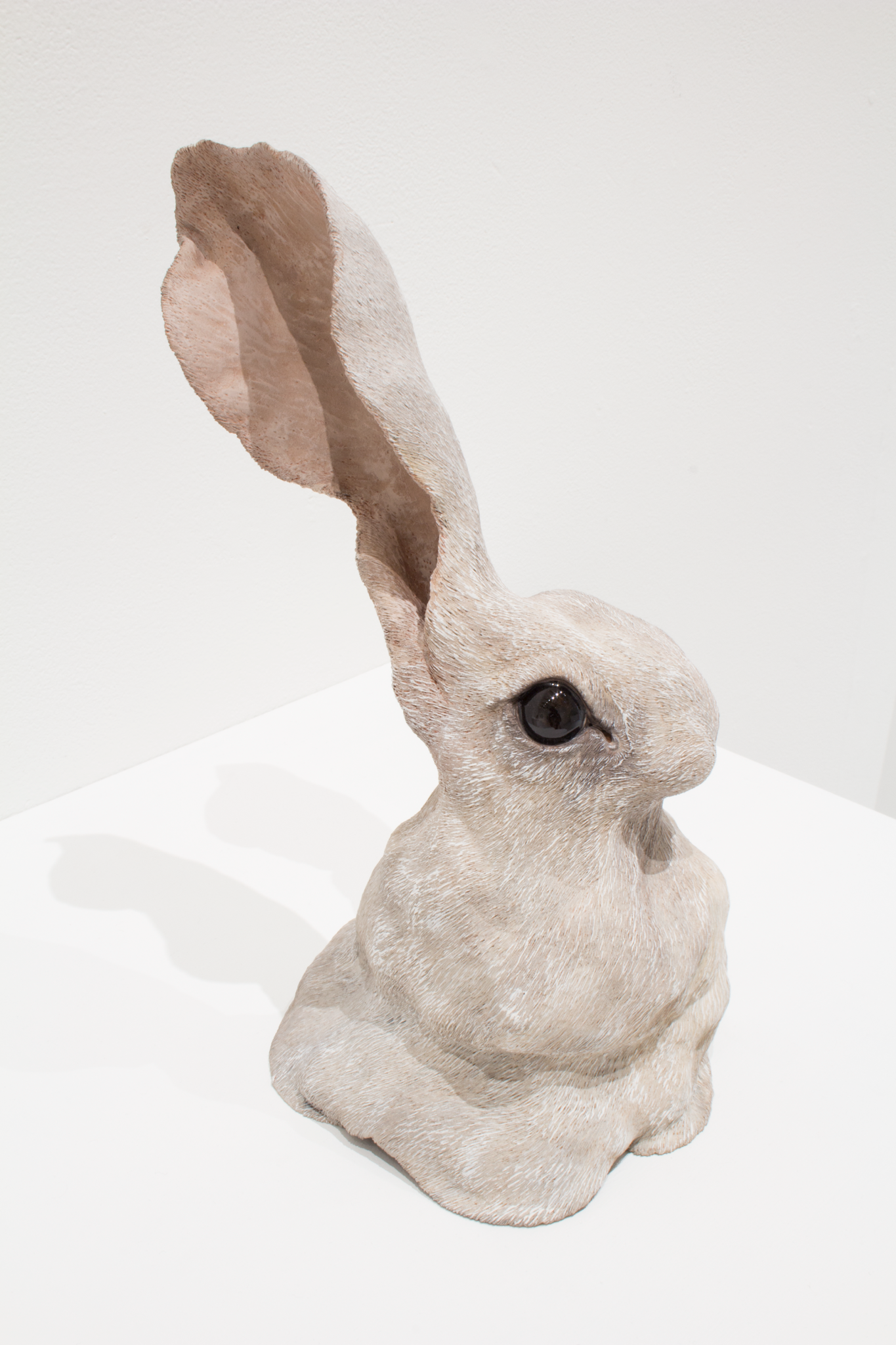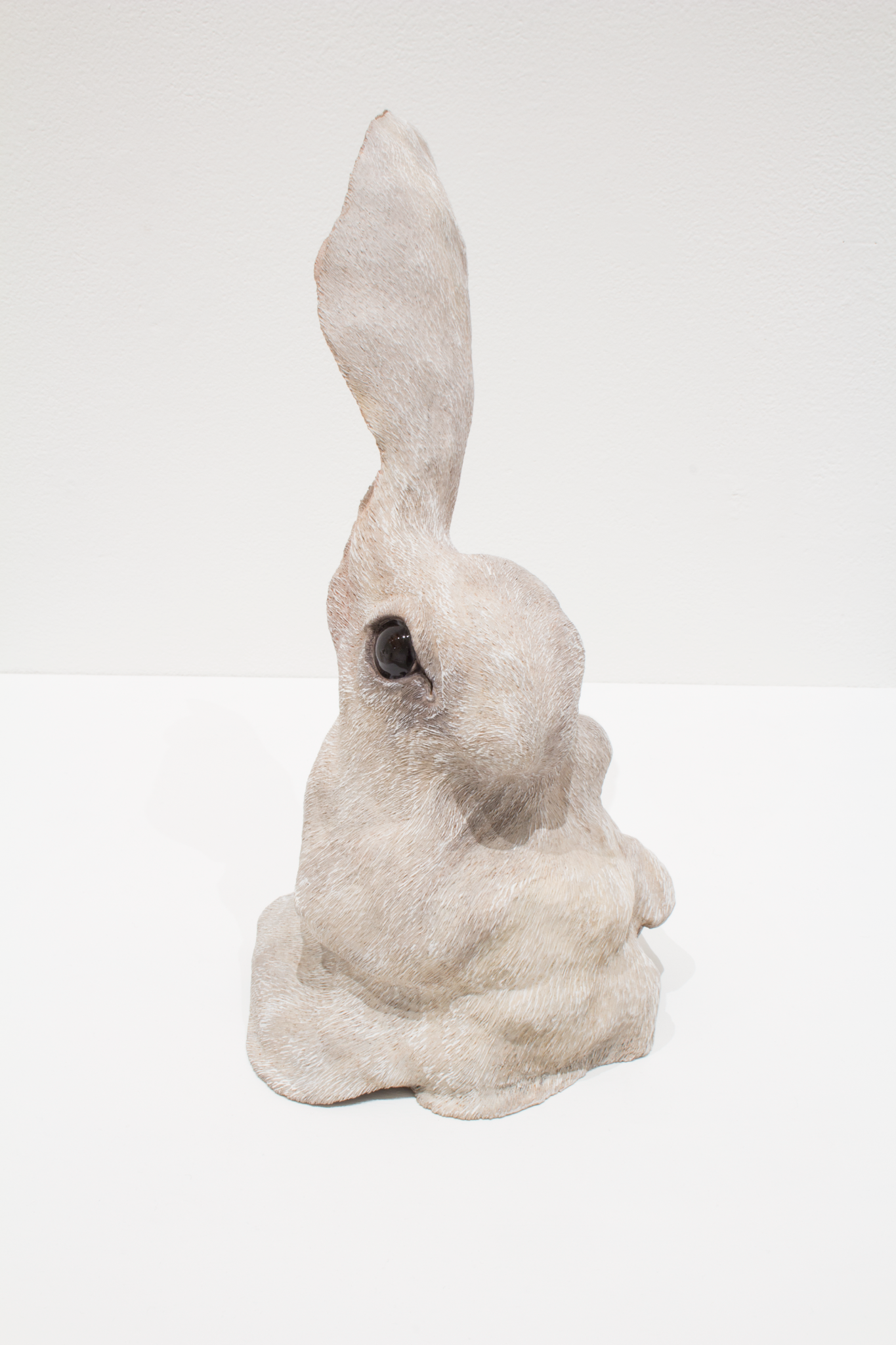 The sculptures of Higashikage, whose fundamental theme is "life and death," blur the boundary between conflicting elements, yet emit a resolute presence, standing quietly in the space with a coexistence of reality and imagination. It is also the coexistence of life and death.