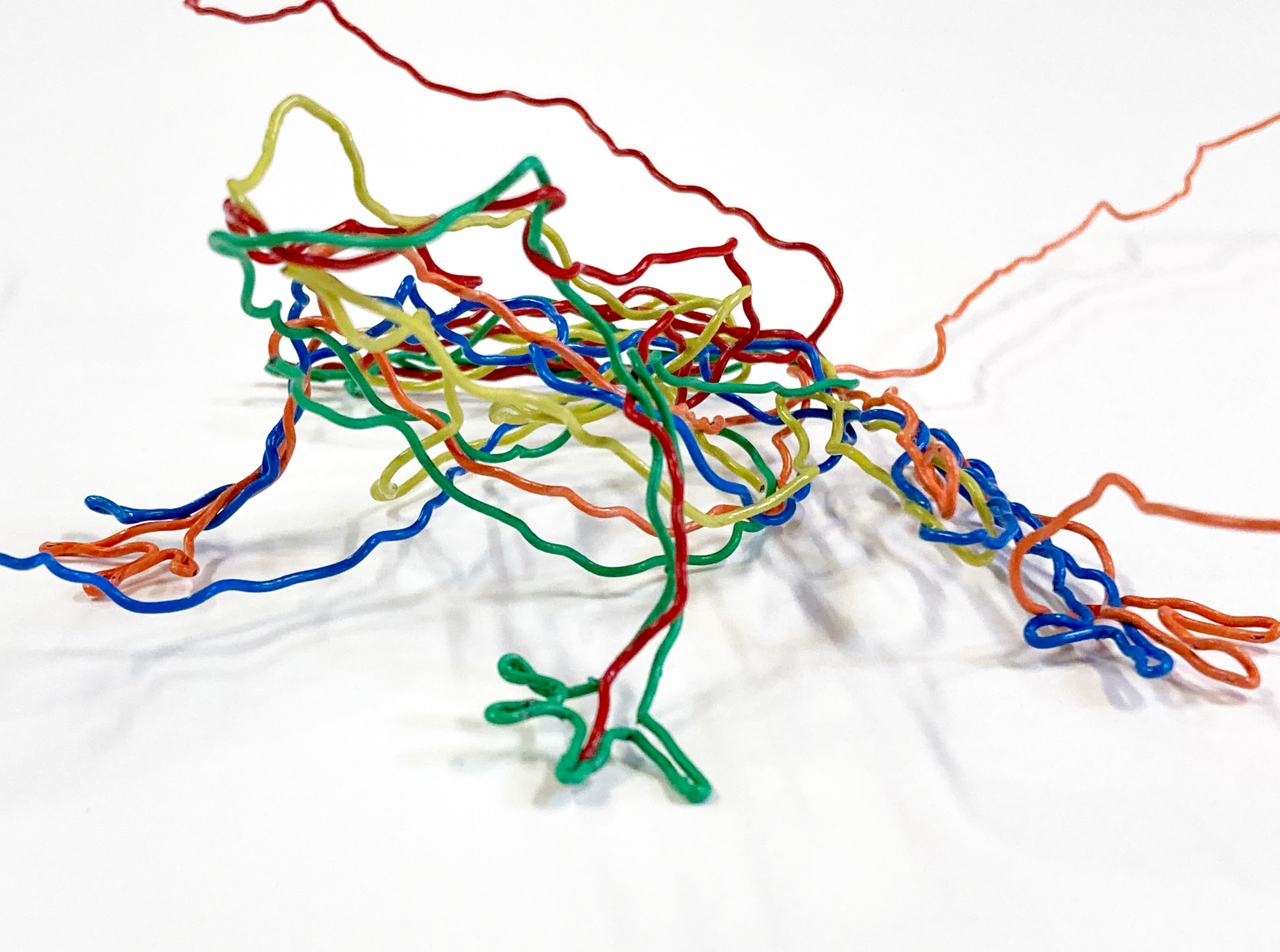 Hajime Imamura skillfully handles wire to create sculptures representing various animals, plants and himself.