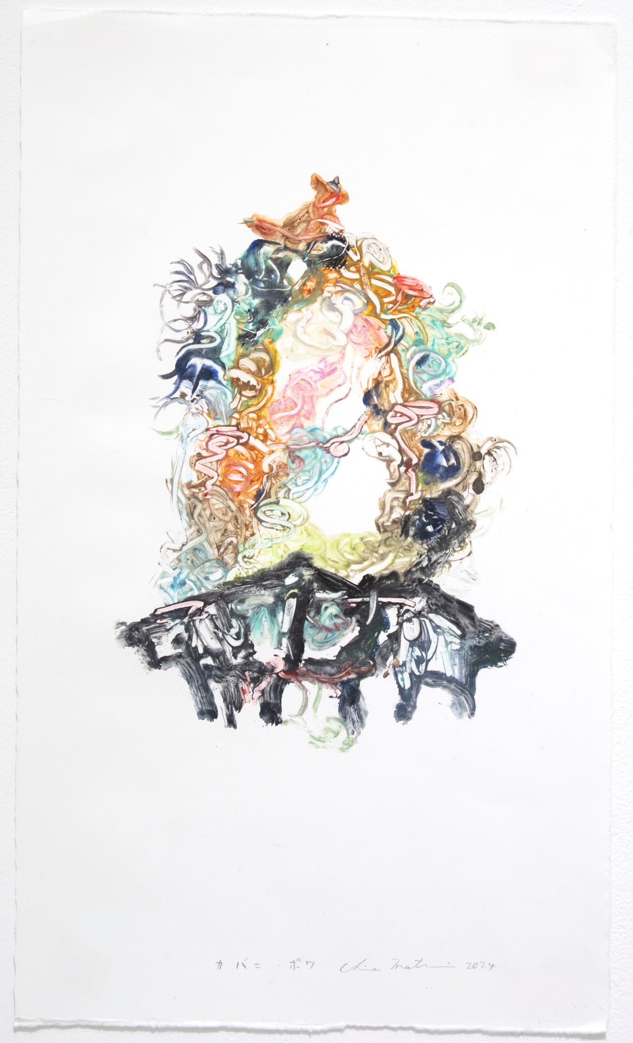 monotype, oil, pastel on paper