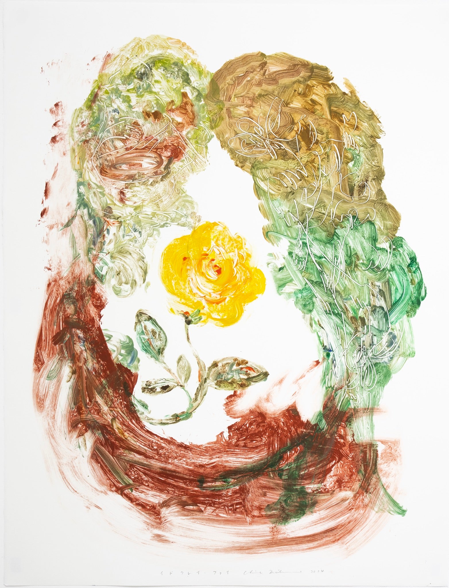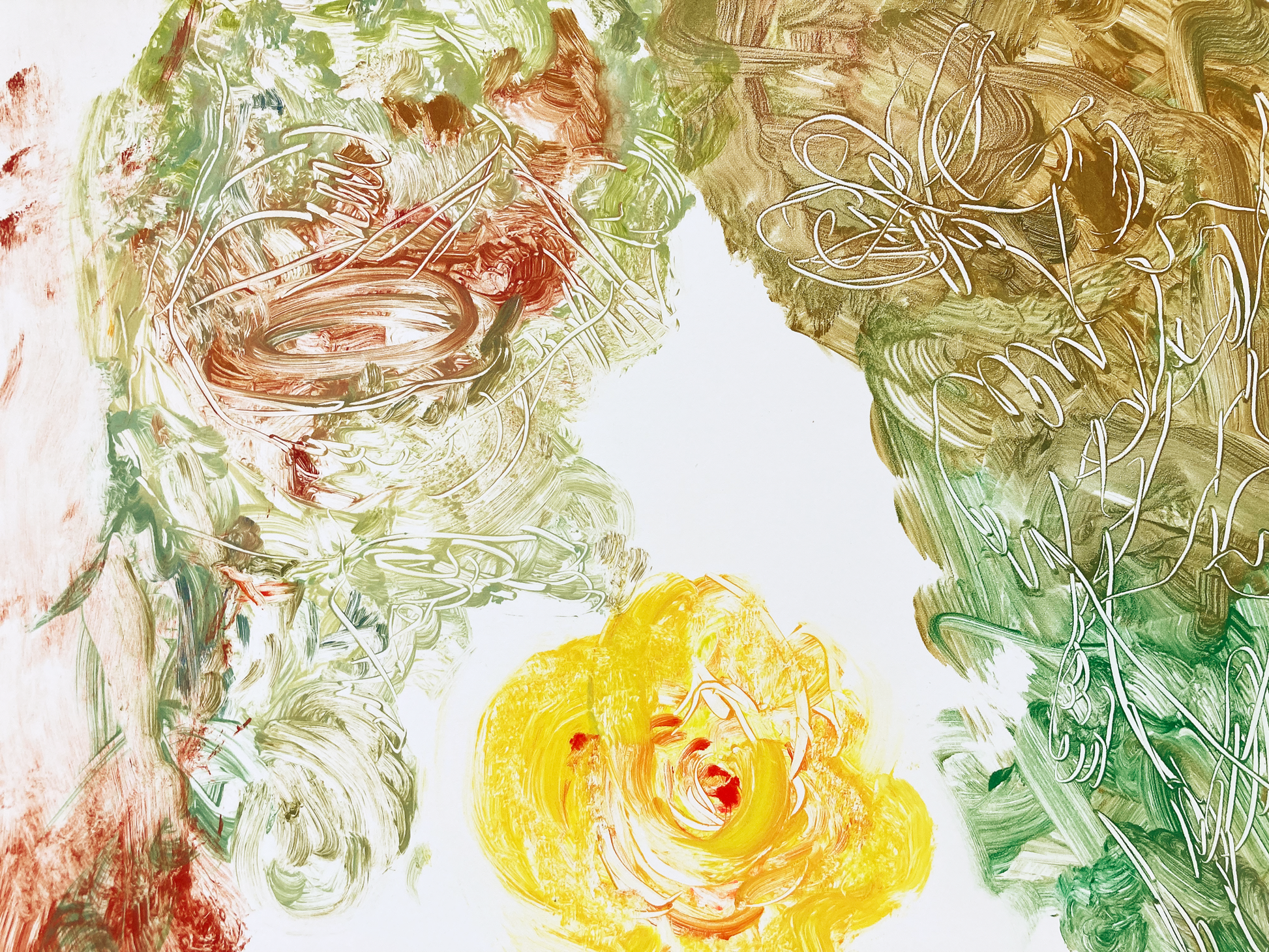 monotype, oil, pastel on paper