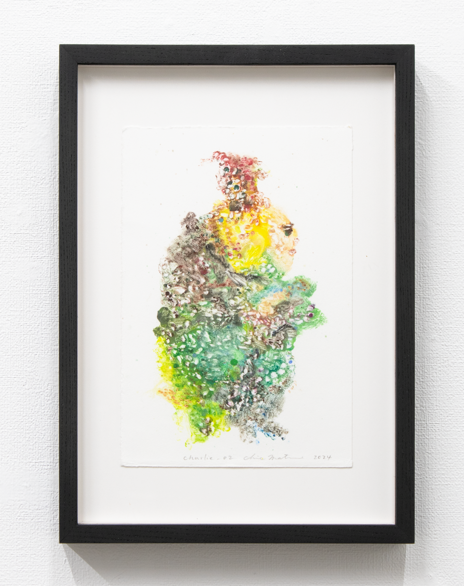 monotype, oil, pastel on paper, wooden frame