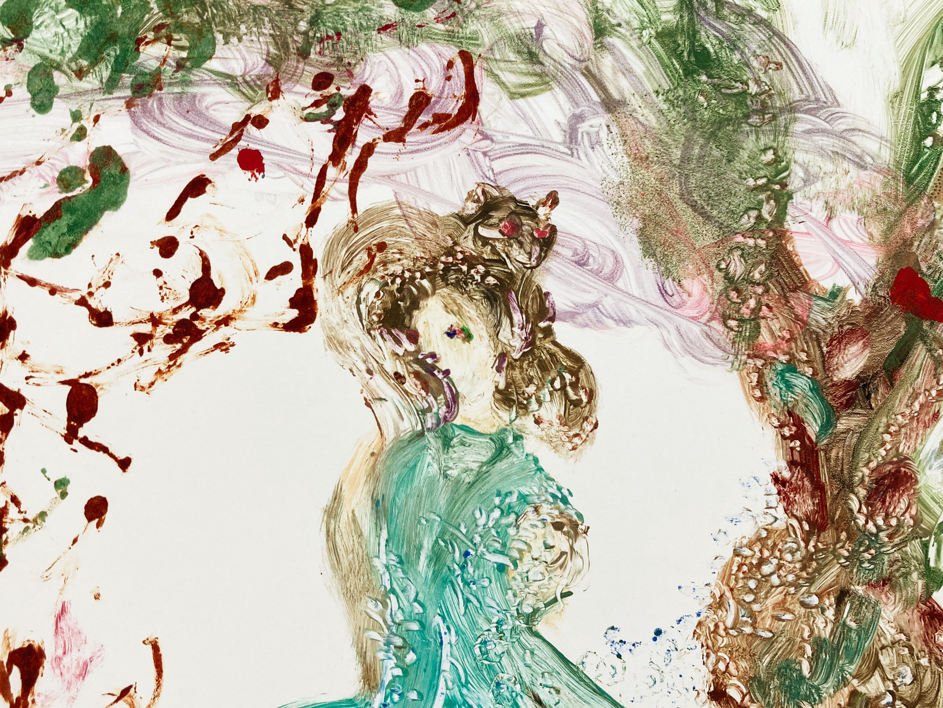 monotype, oil, pastel on paper