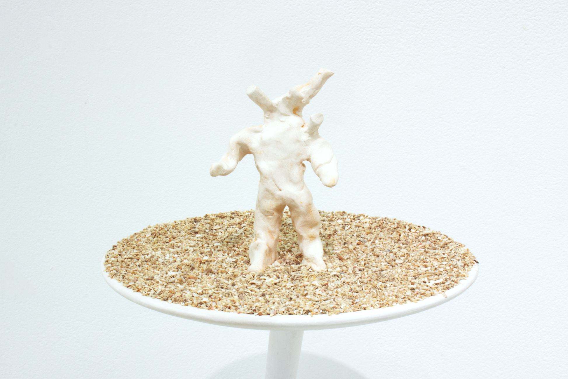沖縄の海岸を散歩中に見つけた人型の珊瑚の破片からイメージした、有機的な形態のセラミック作品。
