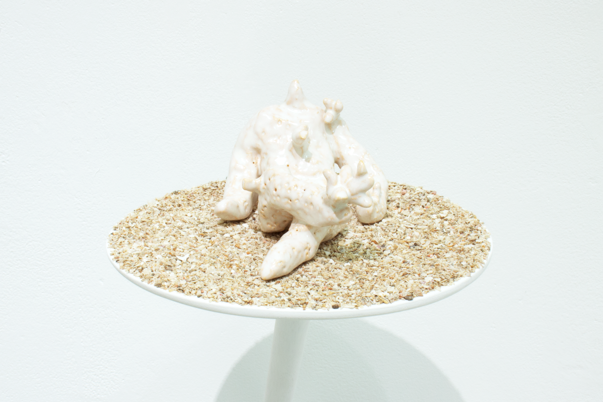 沖縄の海岸を散歩中に見つけた人型の珊瑚の破片からイメージした、有機的な形態のセラミック作品。