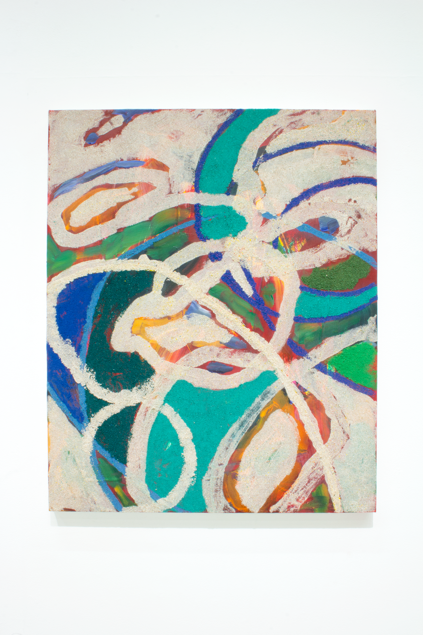 珊瑚砂を自ら染めたオリジナルの色砂で描いた平面作品。