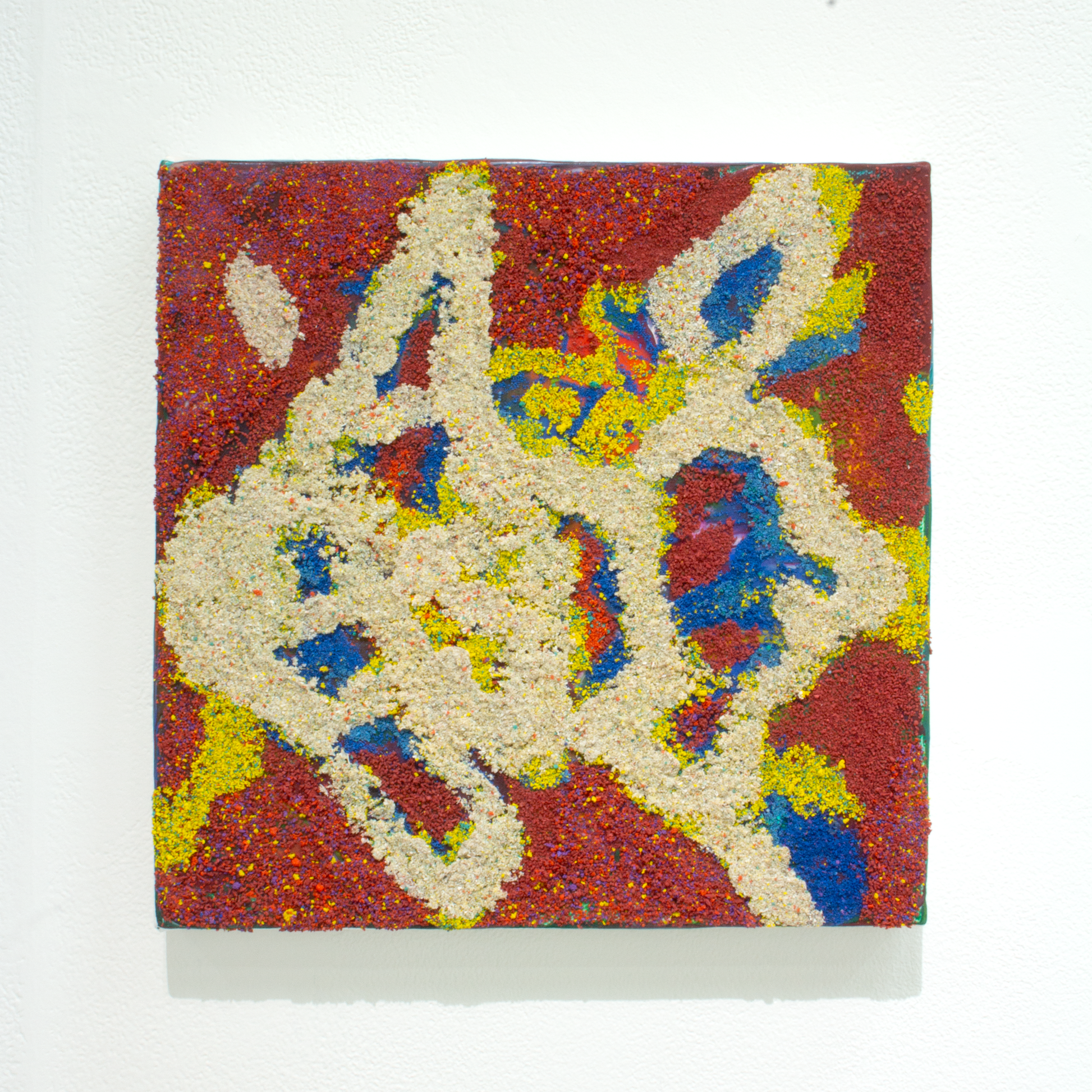 珊瑚砂を自ら染めたオリジナルの色砂で描いた平面作品。