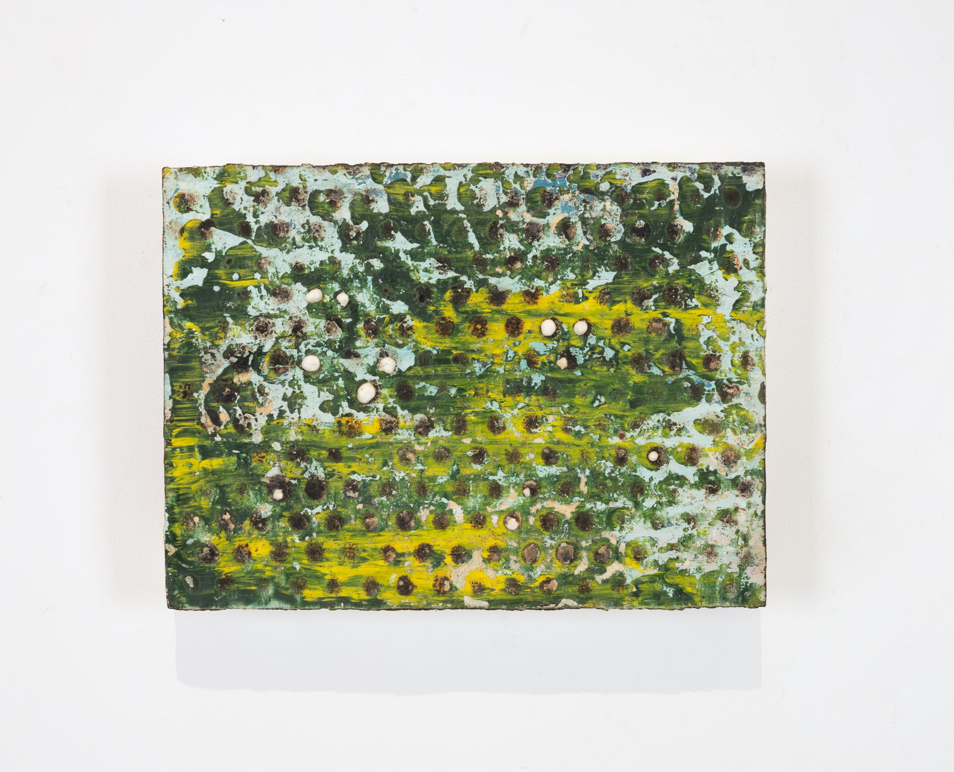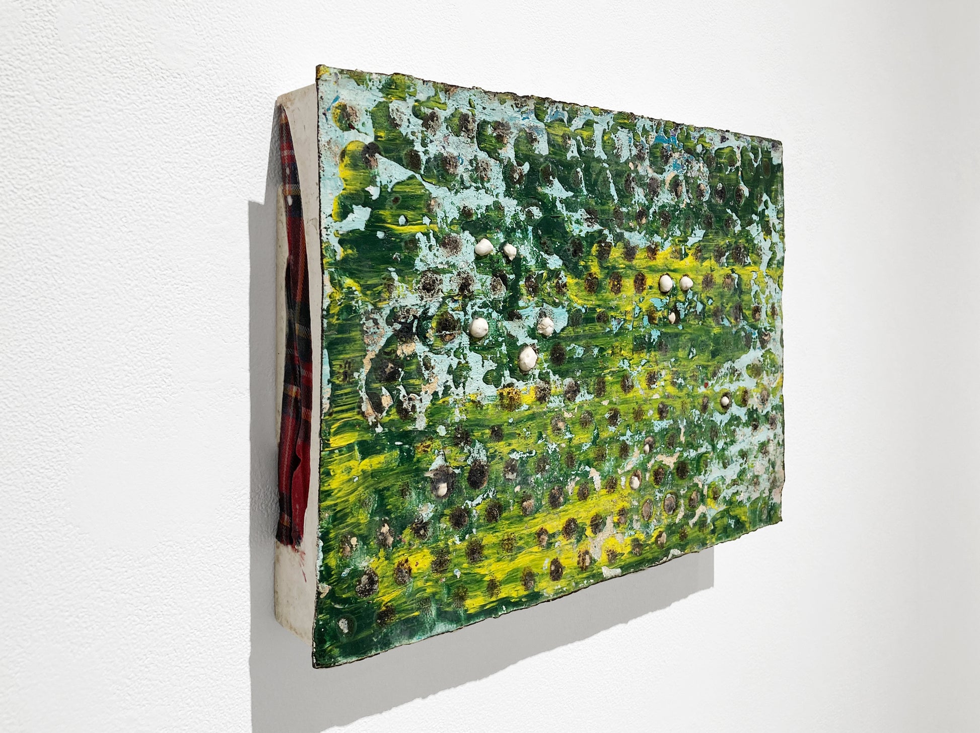 キャンバスに油絵具, アクリル絵具, 石膏, コットン, 蜜蝋