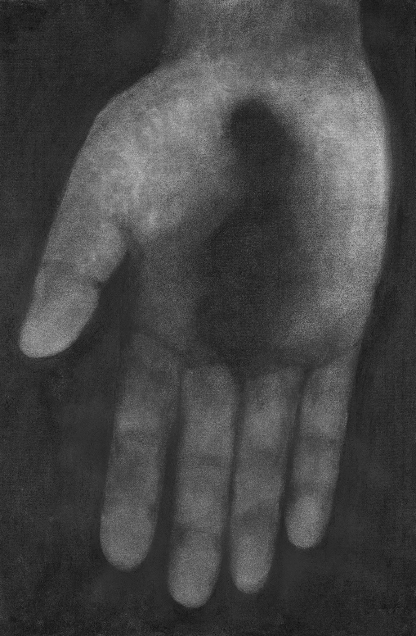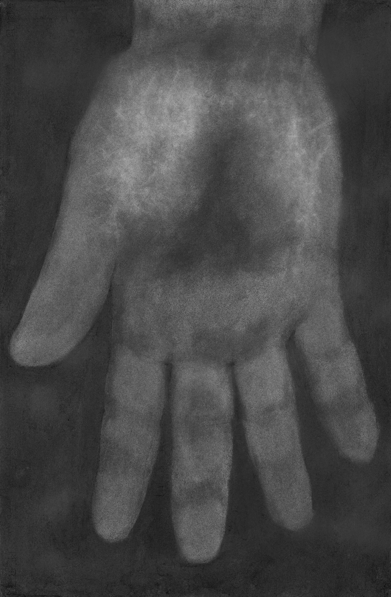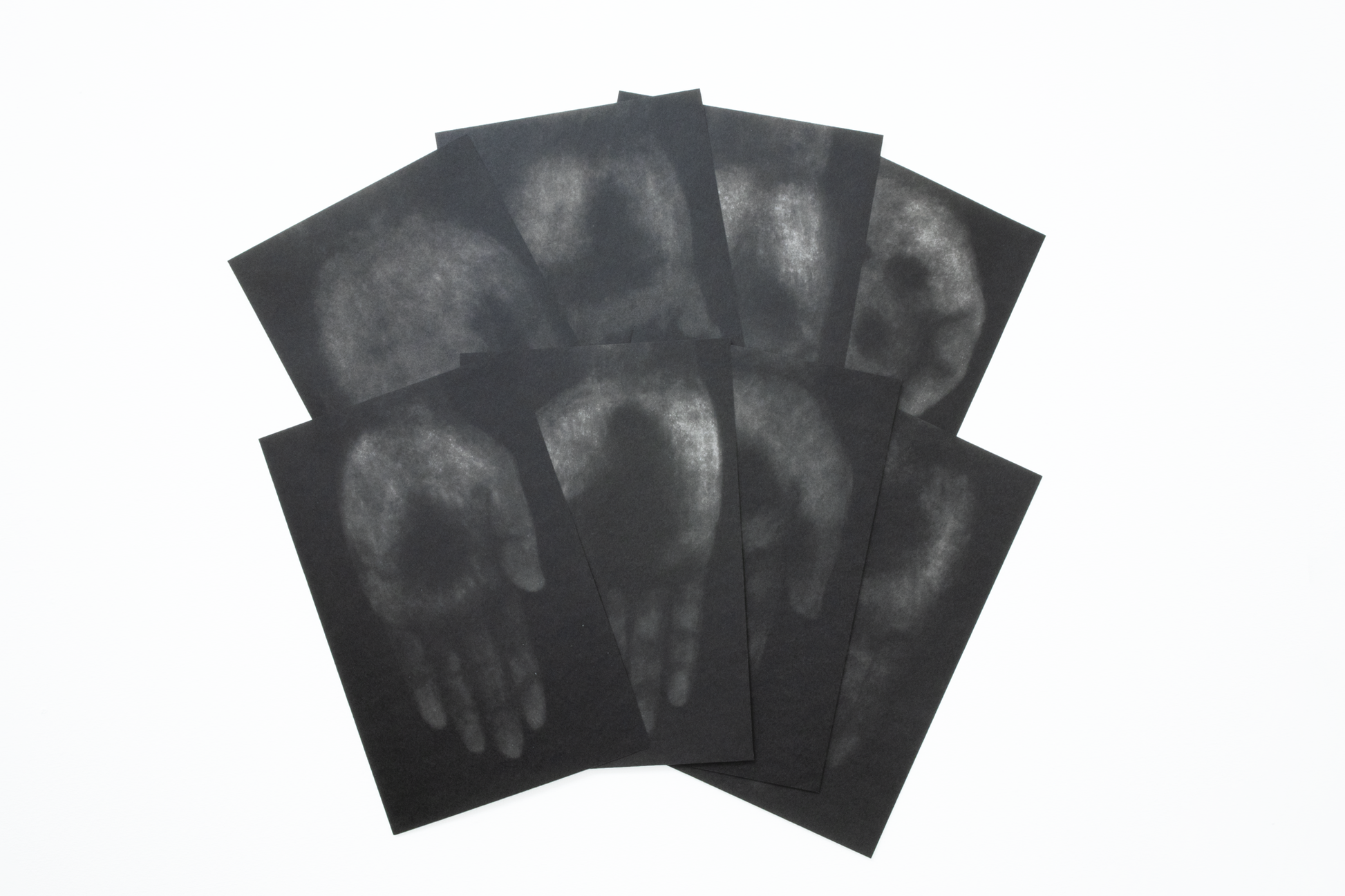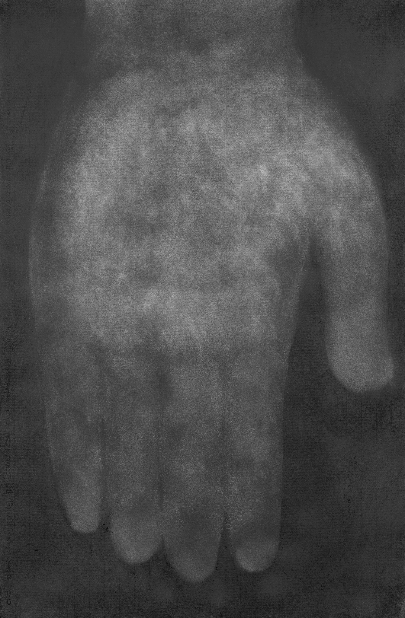 Ikegami's Shiatsu Drawing. He massages the palms of the hands and interprets the person's life. Then he draws the impression on the charcoal paper, painted with black charcoal, as if searching for light with his fingers. It feels as if life has been copied. The drawn palms are full of power. I once worked on silkscreen printing calligraphy written by Cai Guo-Qiang and a qigong master, and turning it into a book. It was a Chinese poem about the body and Chinese herbal medicine throughout the year, and it became a work called Life Calendar. At that time, Cai said that the power of this calligraphy will never disappear no matter how it is reproduced. I want to turn Ikegami's drawing this time into a silkscreen print, keeping that power.