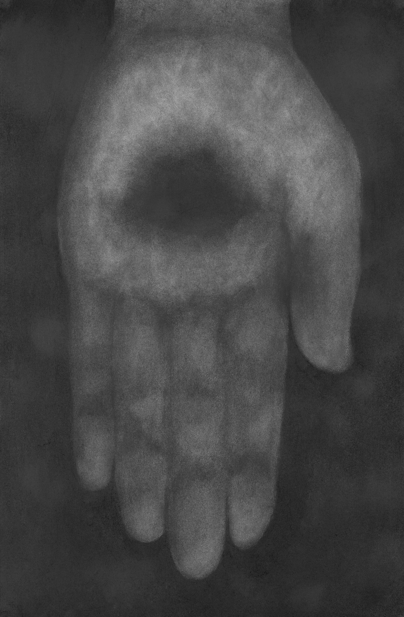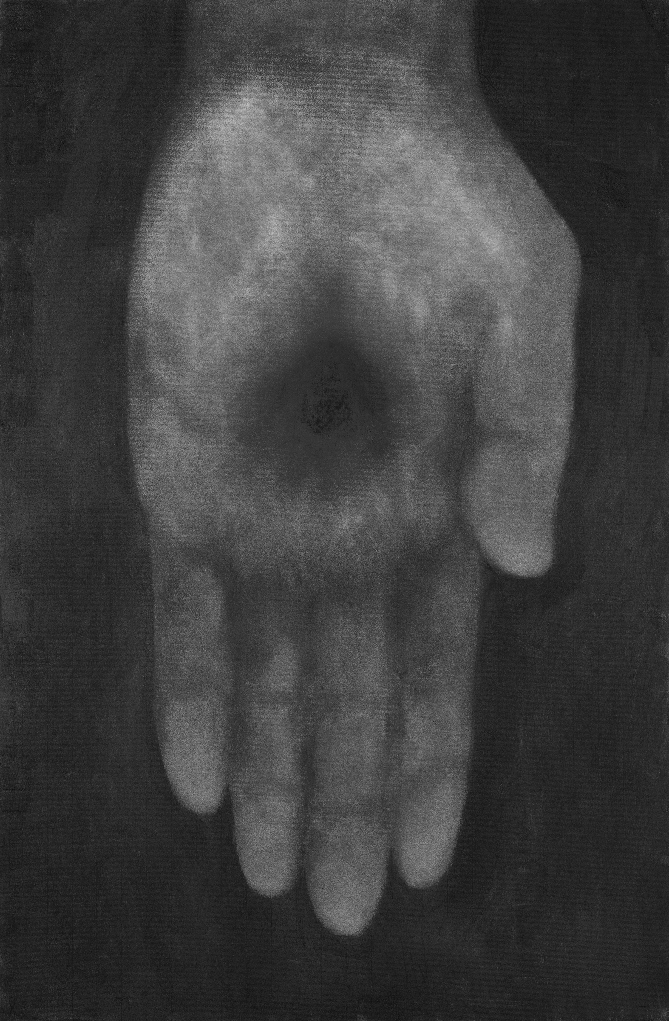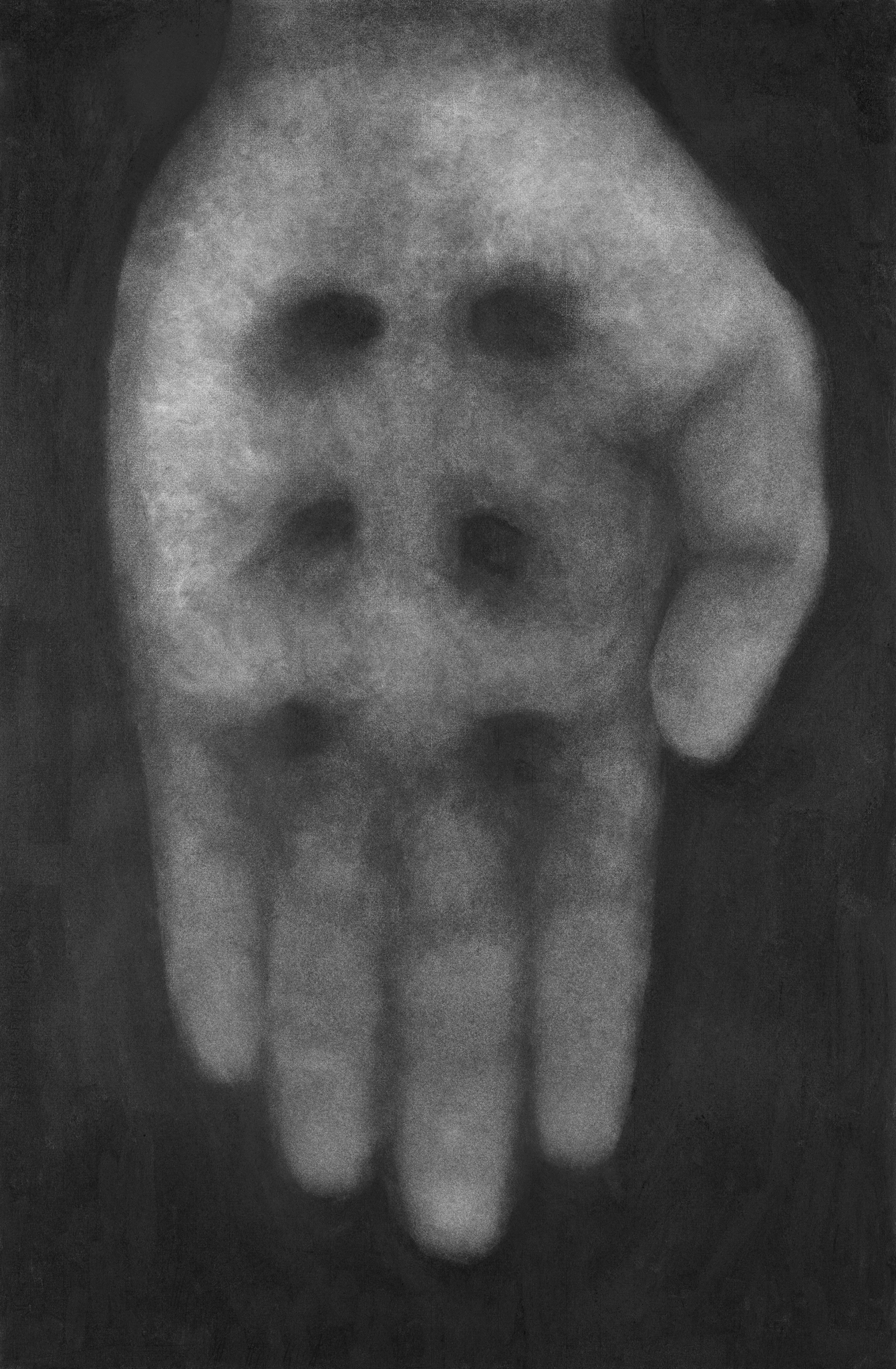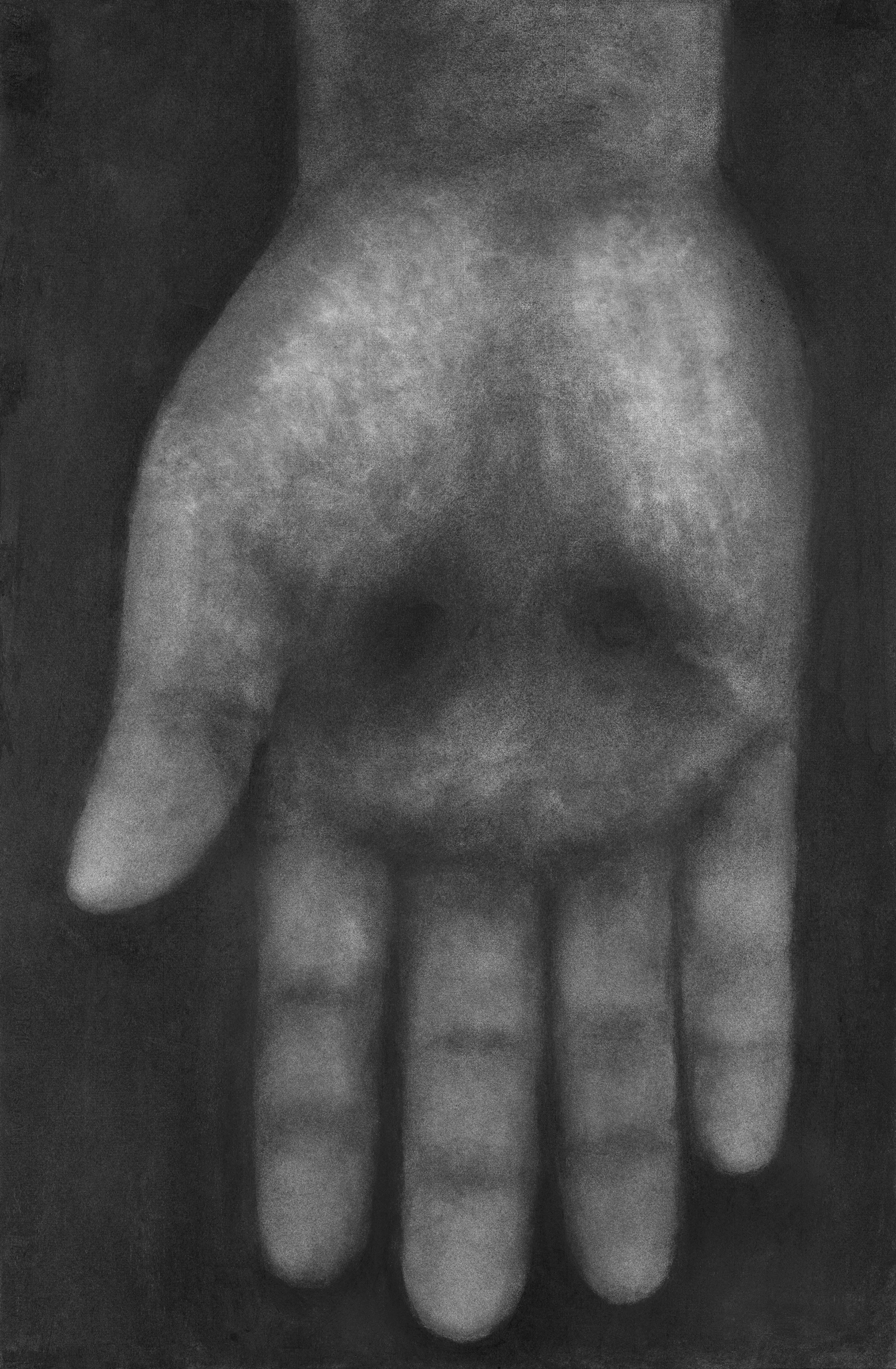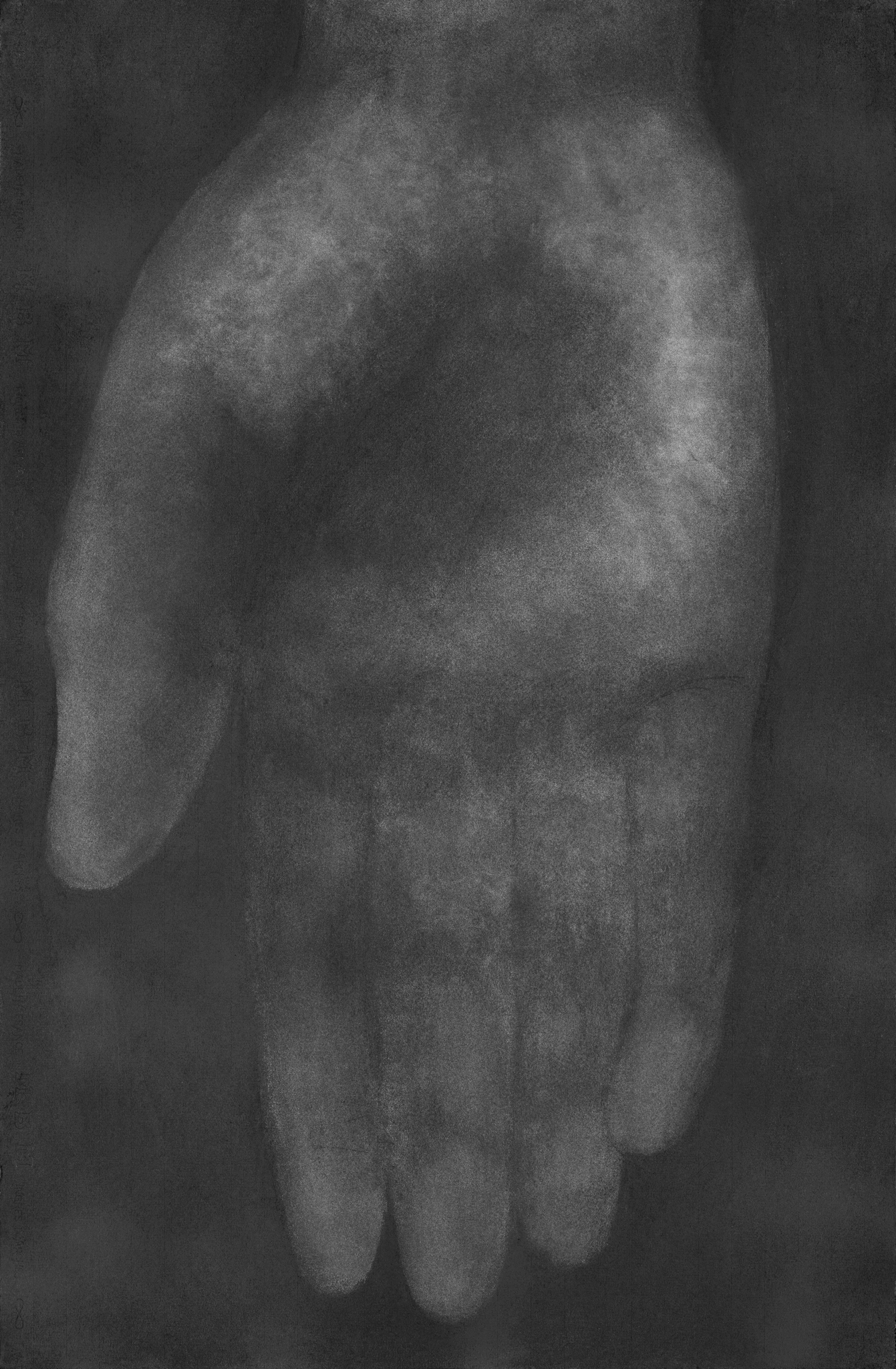 Ikegami's Shiatsu Drawing. He massages the palms of the hands and interprets the person's life. Then he draws the impression on the charcoal paper, painted with black charcoal, as if searching for light with his fingers. It feels as if life has been copied. The drawn palms are full of power. I once worked on silkscreen printing calligraphy written by Cai Guo-Qiang and a qigong master, and turning it into a book. It was a Chinese poem about the body and Chinese herbal medicine throughout the year, and it became a work called Life Calendar. At that time, Cai said that the power of this calligraphy will never disappear no matter how it is reproduced. I want to turn Ikegami's drawing this time into a silkscreen print, keeping that power.