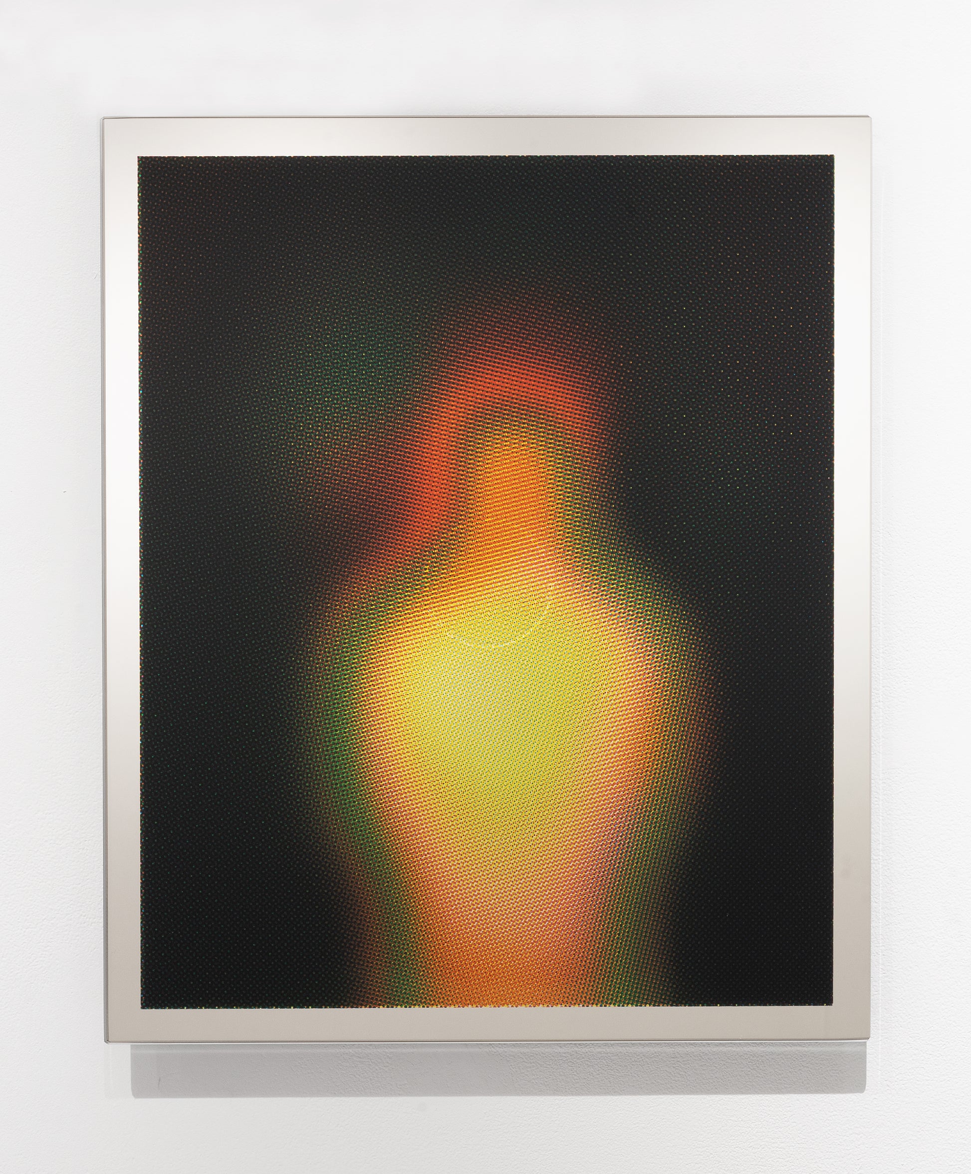 When a blurry image is subjected to coarse halftone dots and then silkscreened, the image is converted into dots, making it even more fuzzy.