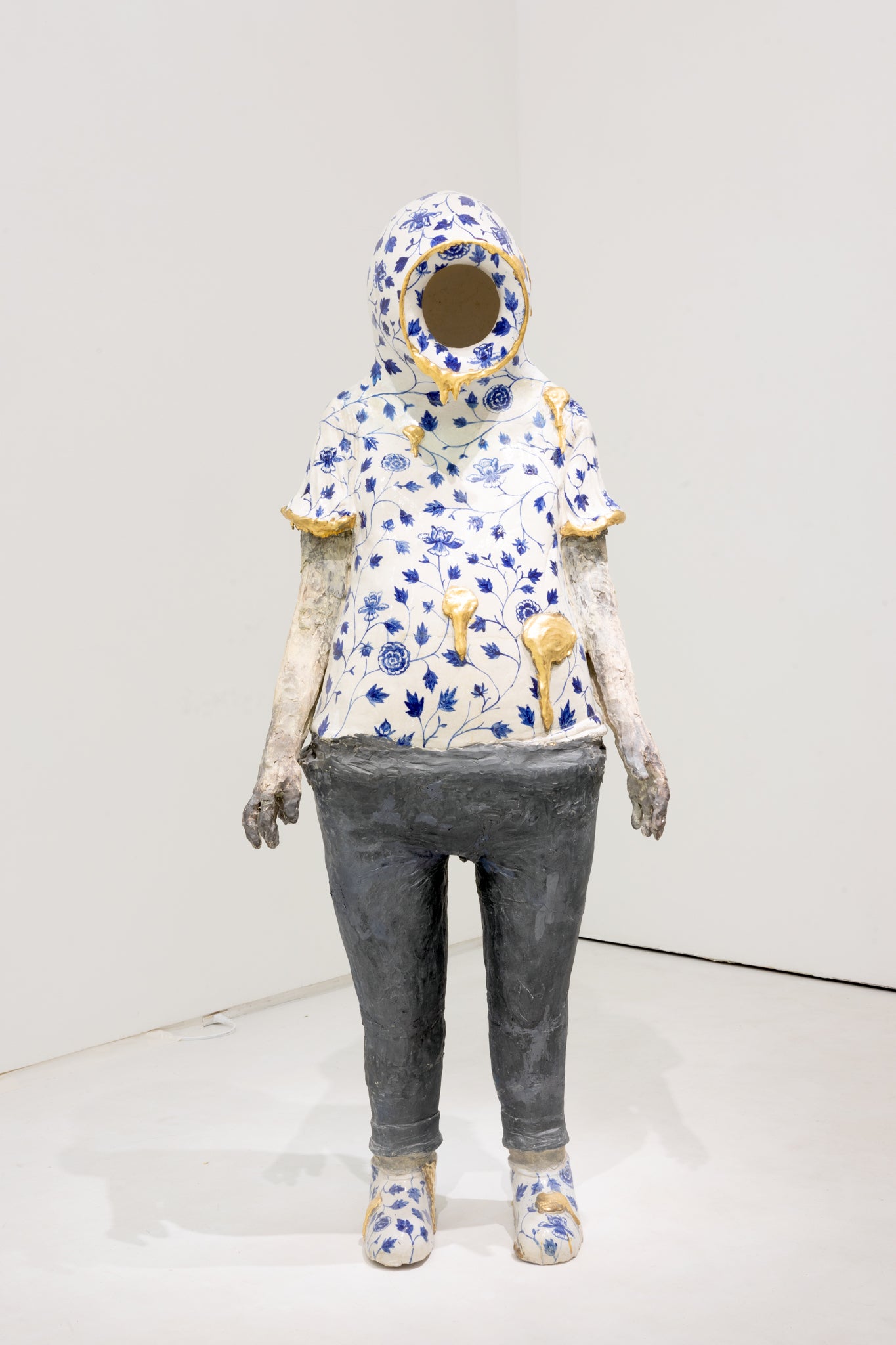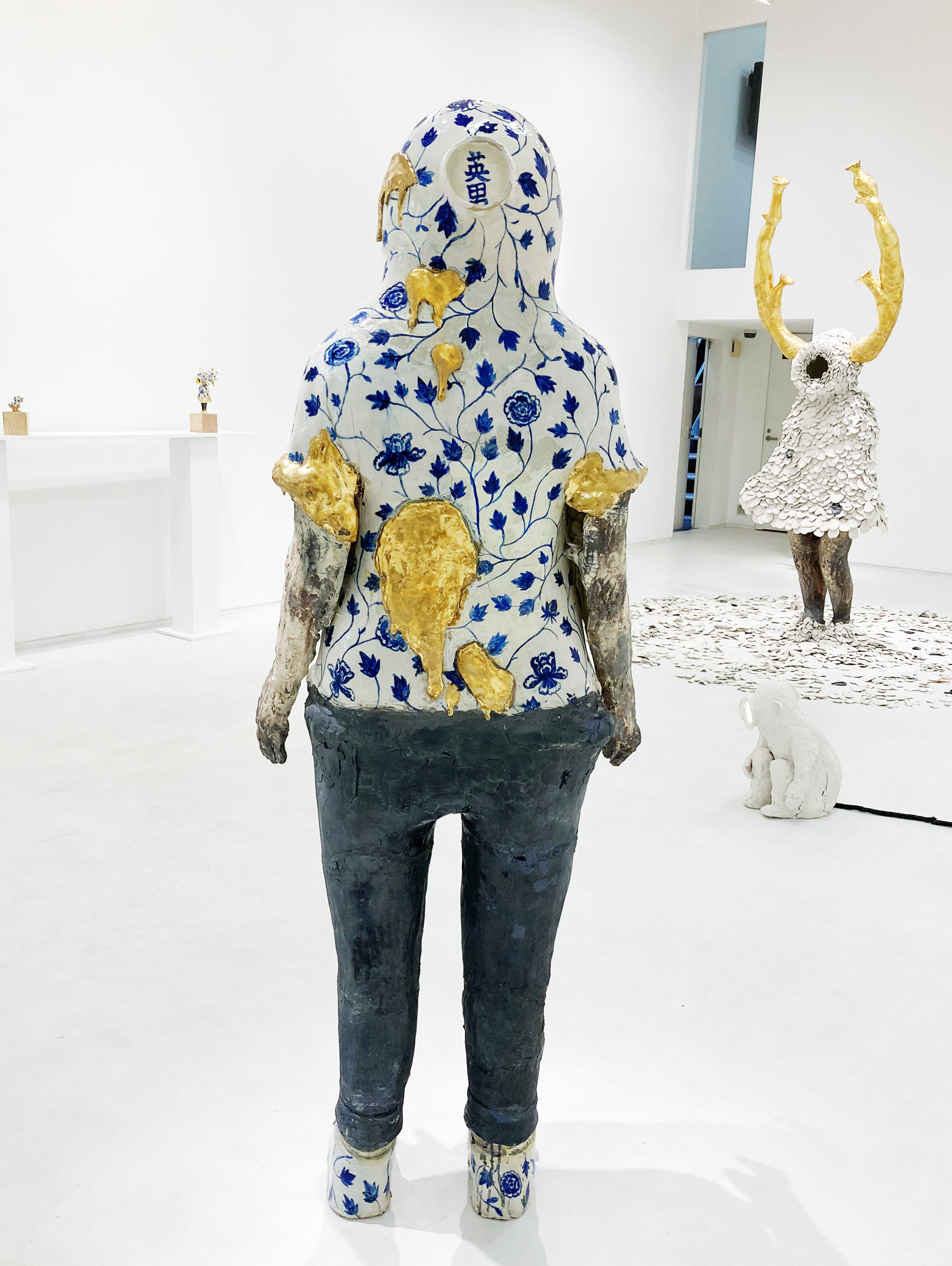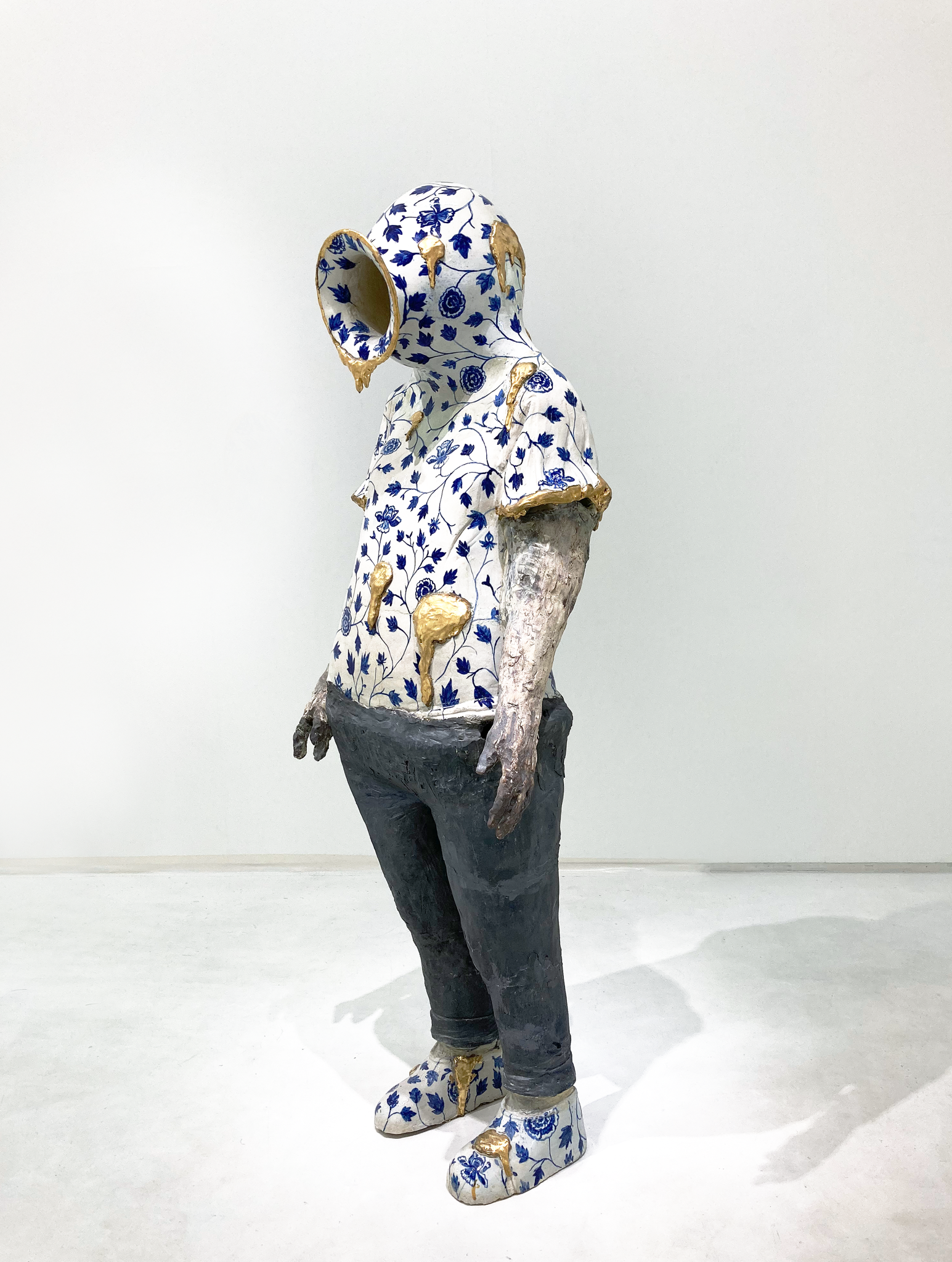 The “Fill with Empty” works are a series of portraits in which the face of a person, animal, or other living creature is replaced by the mouth of a vase, jar, or other ceramic object. Each piece is made of pottery clay, and is created by hand, making the inside of the clay hollow. The faces are hollowed out, and although we cannot see their expressions, we can sense the outlines of each piece's existence through its appearance and gestures.