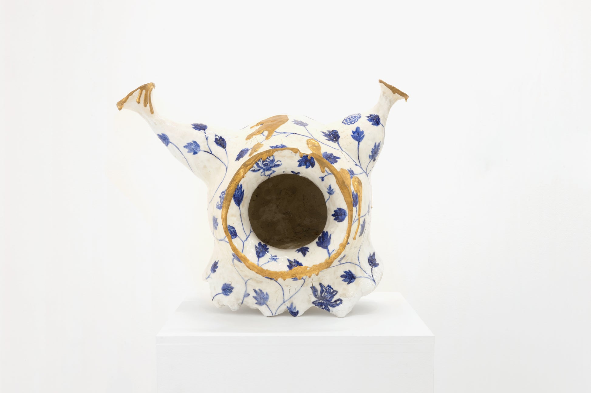 The “Fill with Empty” works are a series of portraits in which the face of a person, animal, or other living creature is replaced by the mouth of a vase, jar, or other ceramic object. Each piece is made of pottery clay, and is created by hand, making the inside of the clay hollow. The faces are hollowed out, and although we cannot see their expressions, we can sense the outlines of each piece's existence through its appearance and gestures.