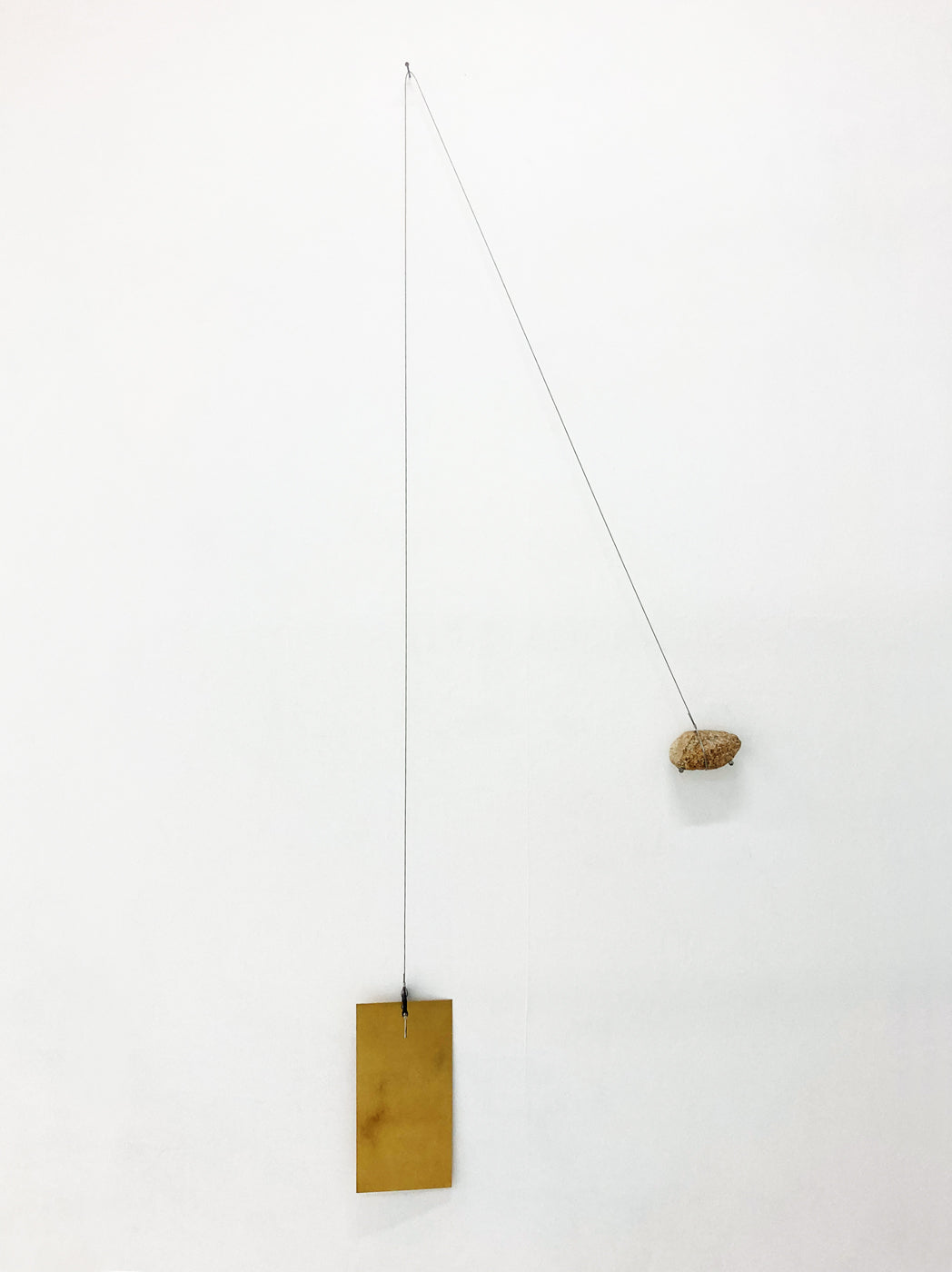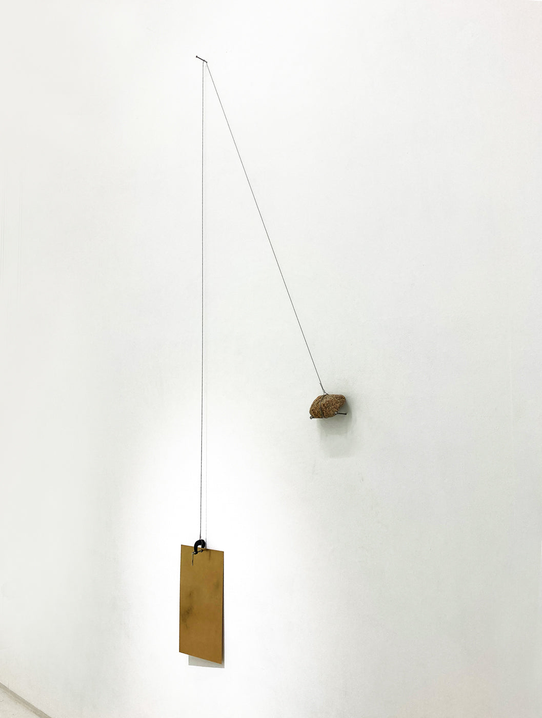 真鍮板とワイヤーと石だけで簡単に世界と関われる作品が作れないかと思った。