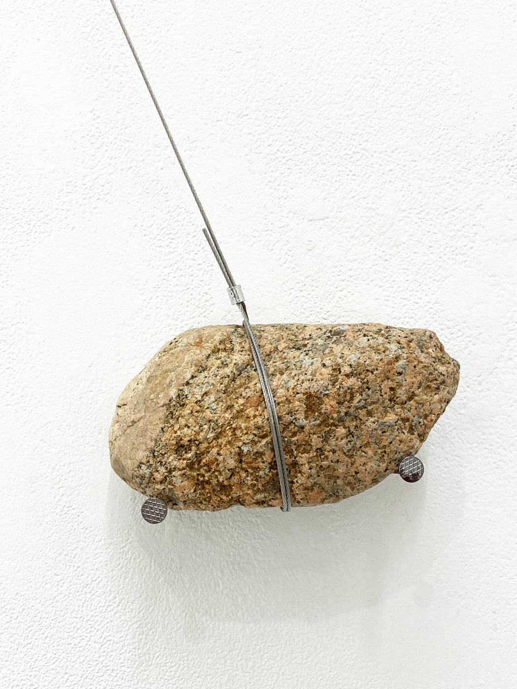 石の落下の停止の状況を作り出すことによってここでも見えない重力の場を作り出すことが出来る。人間と自然との関わりから顕在化する重力の場が作り出される。