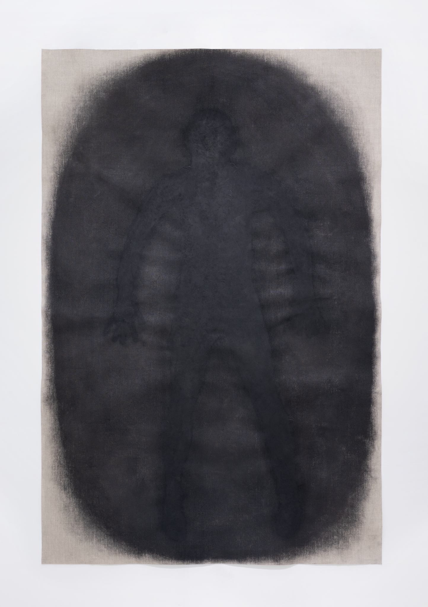 「Prayer いのりの輪郭 黒」「Prayer いのりの輪郭 白」は、キャンバス地に黒は木炭、白は胡粉だけを使用して描かれた対照的な2作品。