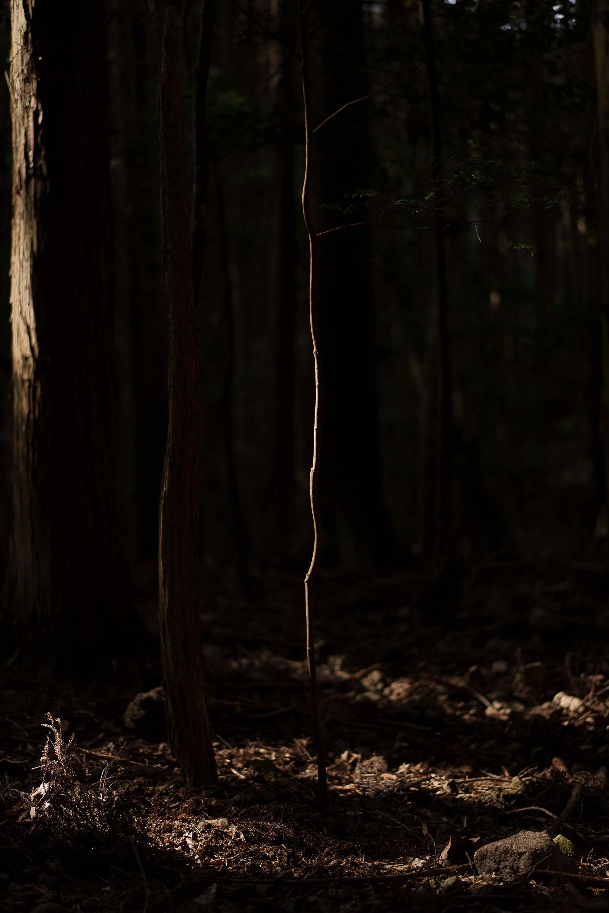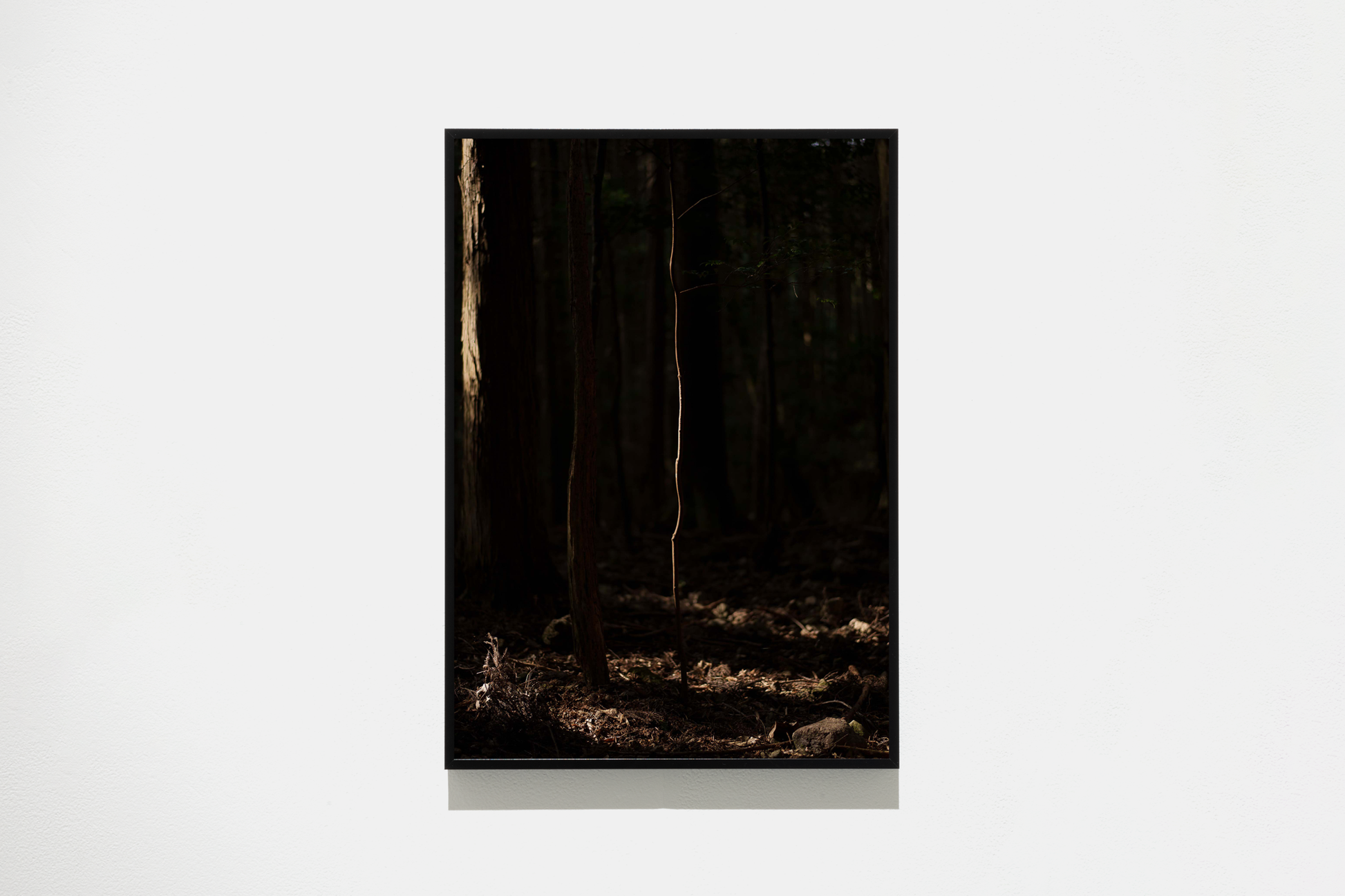 昨年秋に急逝したノマルディレクター・林から提案された個展タイトル「ダーク フォレスト」の言葉に導かれるように、東影は昔から馴染みのある自宅の裏山の奥に分け入り、その場所での時間の経過の中で見た光、聞こえた音を記録しました。そこでは自分の制作の根源的なものに改めて向き合うきっかけになったといいます。