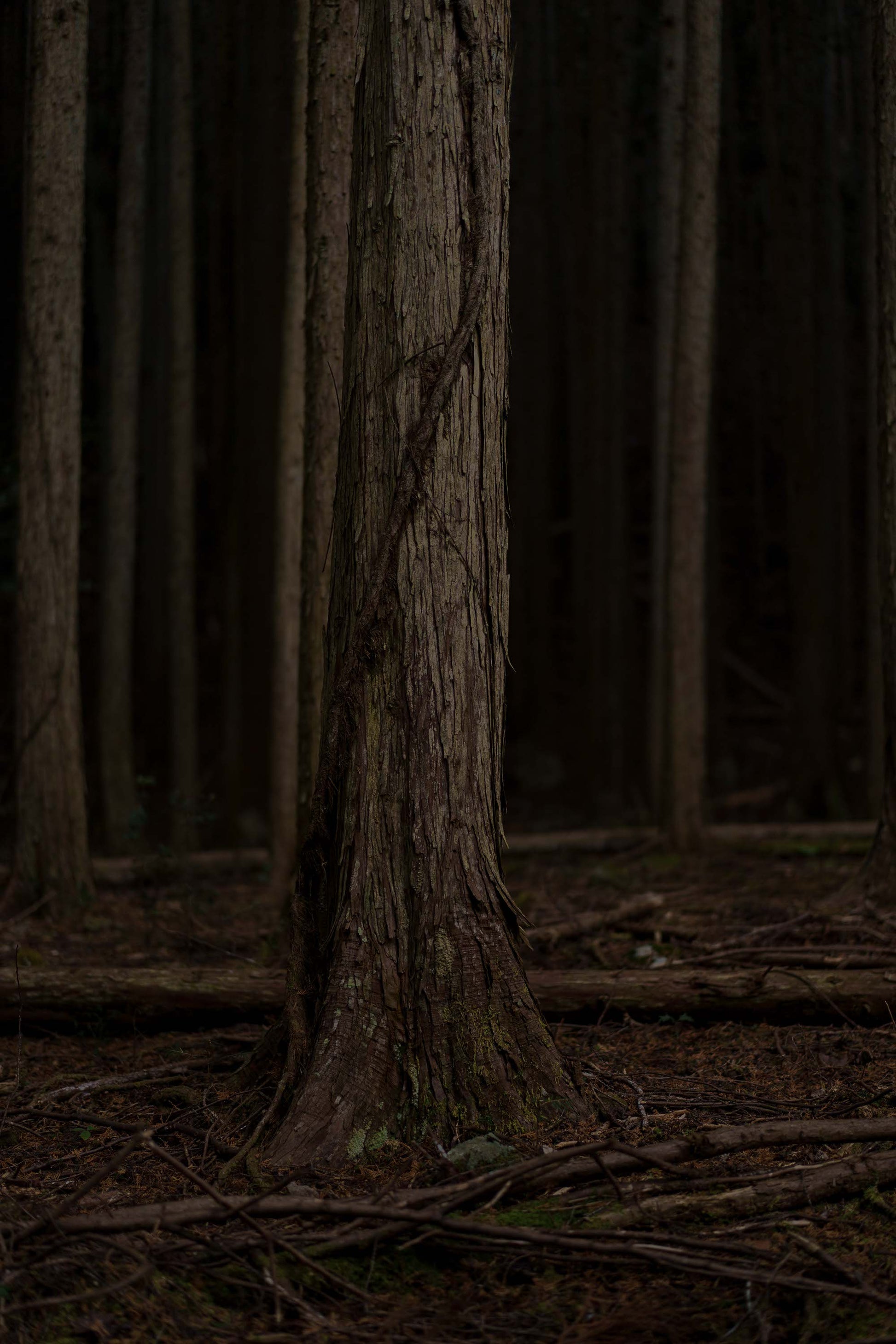 昨年秋に急逝したノマルディレクター・林から提案された個展タイトル「ダーク フォレスト」の言葉に導かれるように、東影は昔から馴染みのある自宅の裏山の奥に分け入り、その場所での時間の経過の中で見た光、聞こえた音を記録しました。そこでは自分の制作の根源的なものに改めて向き合うきっかけになったといいます。