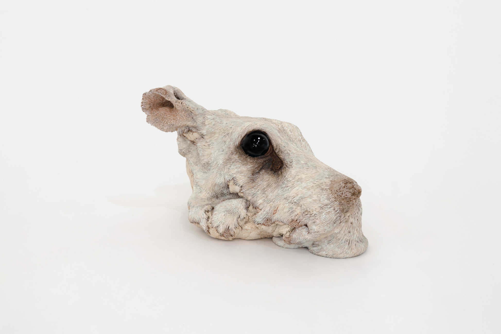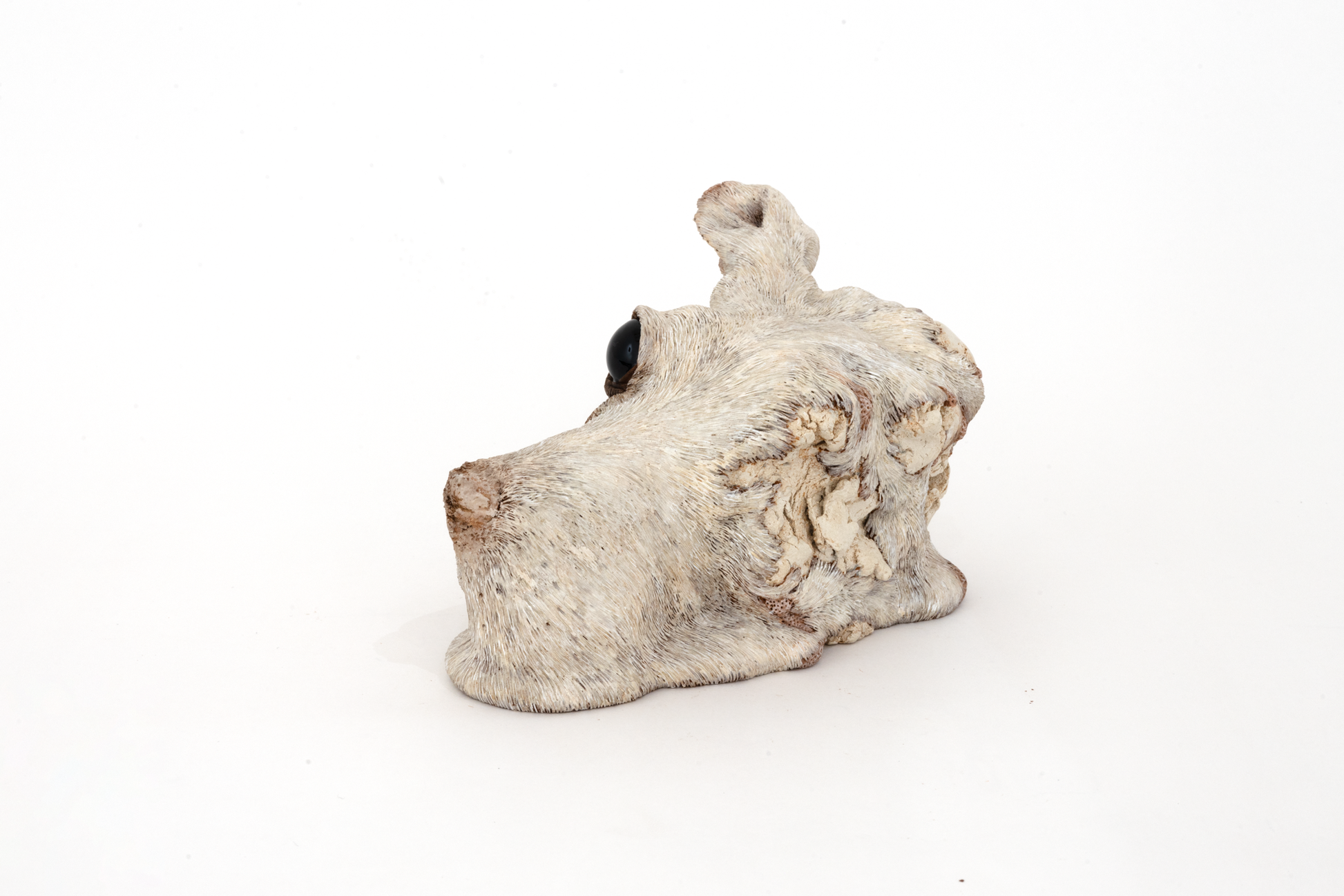 緻密な毛並みに覆われた精巧な作品群は一見すると写実的ですが、自身の記憶のみでかたち作るその造形は見る人に不思議な違和感と余韻を残します。