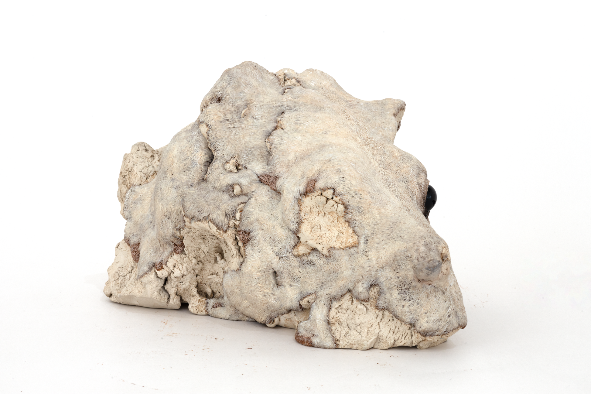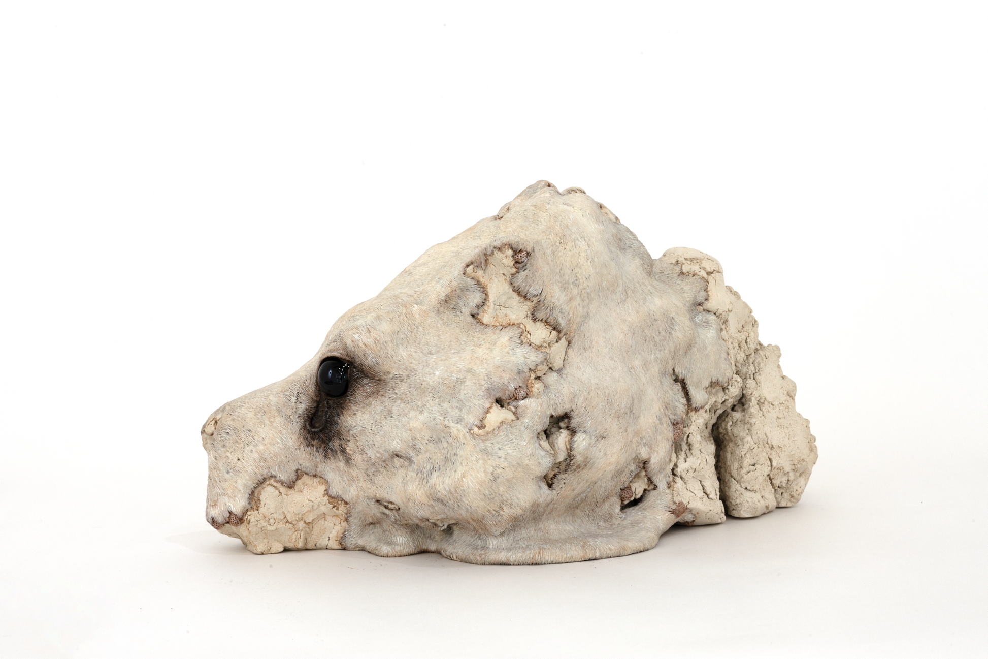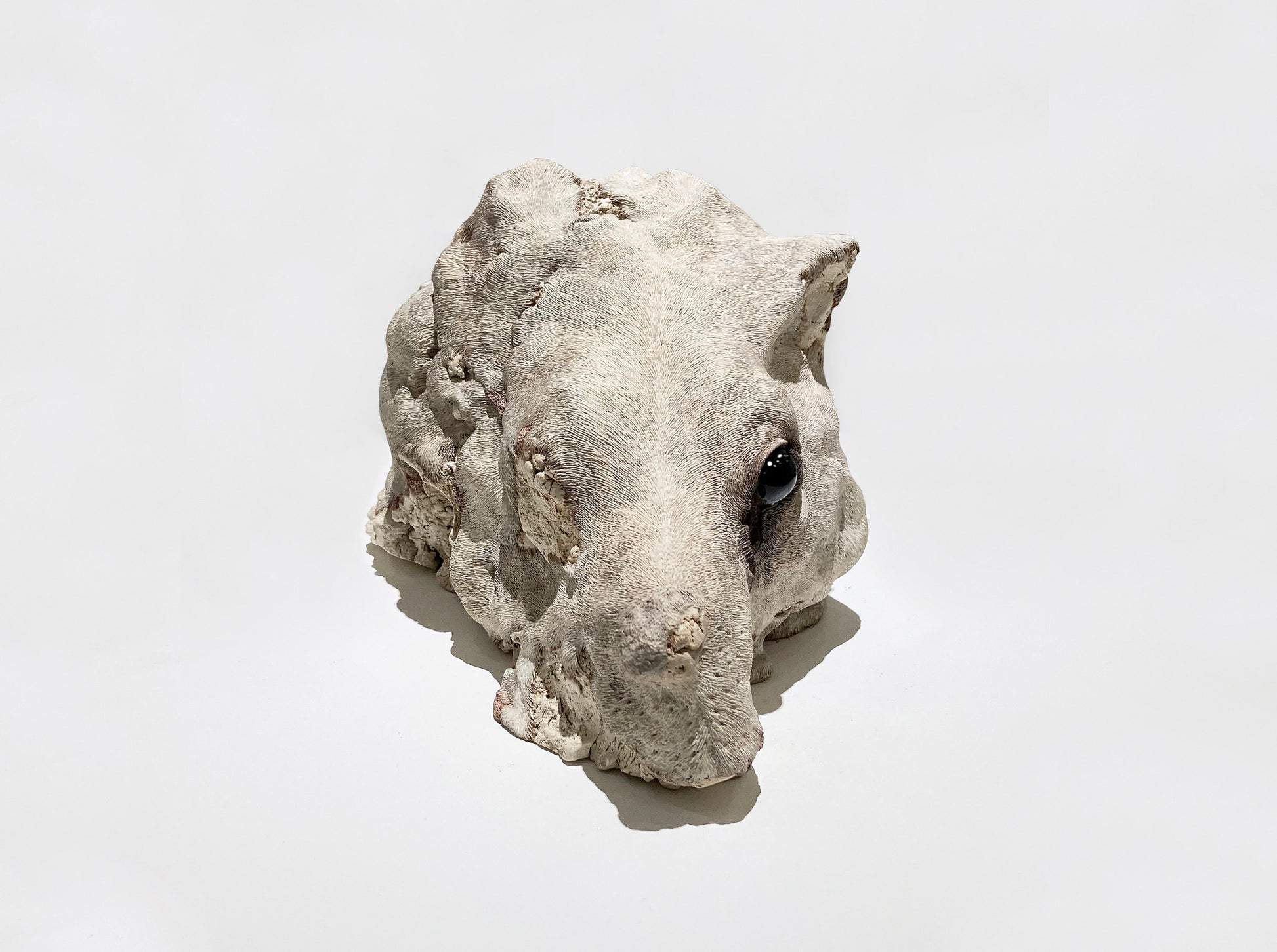 緻密な毛並みに覆われた精巧な作品群は一見すると写実的ですが、自身の記憶のみでかたち作るその造形は見る人に不思議な違和感と余韻を残します。