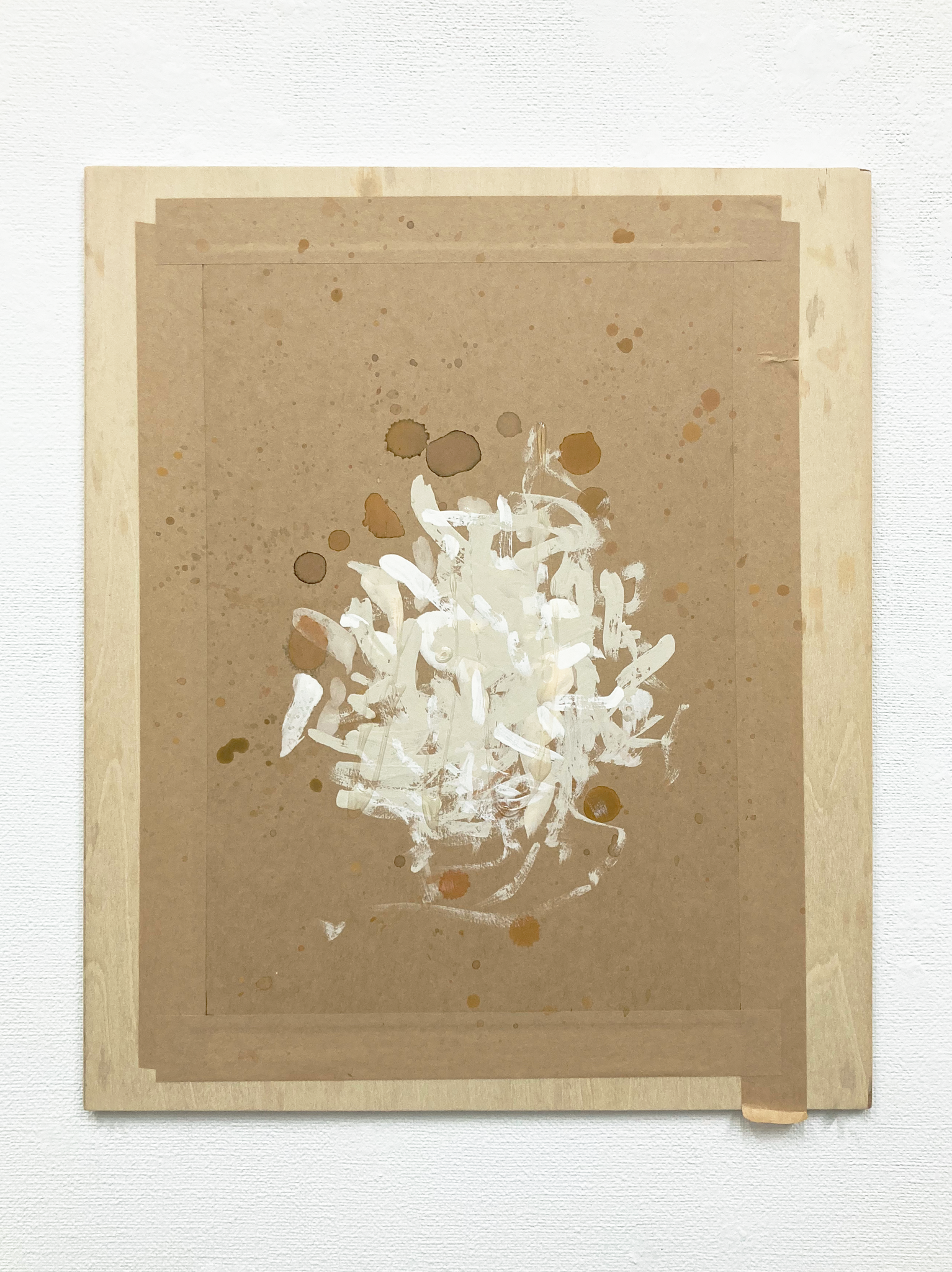 シナ合板, クラフト紙, 水貼りテープ, アクリル絵具