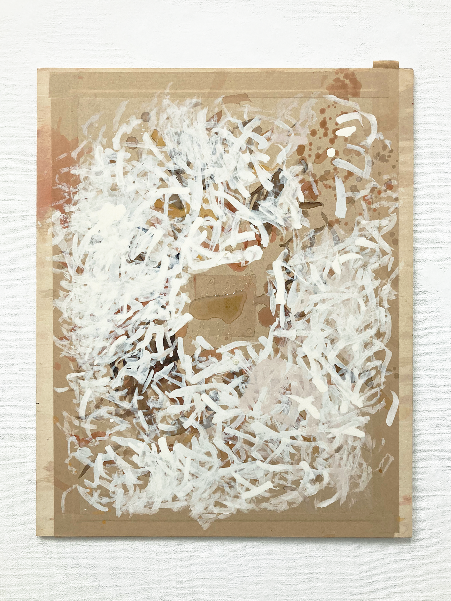 シナ合板, クラフト紙, 水貼りテープ, アクリル絵具