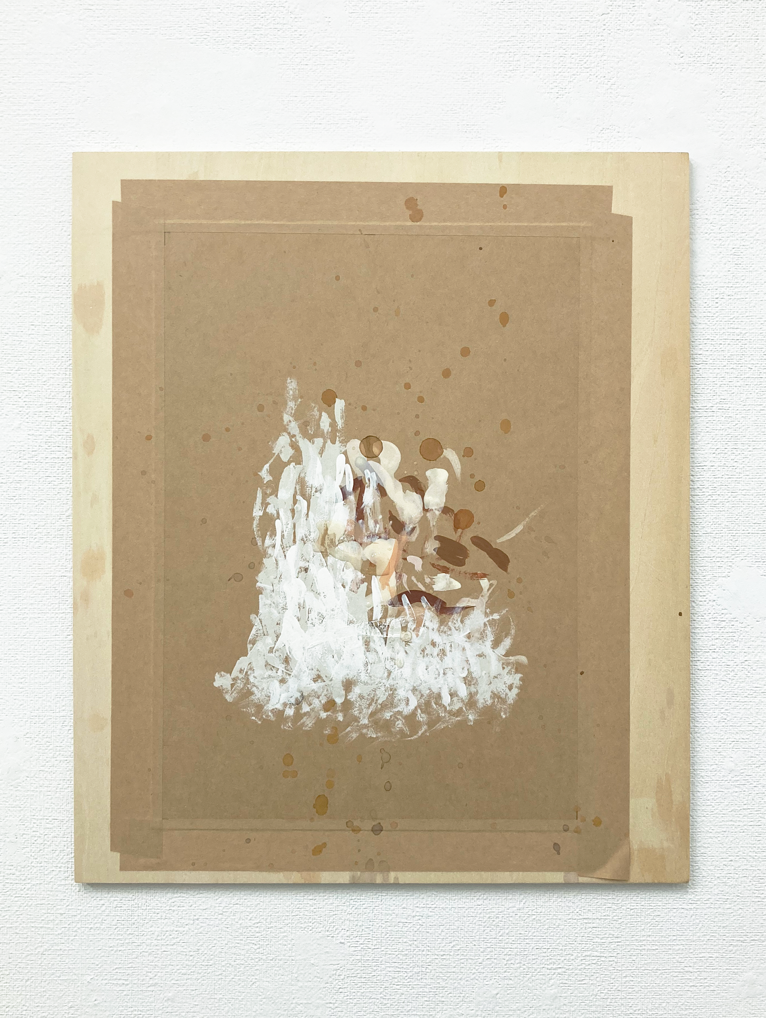 シナ合板, クラフト紙, 水貼りテープ, アクリル絵具