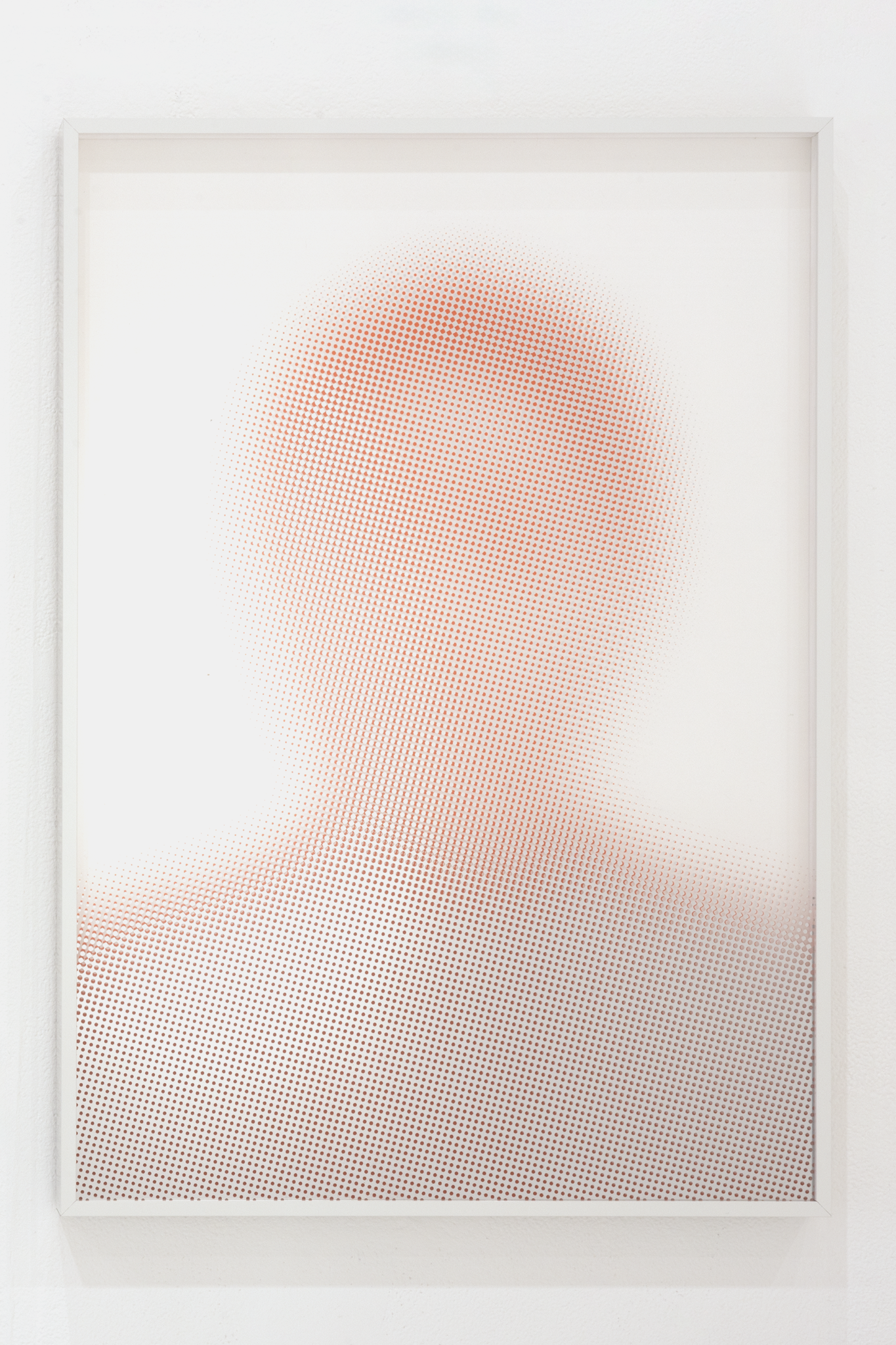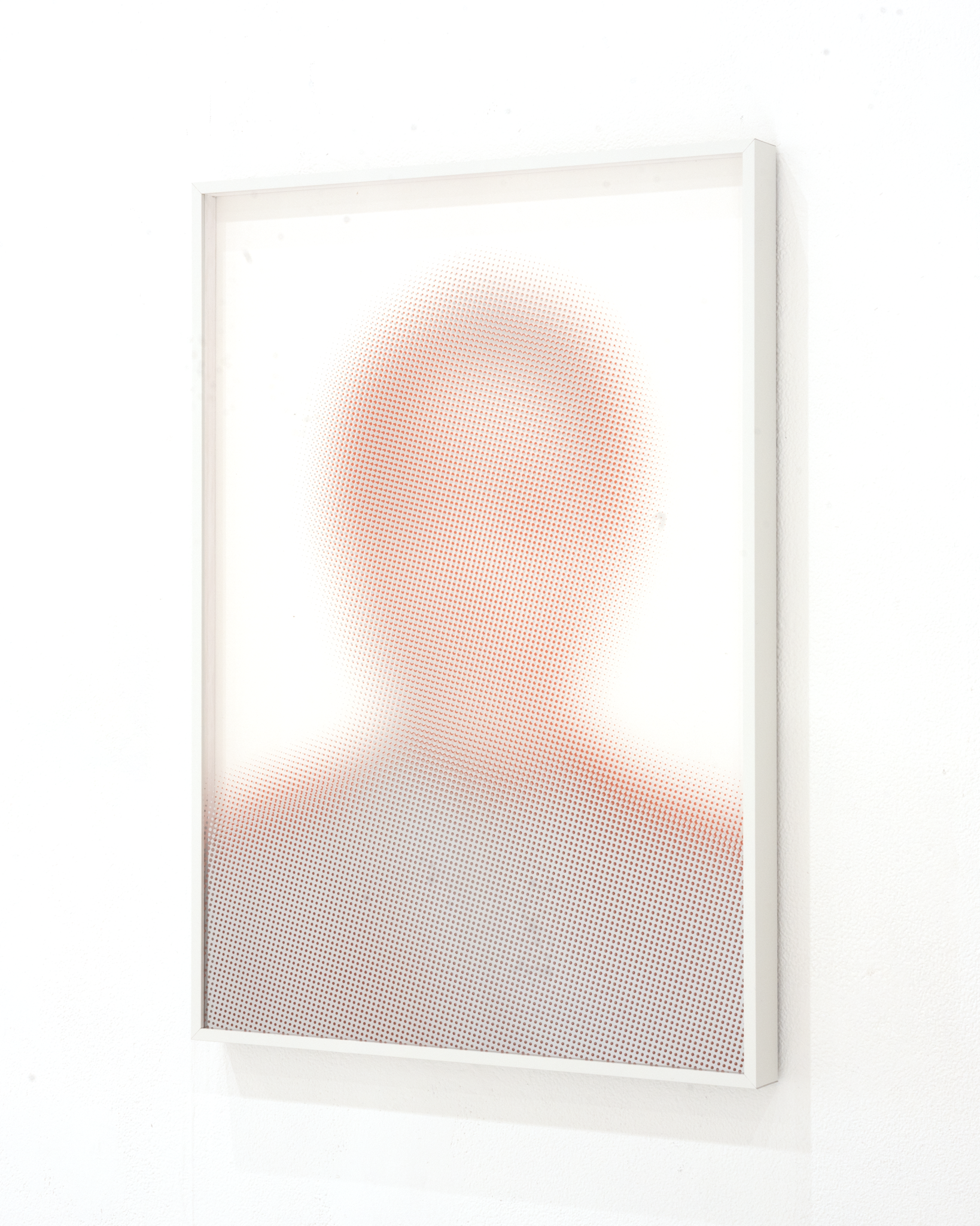ノマルエディションとのコラボレーションによって制作された本作では、網点状に表現された作家の肖像が、1cmの間隔を空けて二層に重ねられています。