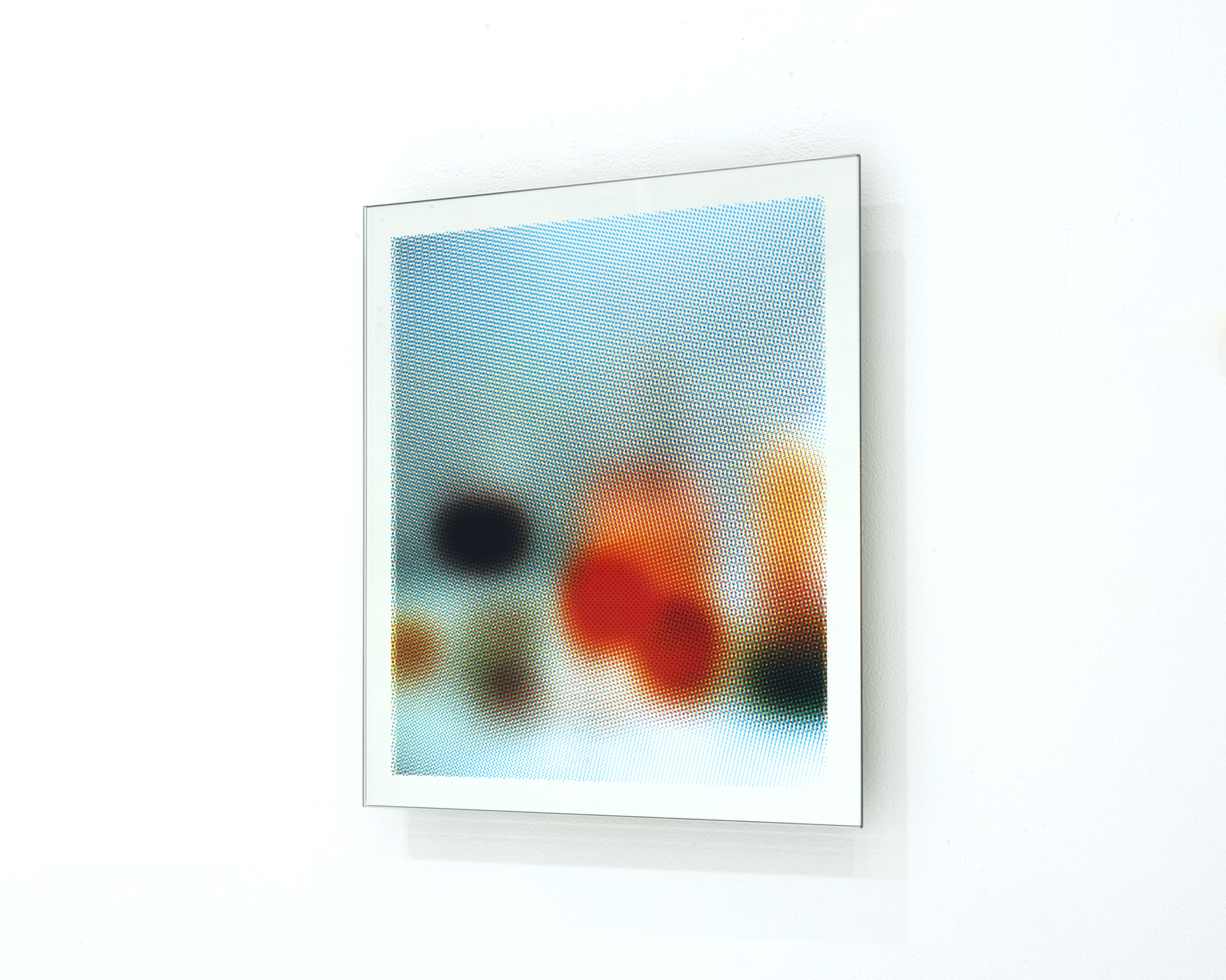 「#illusion #幻影」は、SNS上で読み込み中に表示されるぼやけた画像に着想を得たシリーズです。不安定な通信環境下で垣間見える曖昧なイメージを、粗い網点によるシルクスクリーンでミラーに定着させた作品群は、個人的な投影を許容する“鏡”のように、見る者の記憶や感情を呼び起こします。