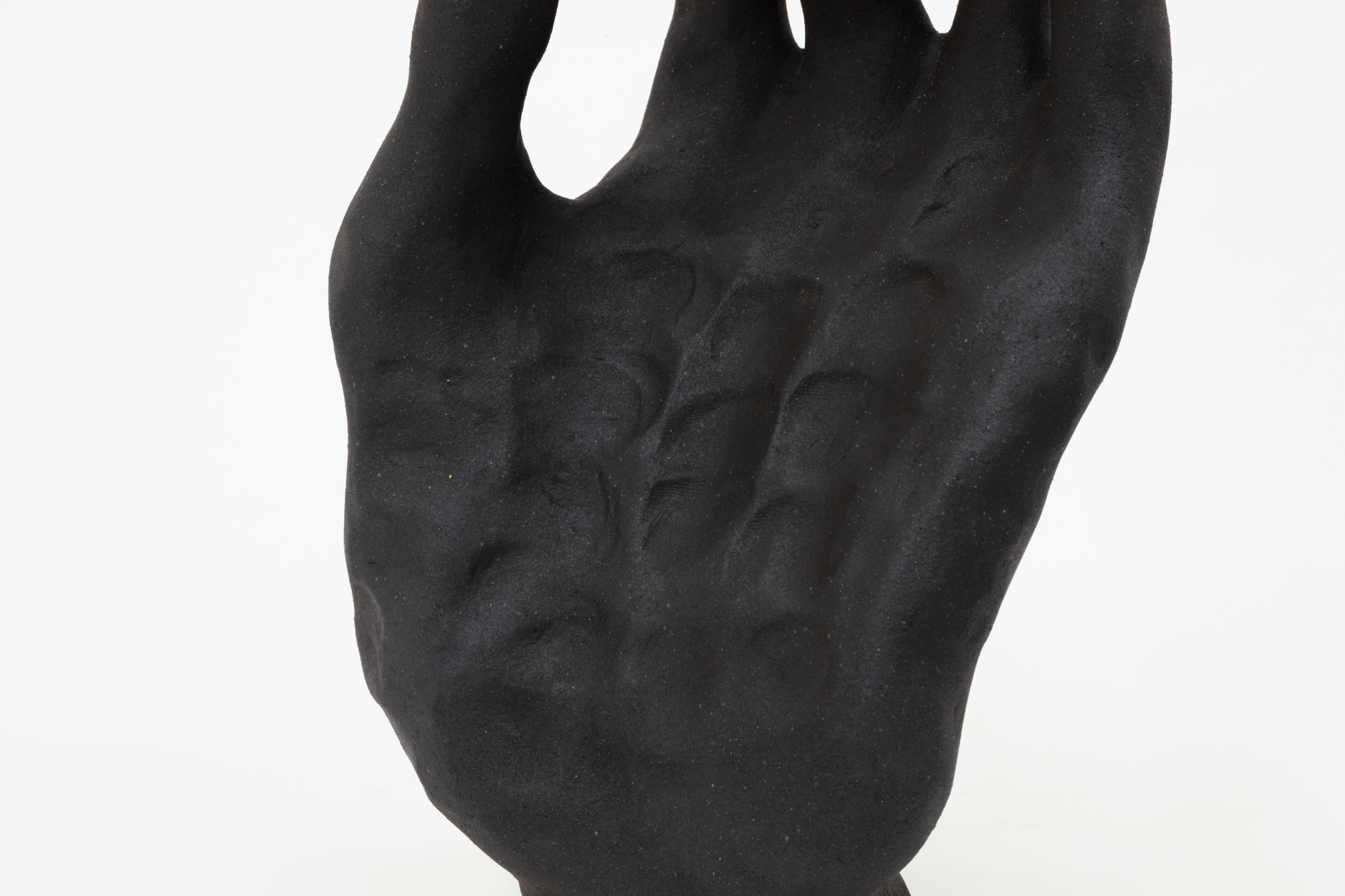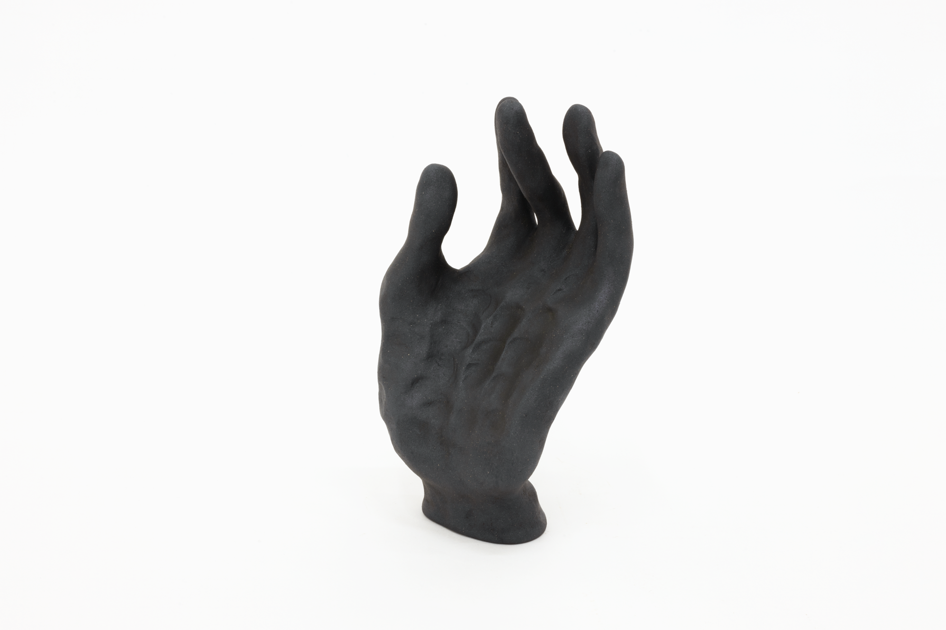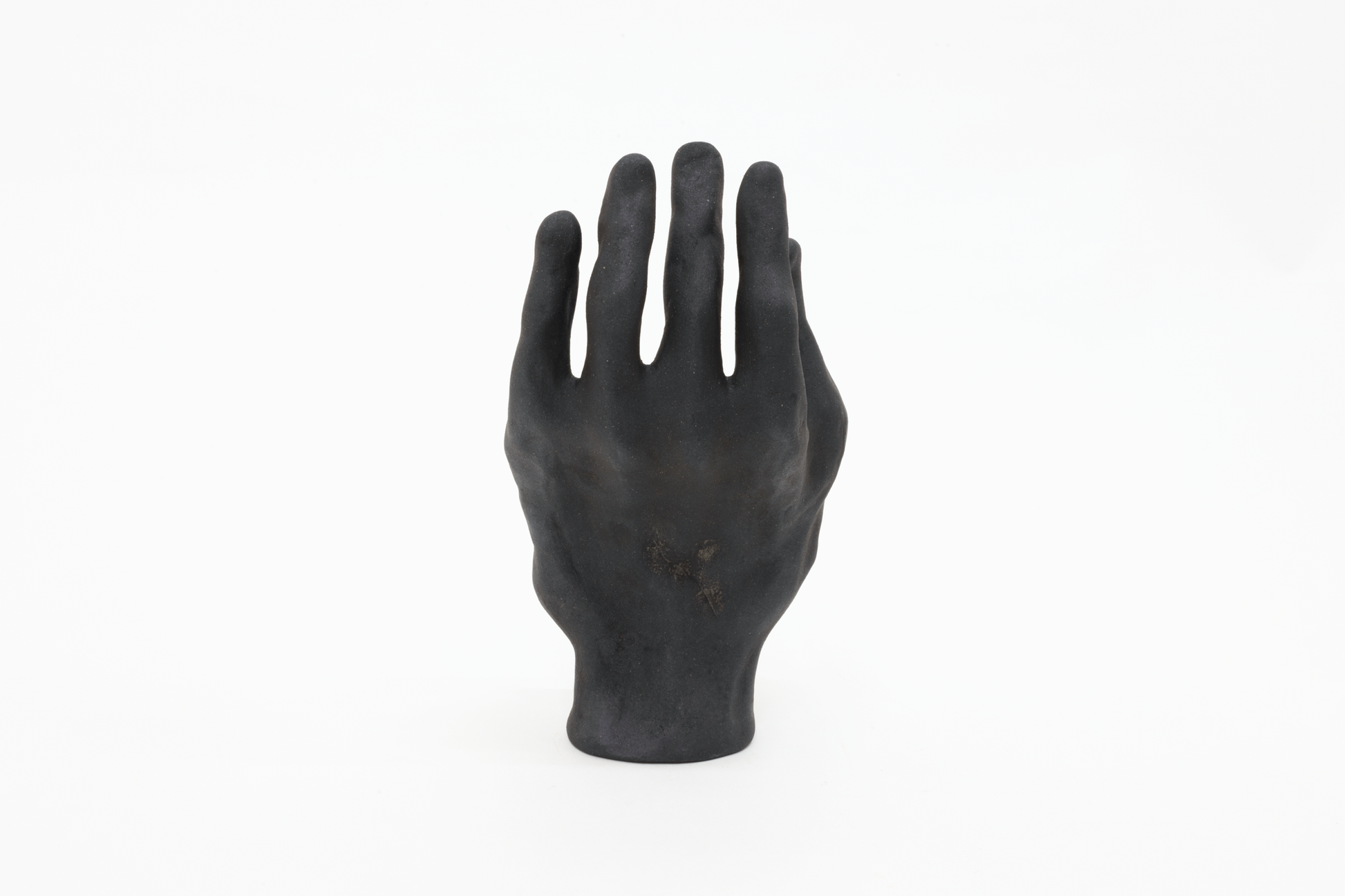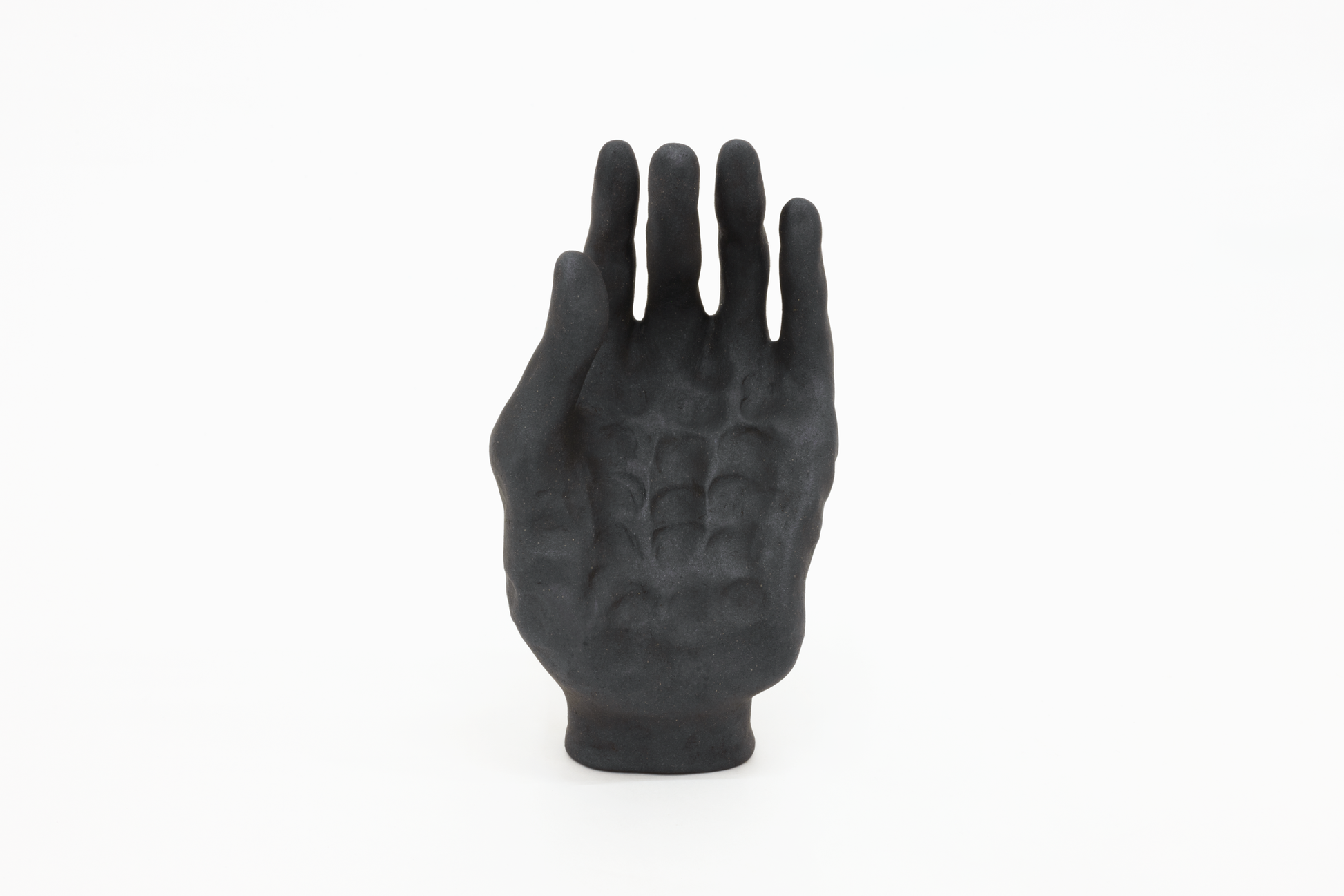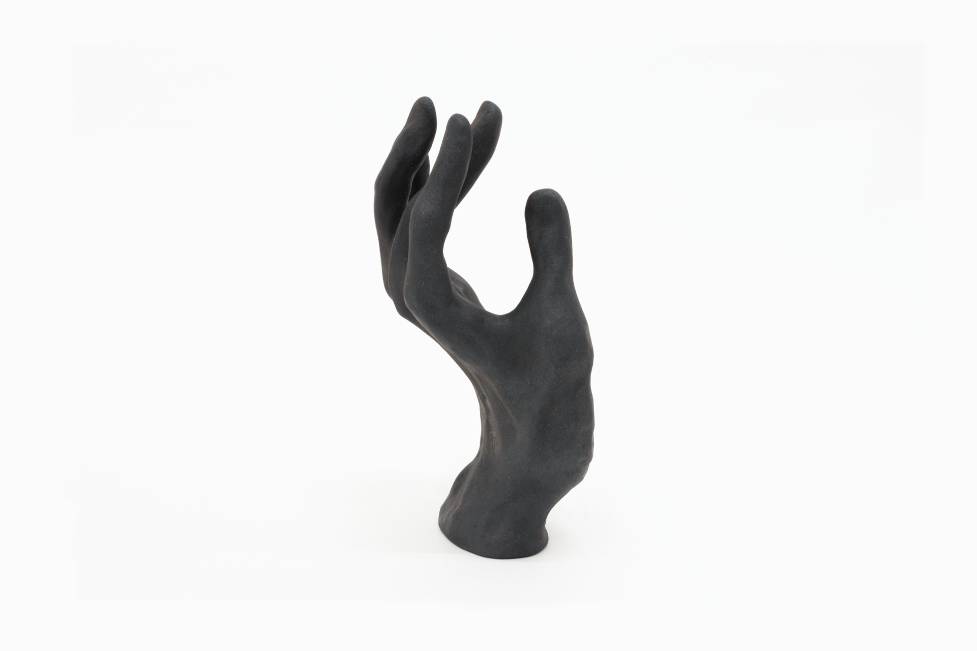 人の手と仏の手のあいだ——触れようとして触れきれない、その微細な距離と感覚をかたちにした立体作品。手が記憶する感触や祈りの気配を、重なり合う緊張と静けさの中に留めている。