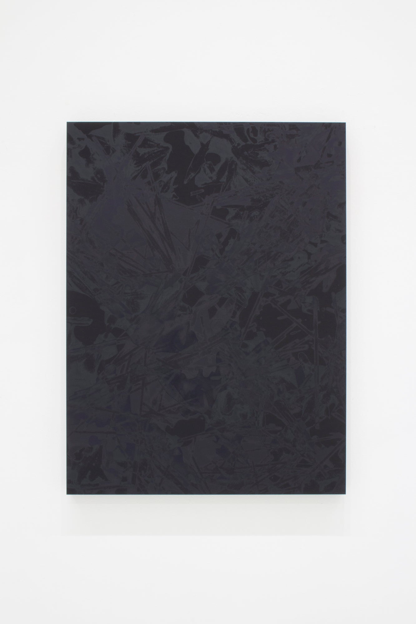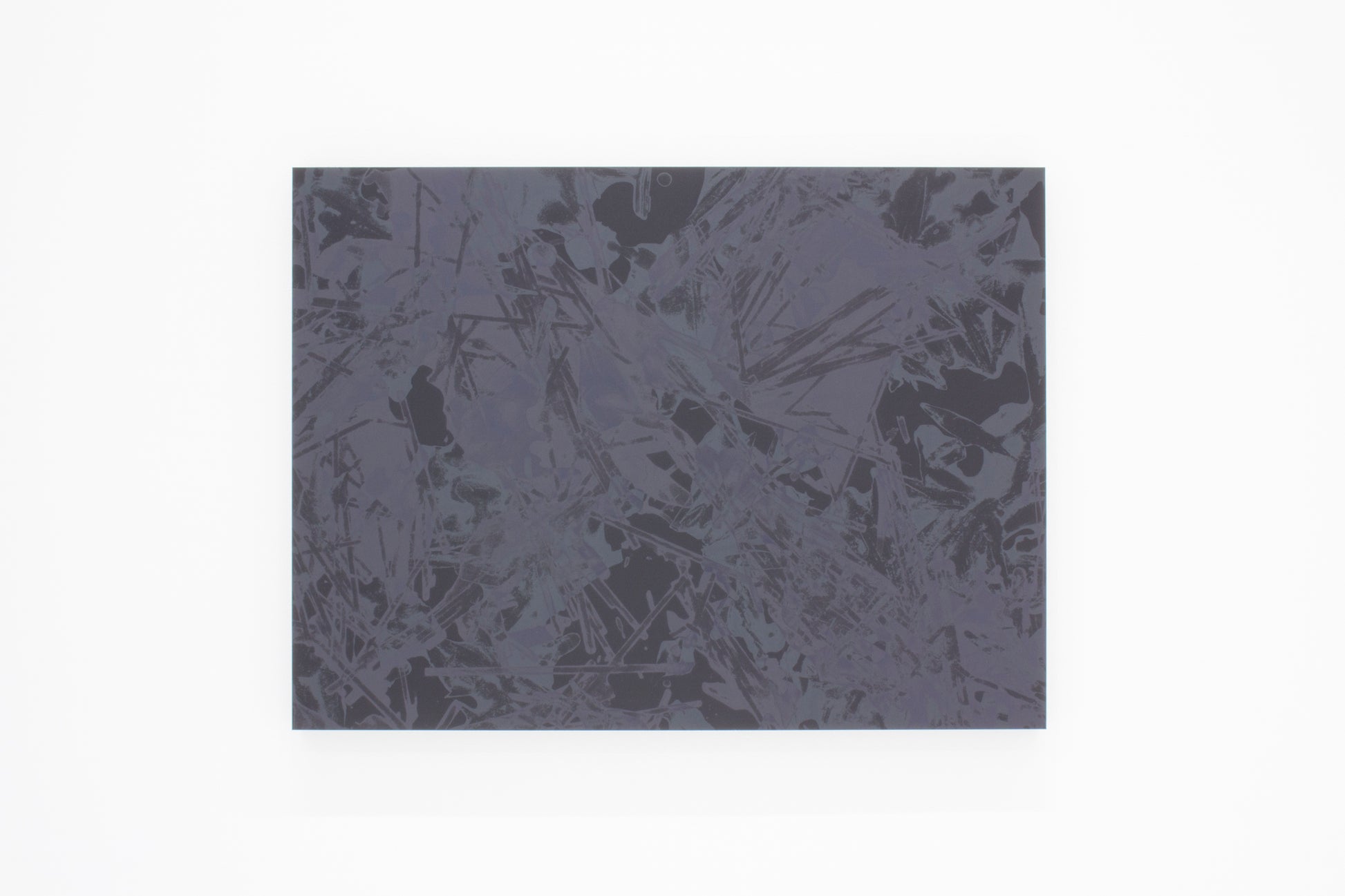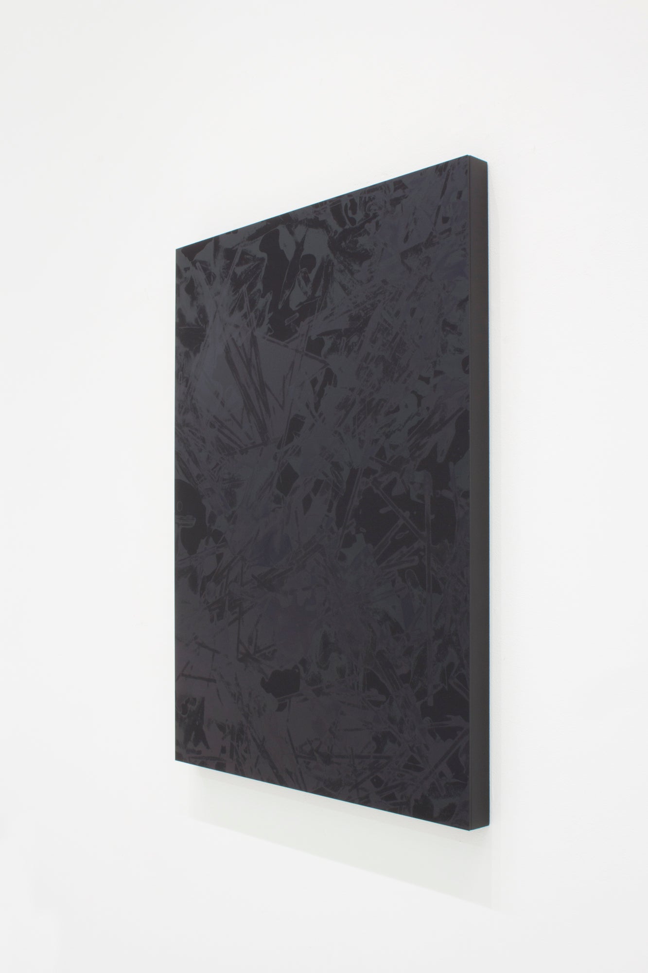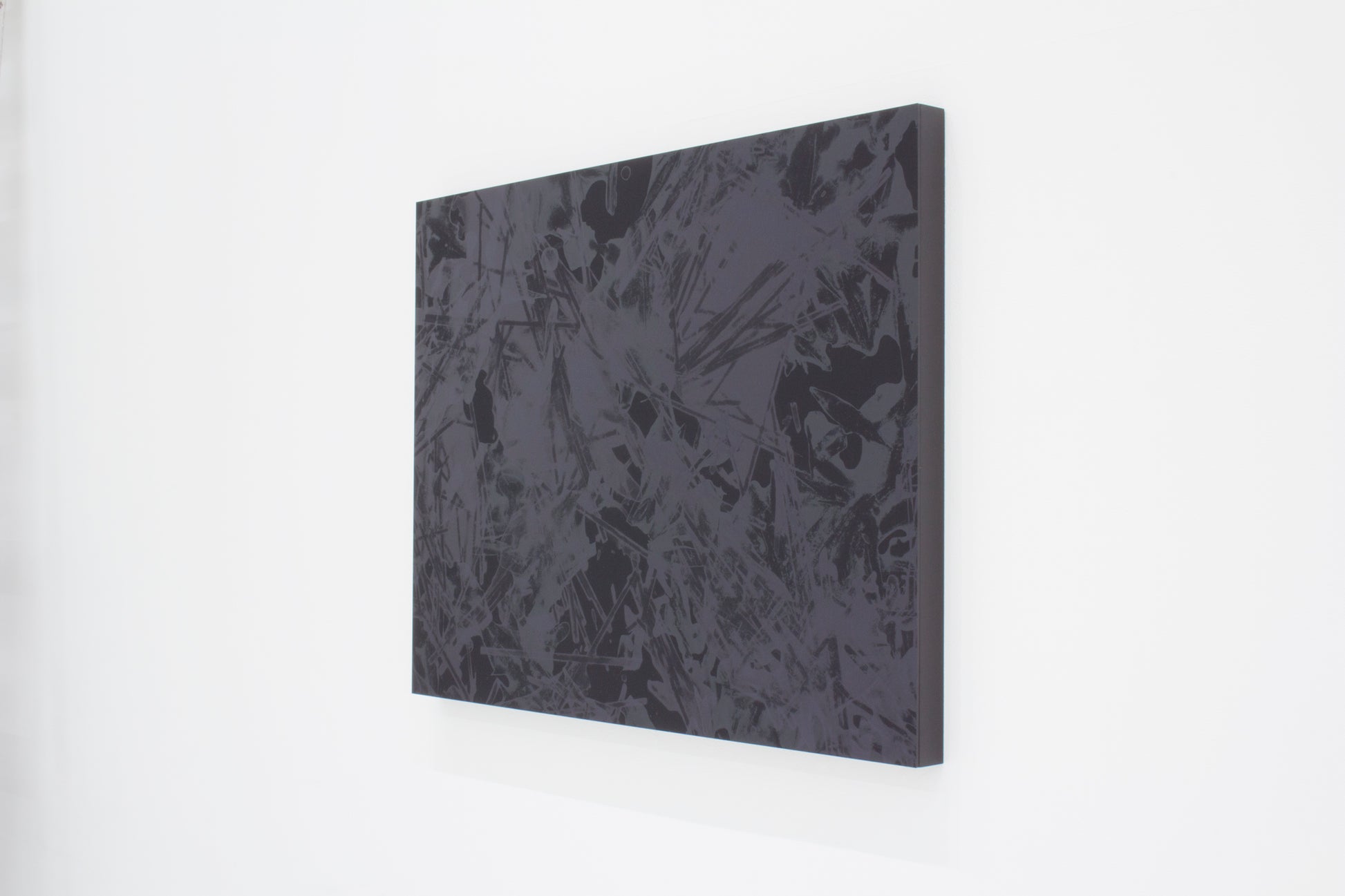 一見すると黒~グレーに見える画面の奥底から、光の反射によって抽象的な像と多様な色が立ち現れる印象的な作品となっています。