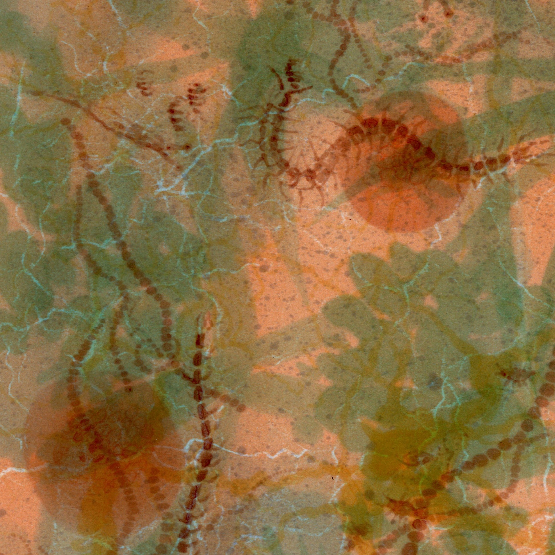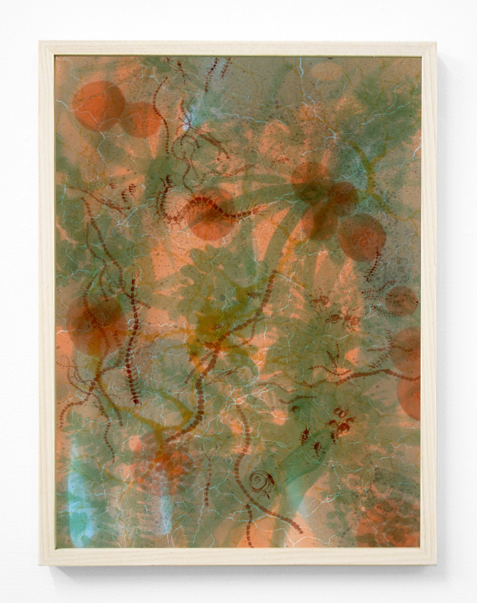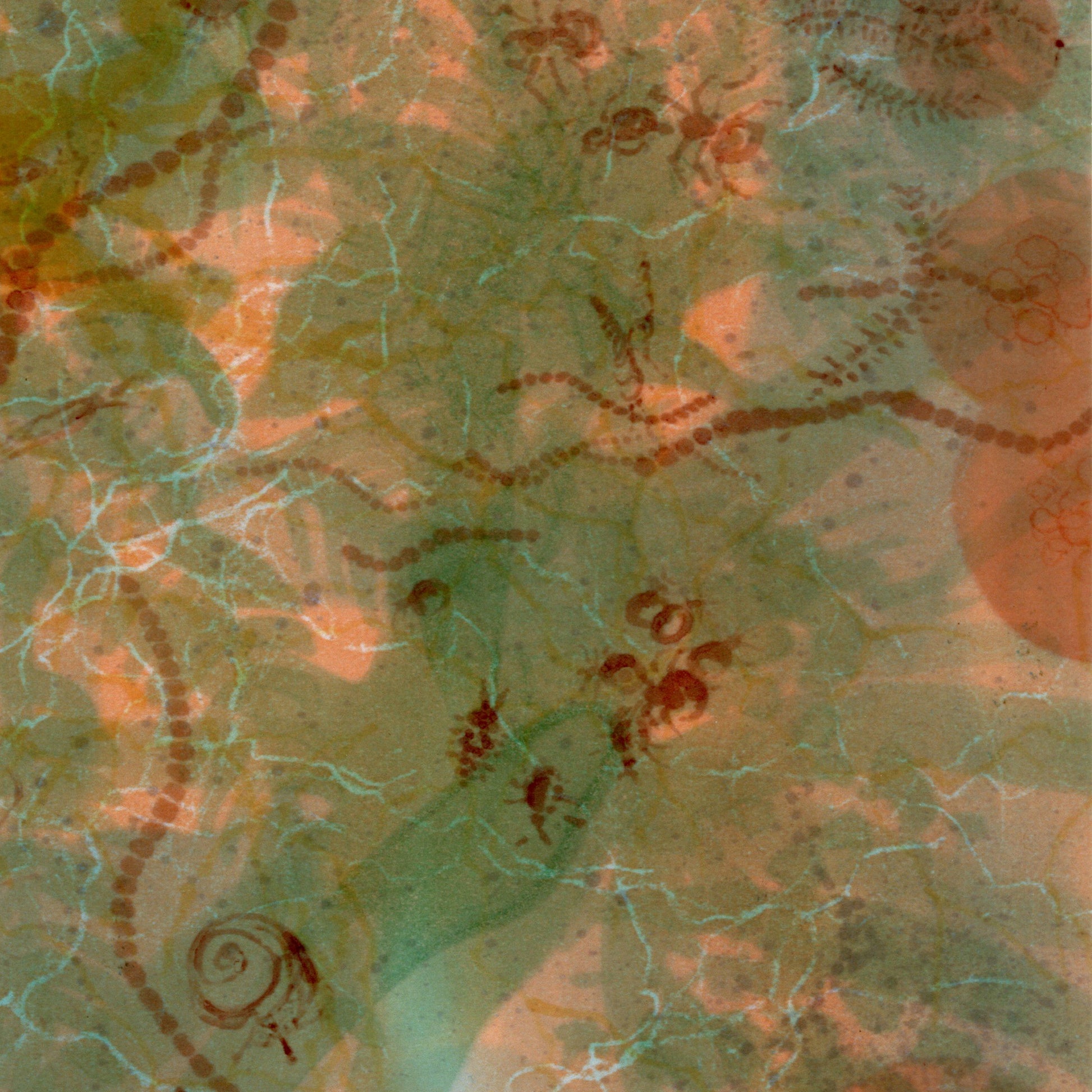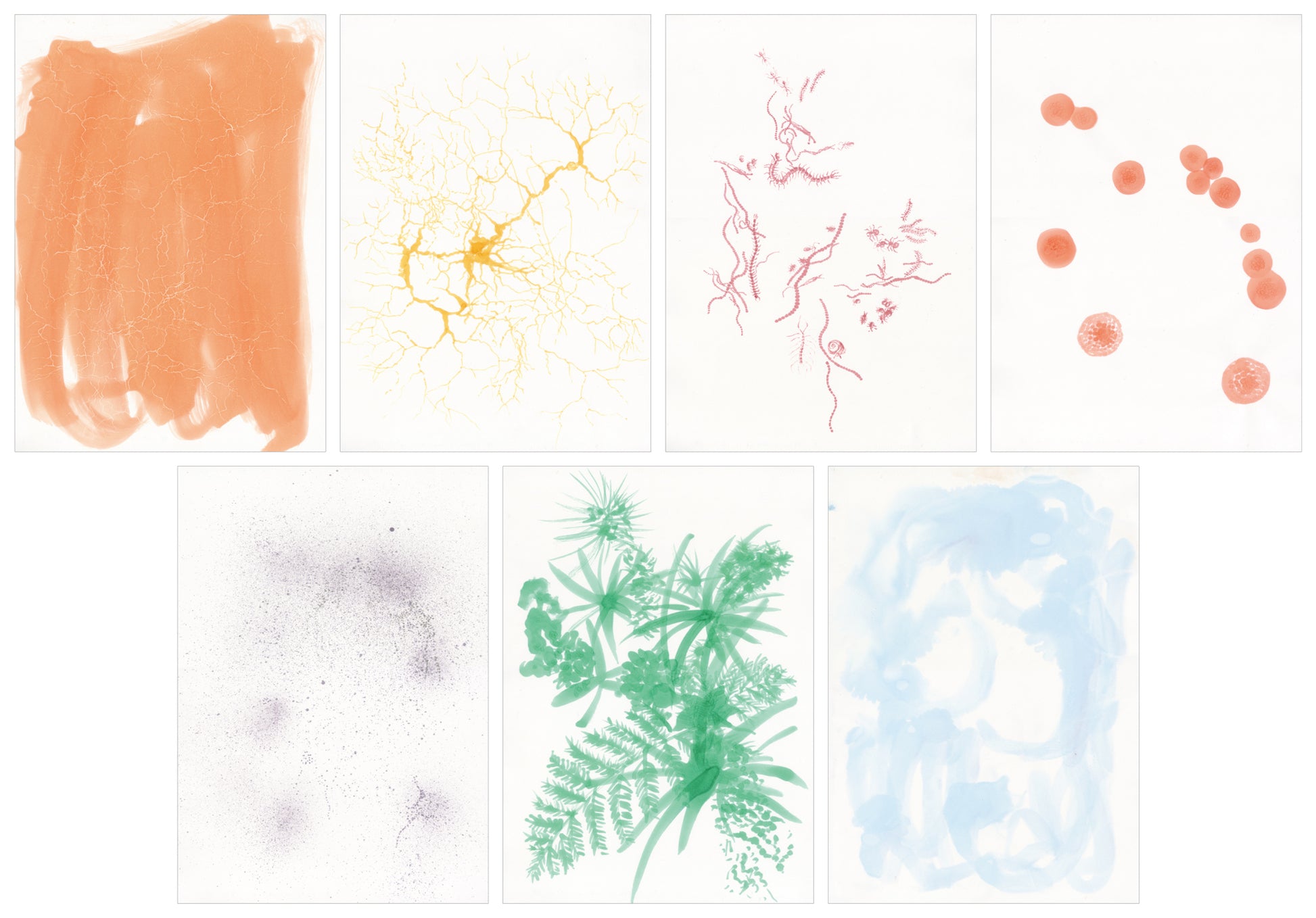 地上から地下へと向かう各層のイメージを7点、ドローイングで制作。それらを順番に重ね合わせることで、生物界の縮図といえる混沌としたイメージが立ち現れました。