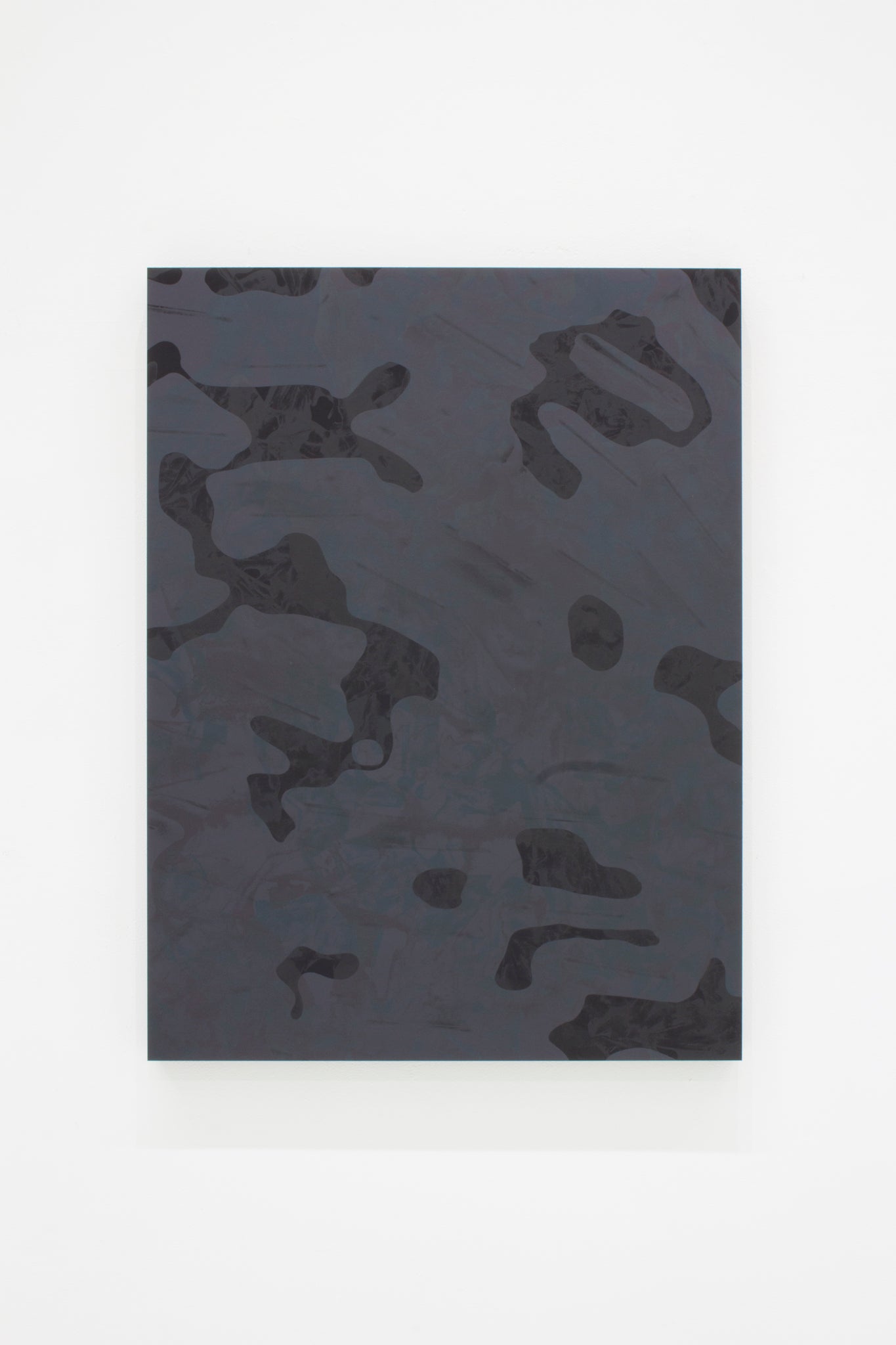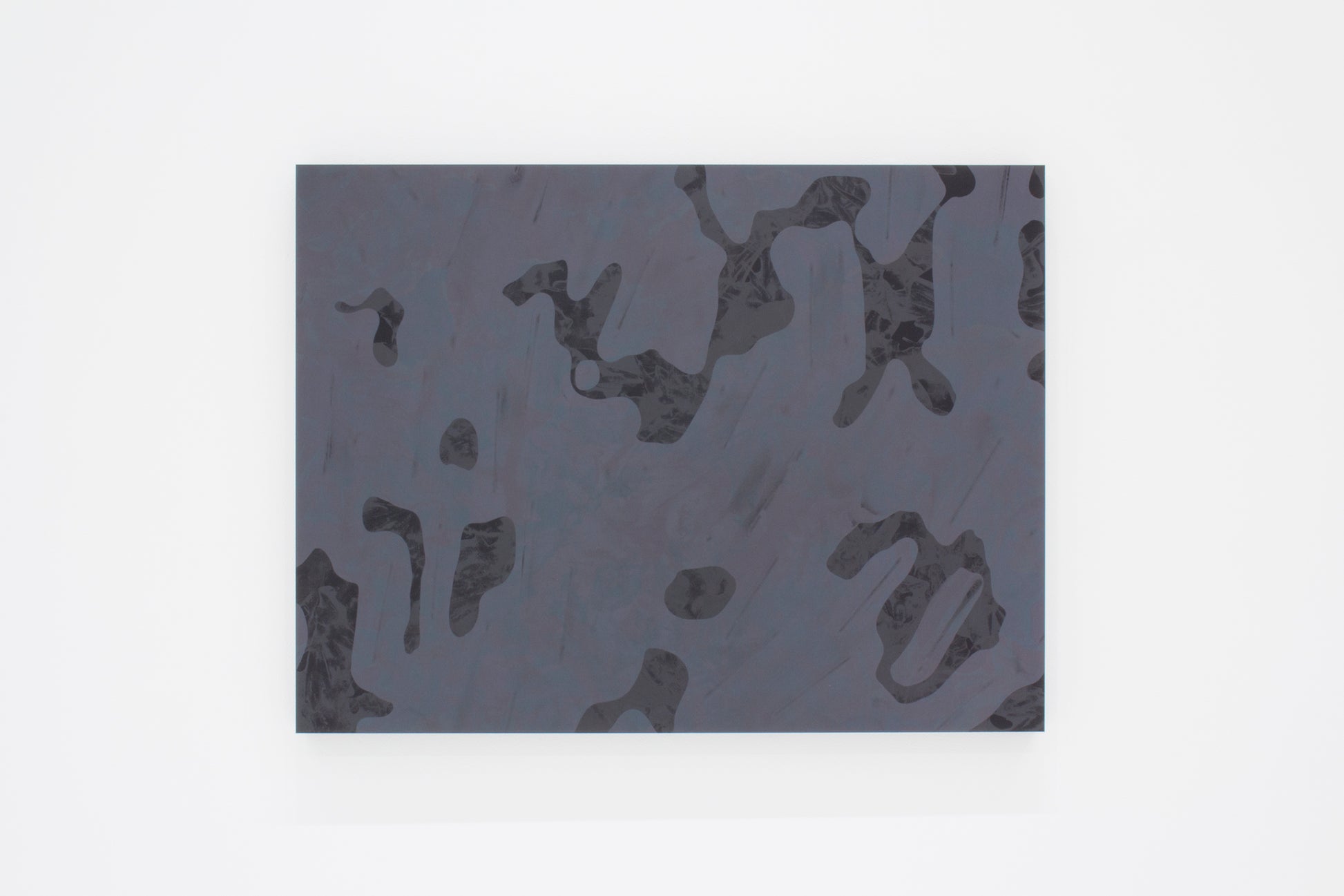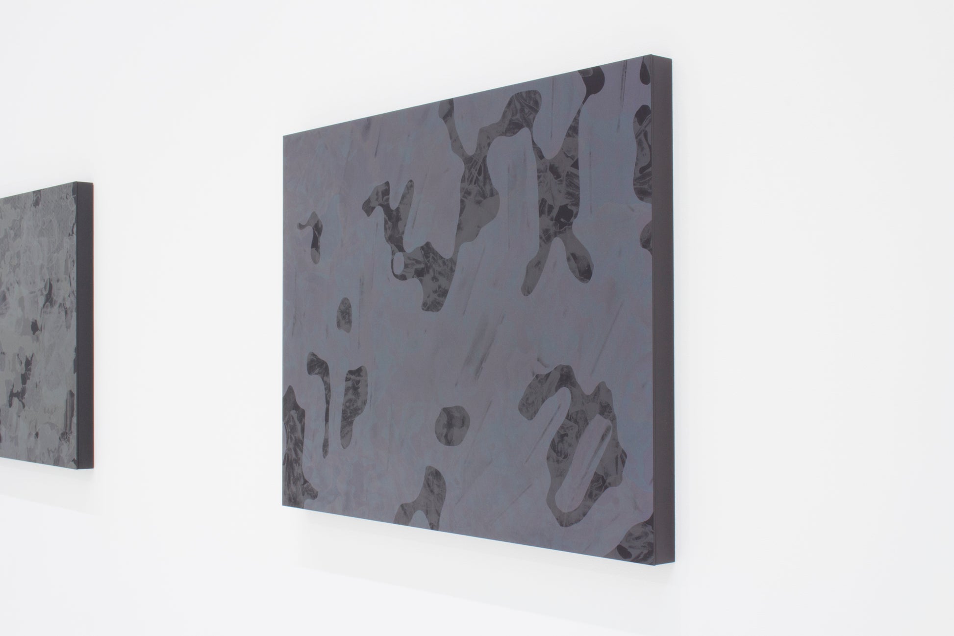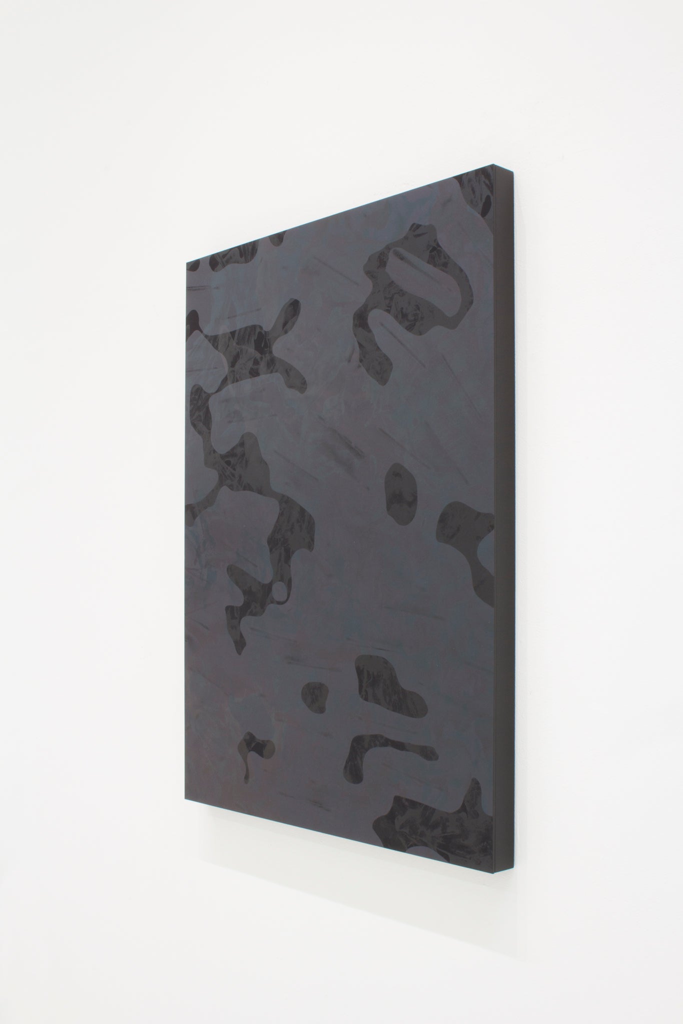 一見すると黒~グレーに見える画面の奥底から、光の反射によって抽象的な像と多様な色が立ち現れる印象的な作品となっています。