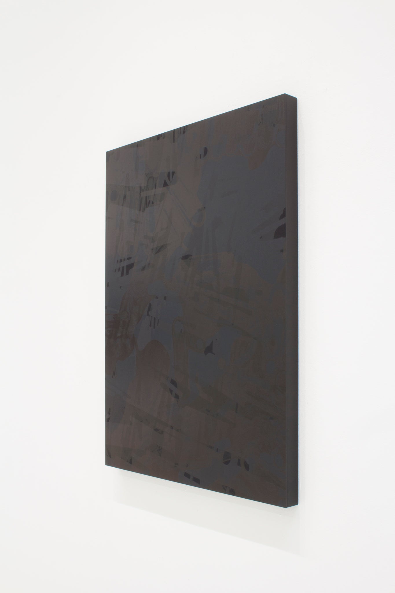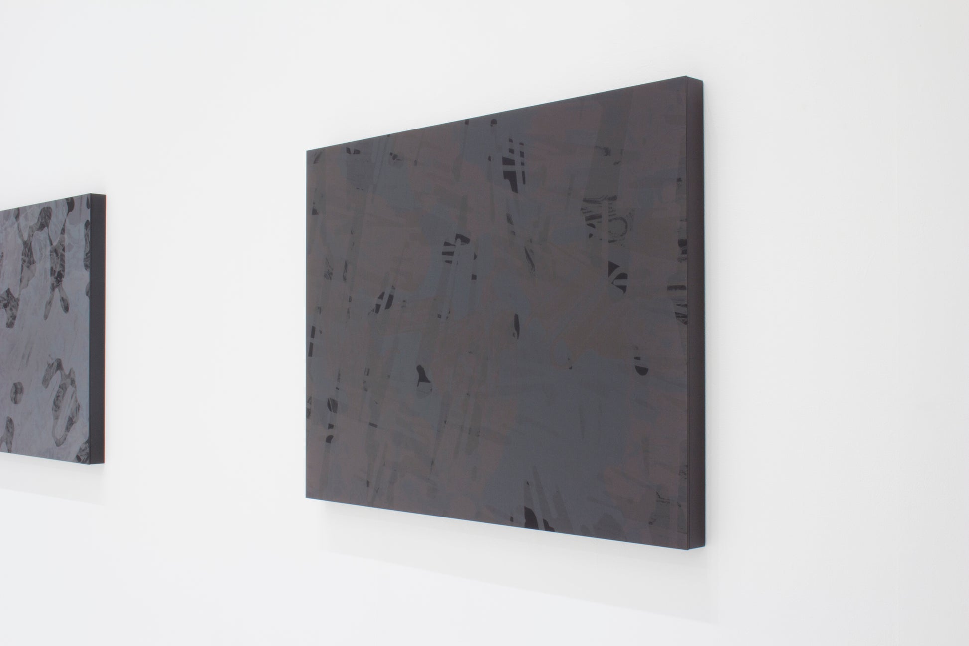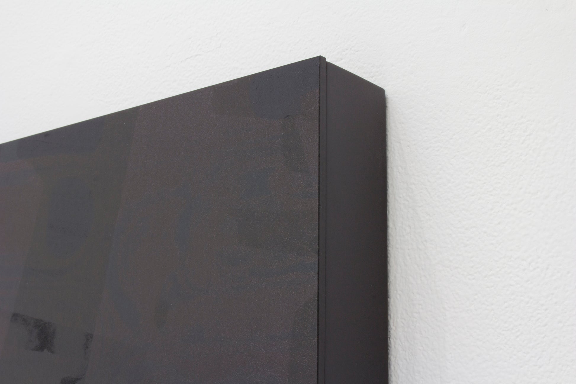 一見すると黒~グレーに見える画面の奥底から、光の反射によって抽象的な像と多様な色が立ち現れる印象的な作品となっています。