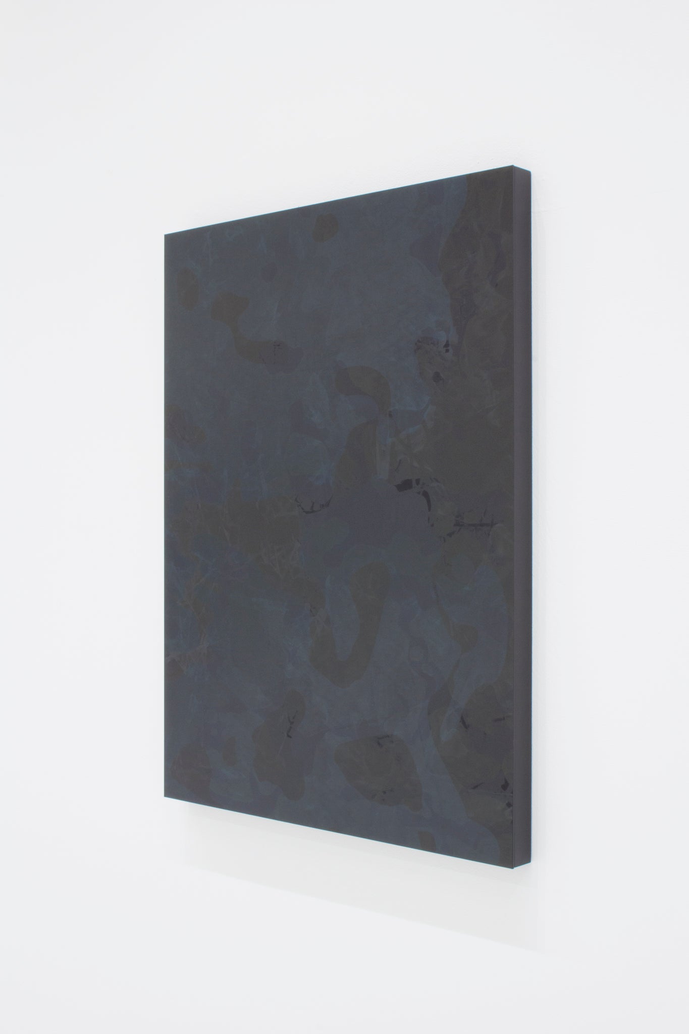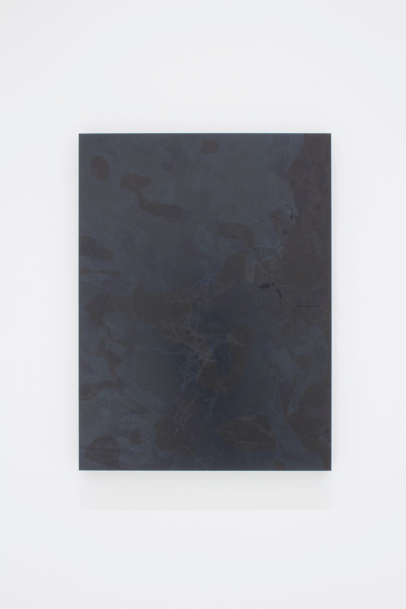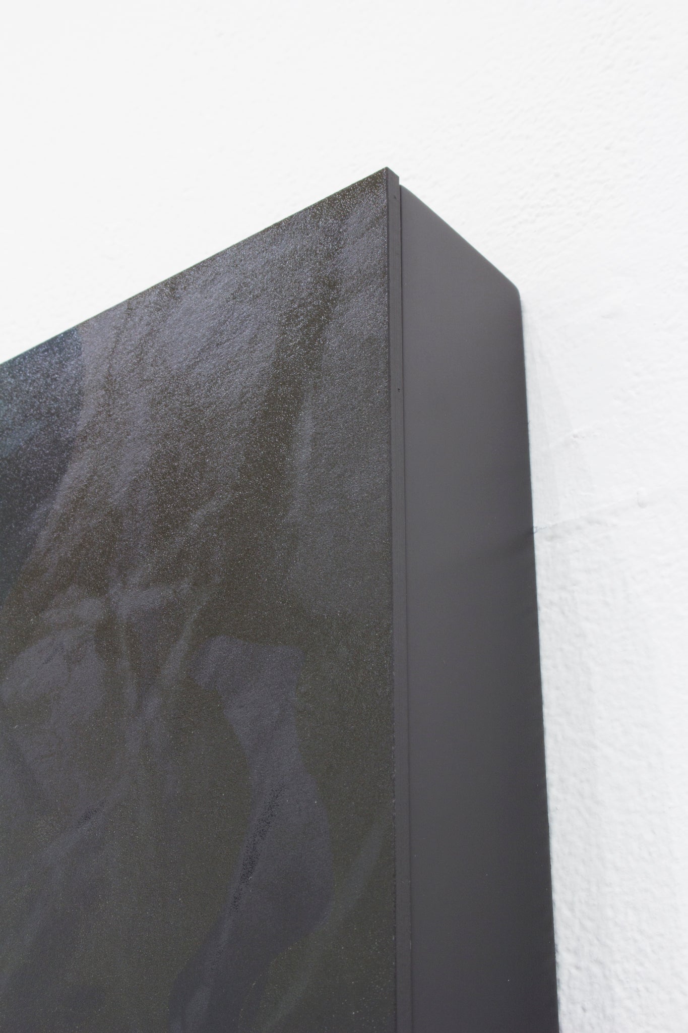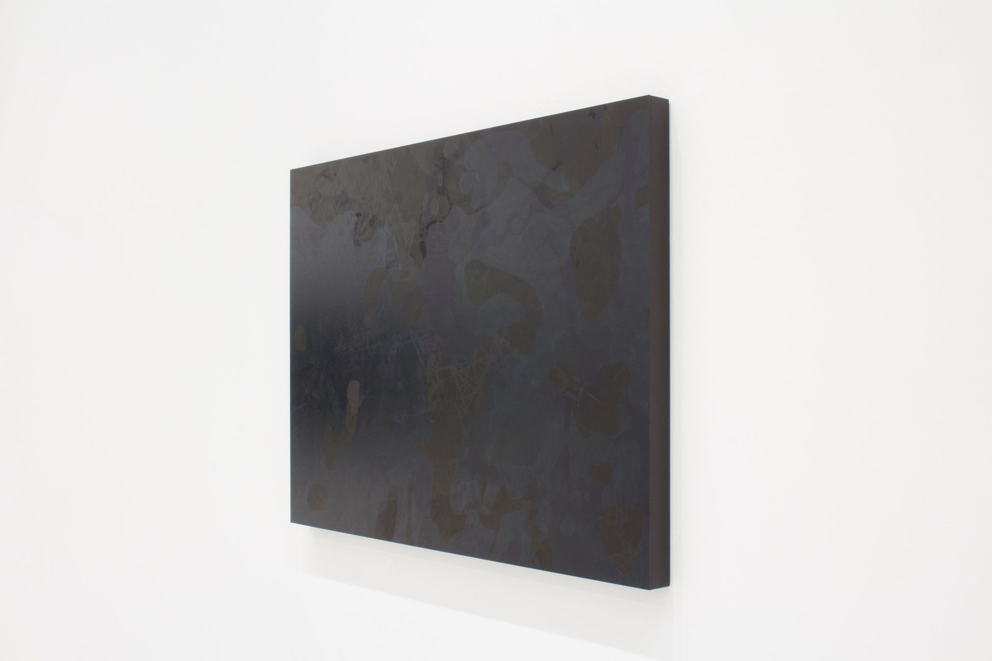 一見すると黒~グレーに見える画面の奥底から、光の反射によって抽象的な像と多様な色が立ち現れる印象的な作品となっています。