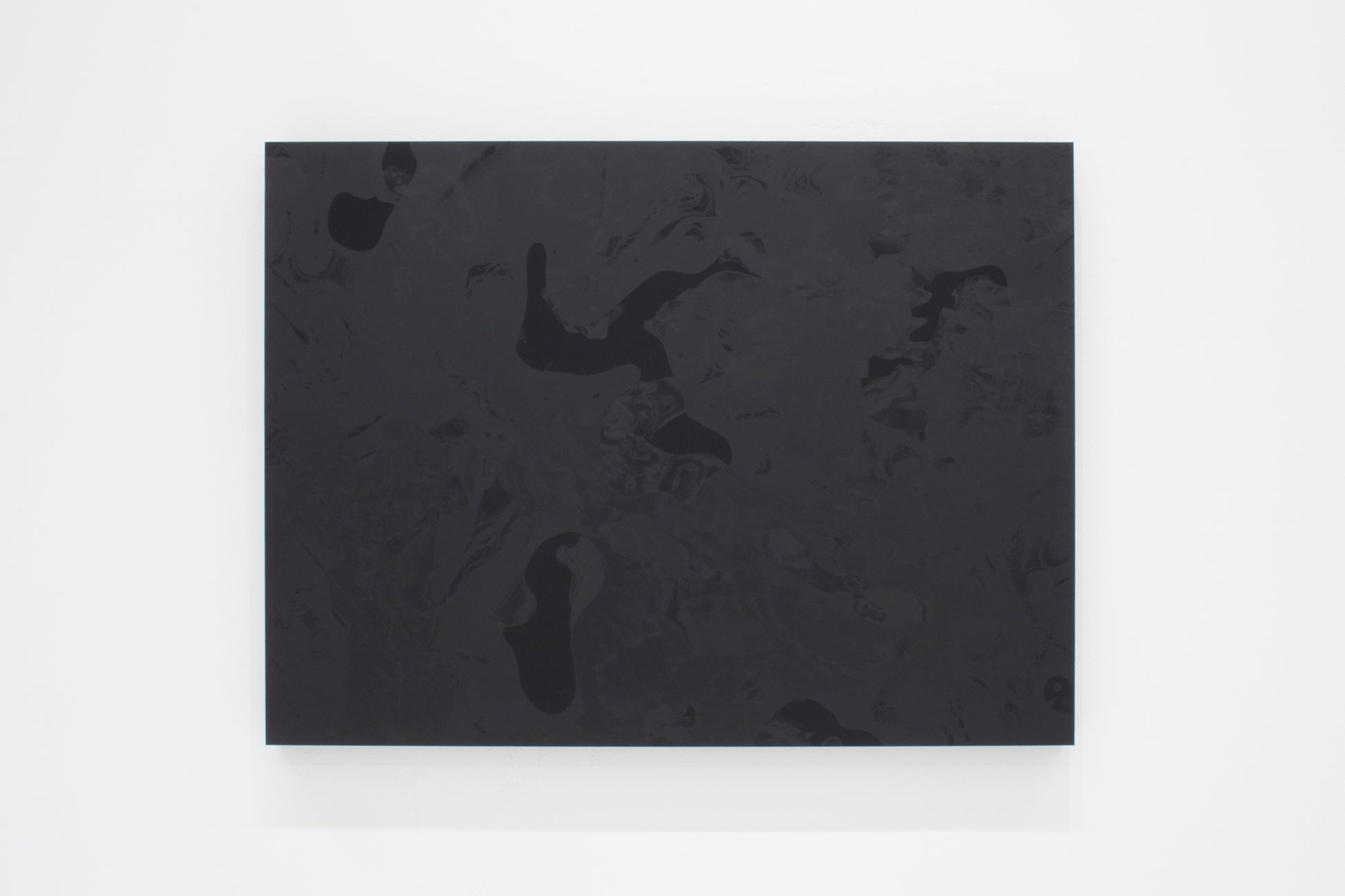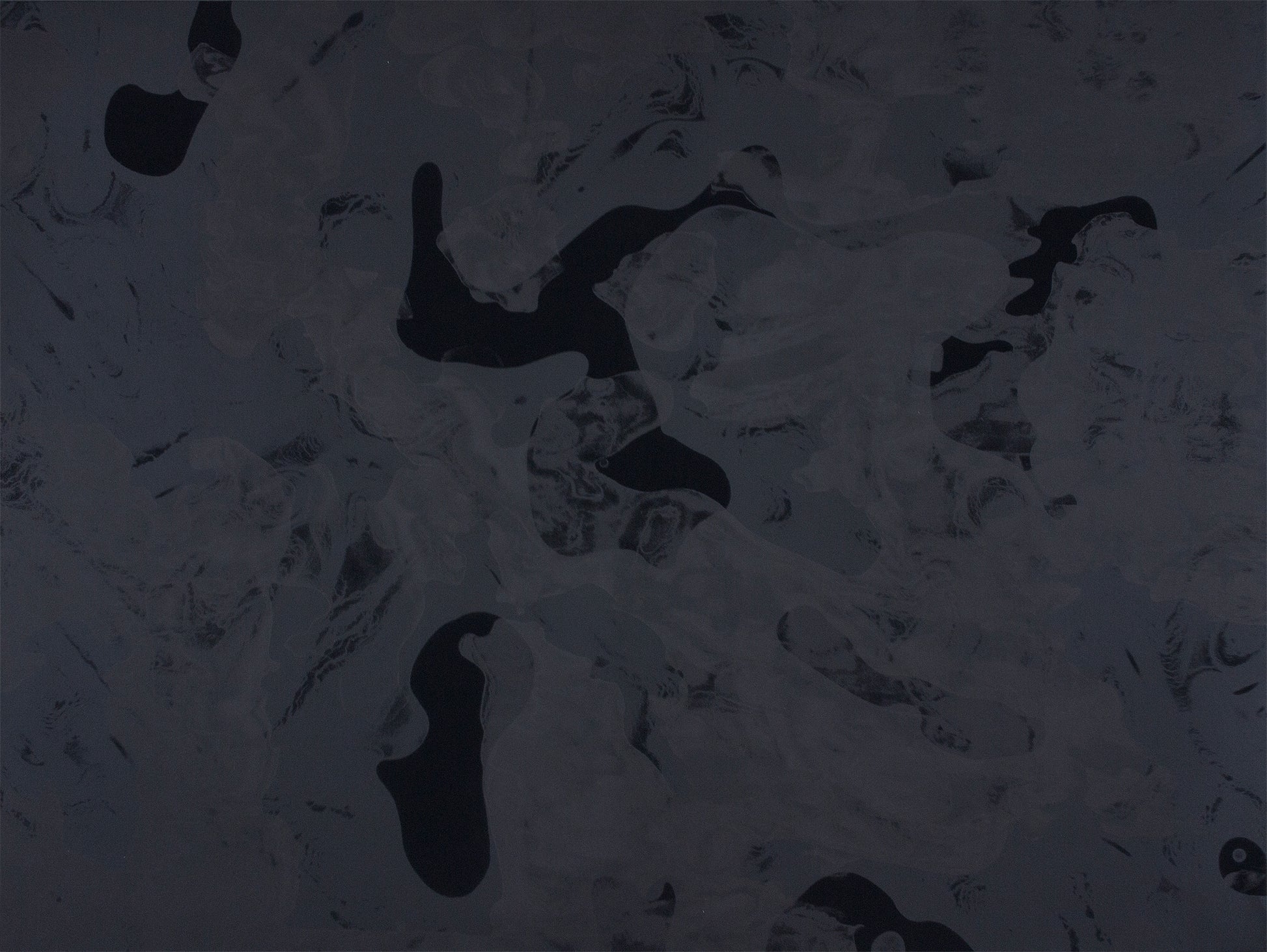 一見すると黒~グレーに見える画面の奥底から、光の反射によって抽象的な像と多様な色が立ち現れる印象的な作品となっています。