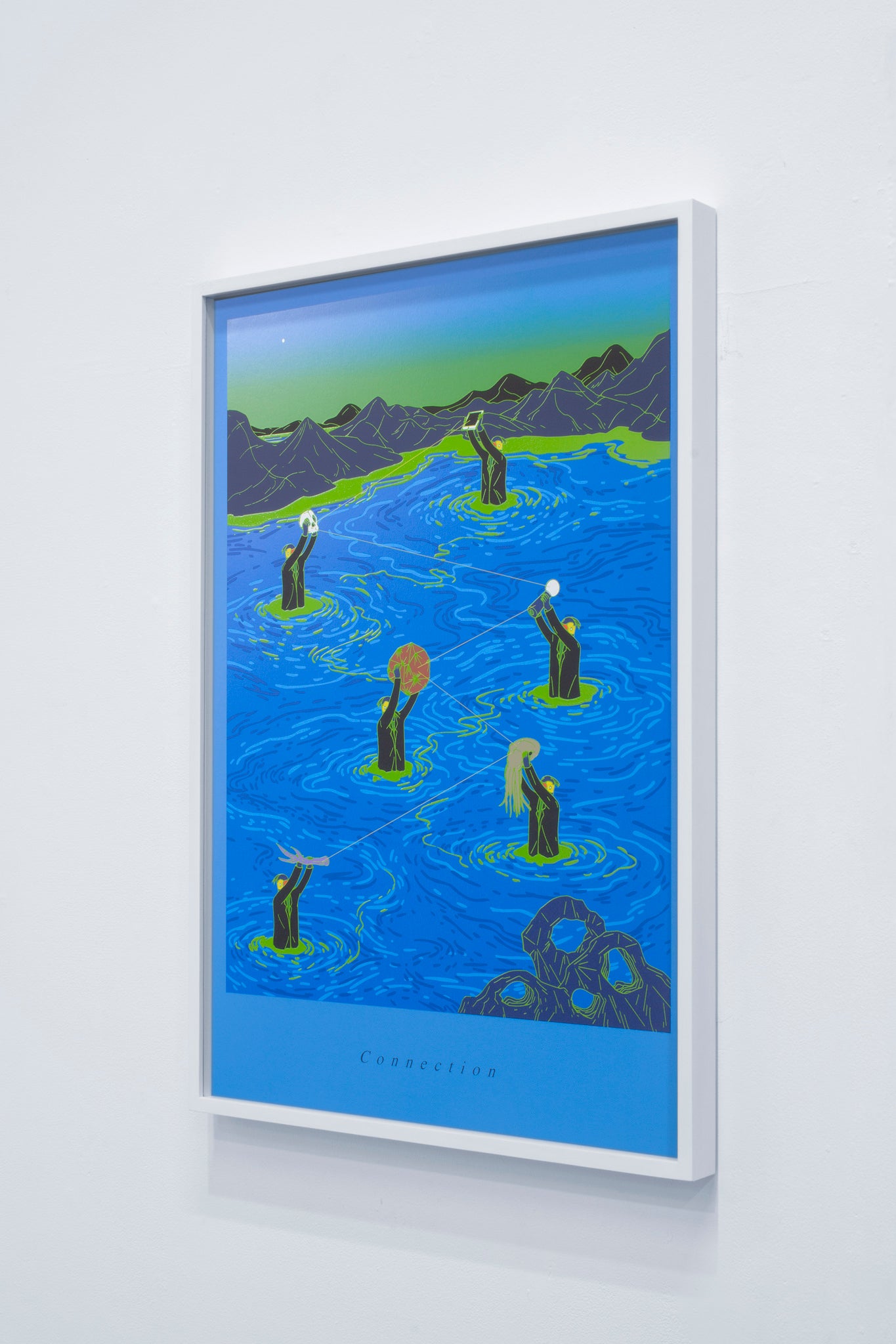silkscreen on paper, wooden frame
