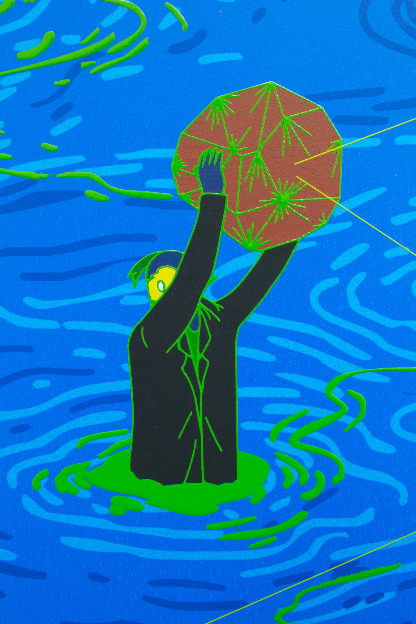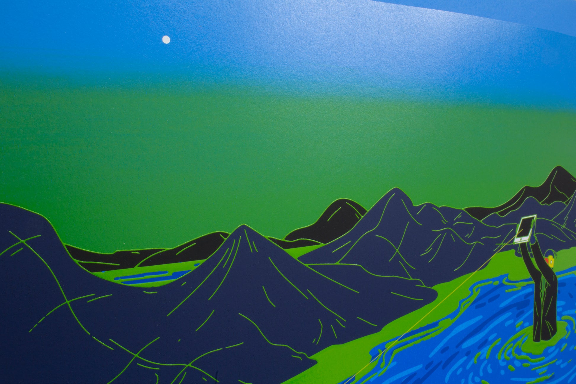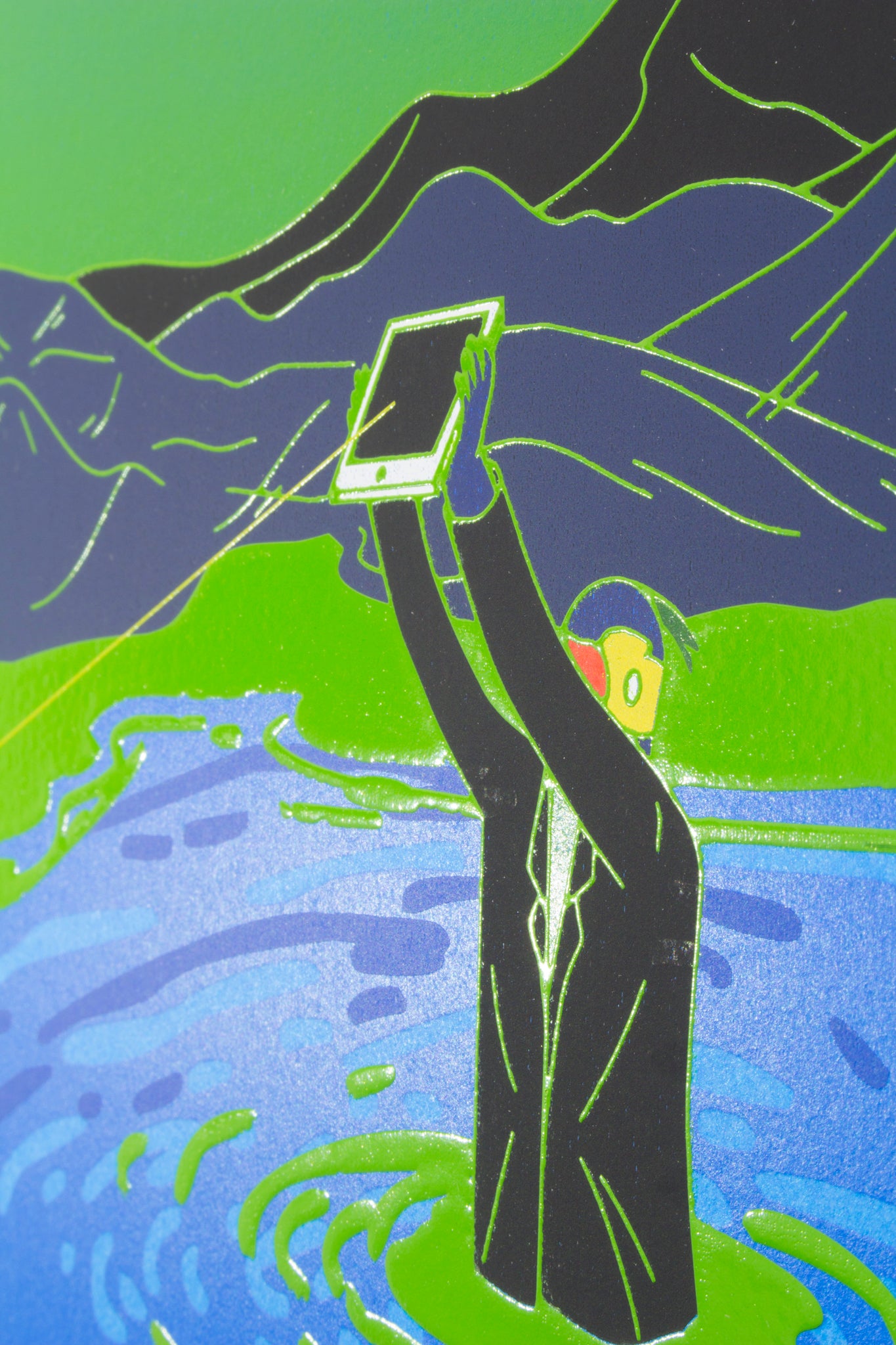 Chang作品の特徴であるヴィヴィッドな色彩を表現するため10版以上を刷り重ねて制作。さらにイメージのフチはインクを盛り上げてプリント。つややかなテクスチャでフラットな世界に視覚的効果を与えることで、イメージをさらに強いものにしています。