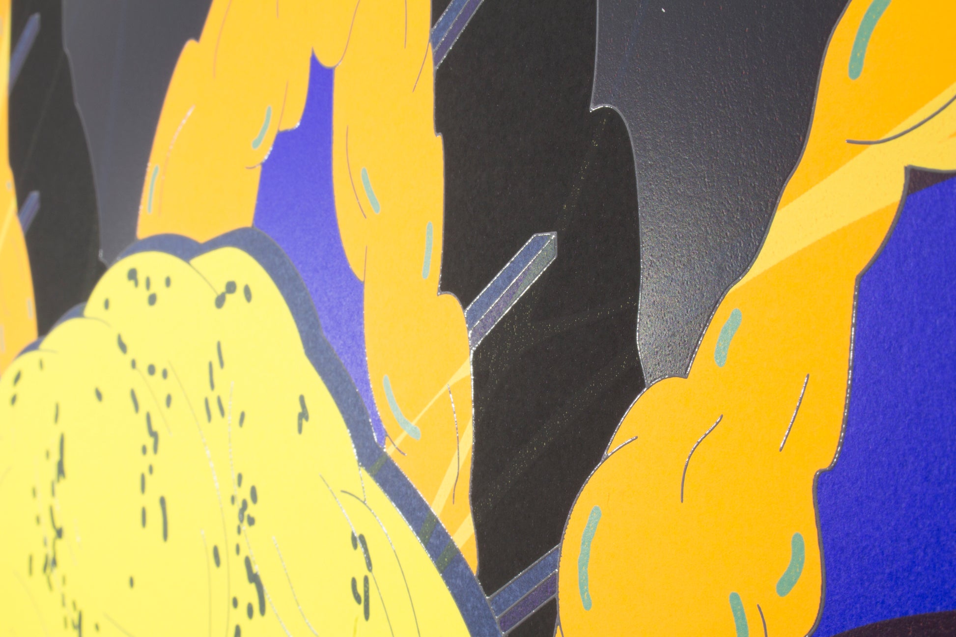 Chang作品の特徴であるヴィヴィッドな色彩を表現するため10版以上を刷り重ねて制作。さらにイメージのフチはインクを盛り上げてプリント。つややかなテクスチャでフラットな世界に視覚的効果を与えることで、イメージをさらに強いものにしています。