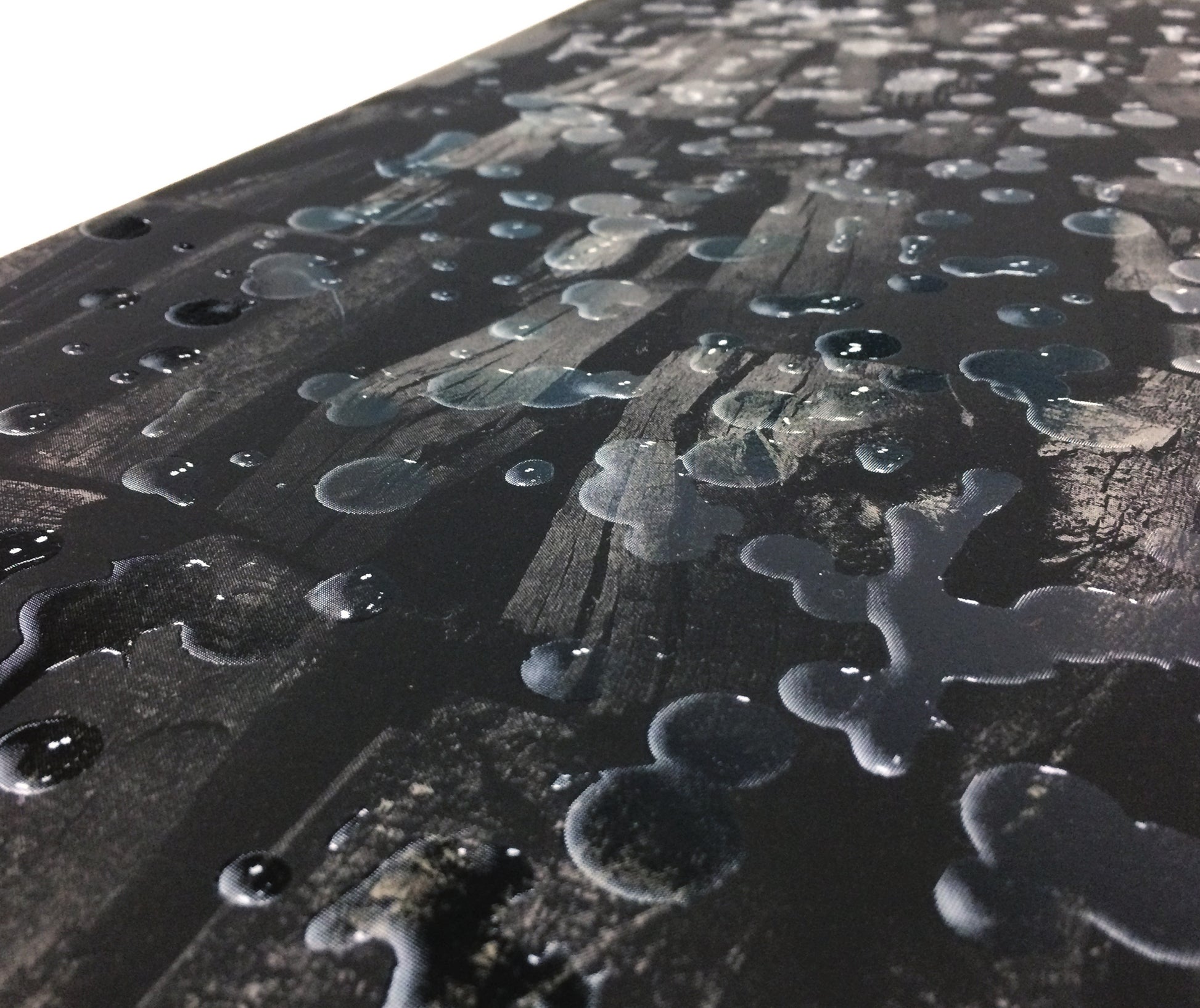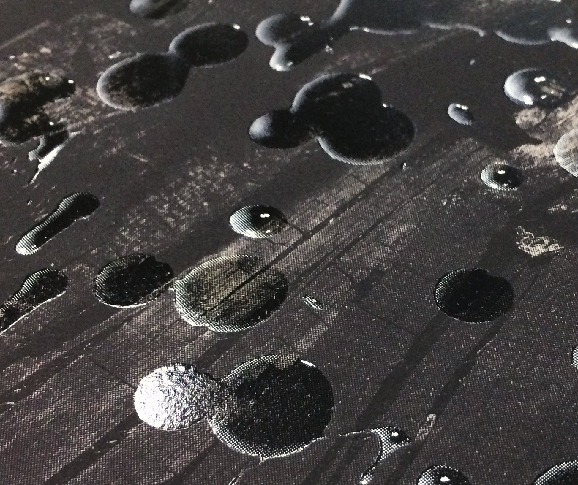 "Drops of Water on Charcoal"は、木村が2011年より取り組んでいる“Charcoal”シリーズを展開させた版画作品として、上記プロジェクト7回目"Period 7: Charcoal / Future"時に発表した作品です。